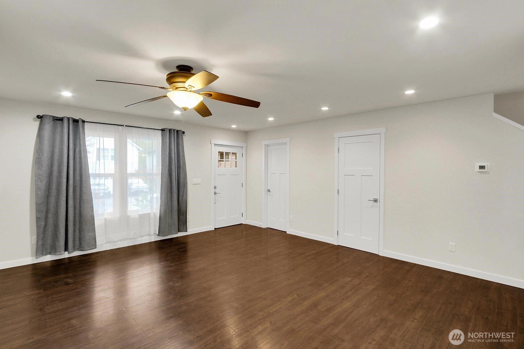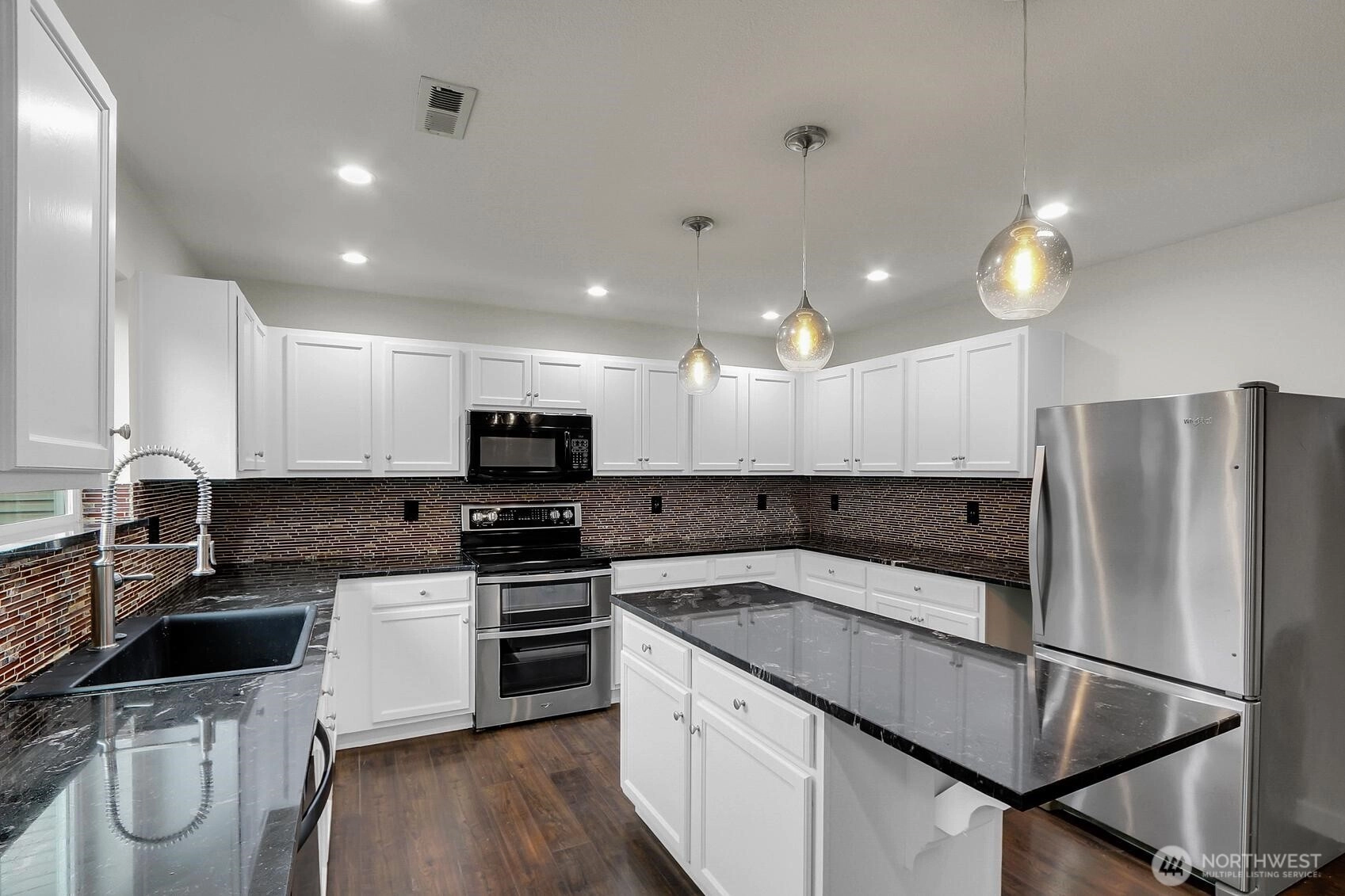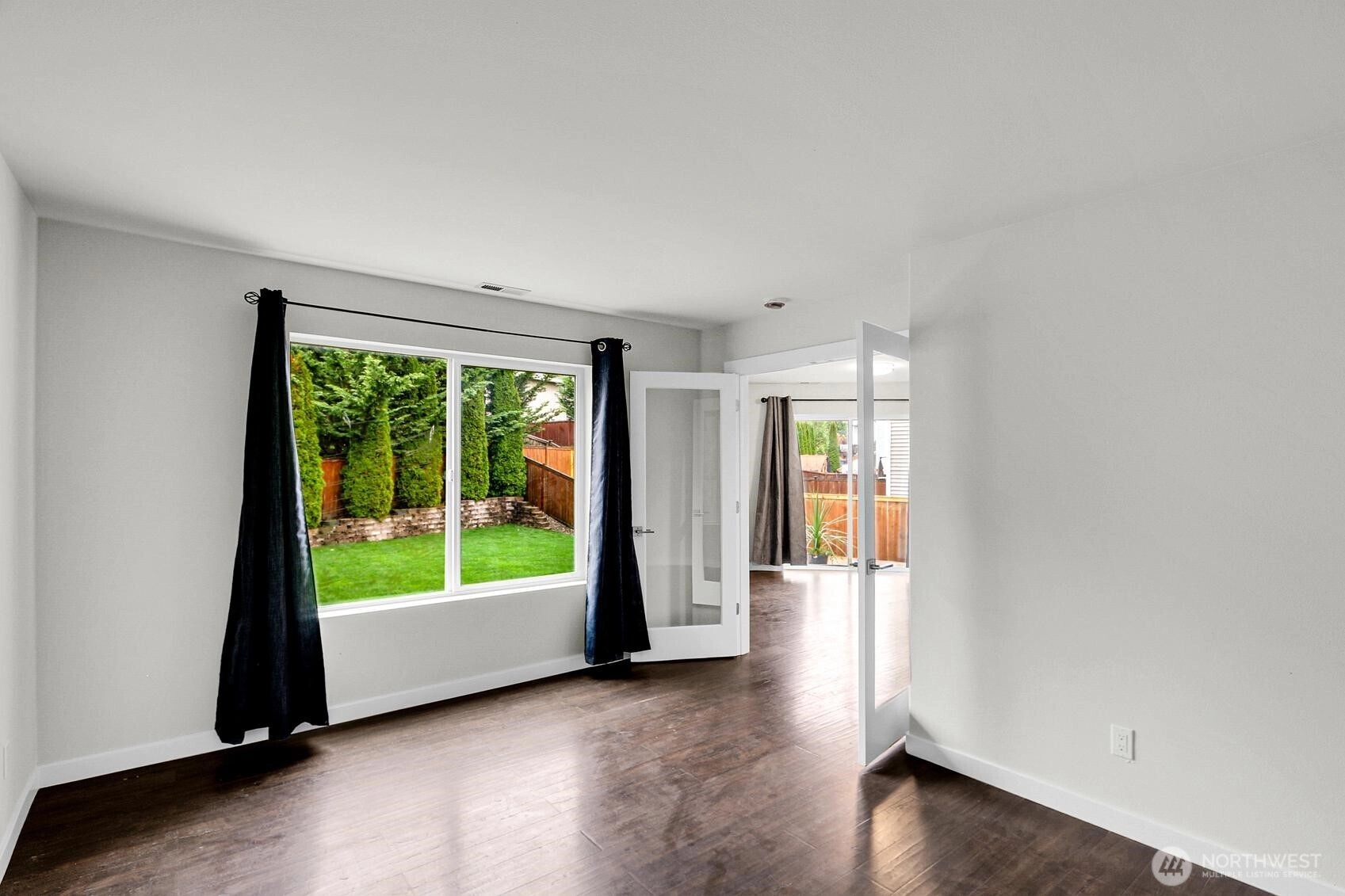 Move-In Ready with Modern Updates! Beautifully refreshed 4-bedroom home with a main-level bonus room offering the perfect space for an office, guest room, or play area. Fresh interior paint, new doors, trim, and carpet throughout give this home a crisp, modern feel. The spacious kitchen features abundant cabinetry, granite counters, stainless steel appliances, and an island. Plus gas heat with the potential to upgrade to a gas stove. Durable laminate flooring provides warmth and easy maintenance. Upstairs, the primary suite impresses with dual closets and a private bath. Enjoy a fully fenced backyard with a patio ideal for entertaining or relaxing. Conveniently located near parks, schools, shopping, and I-5 access.