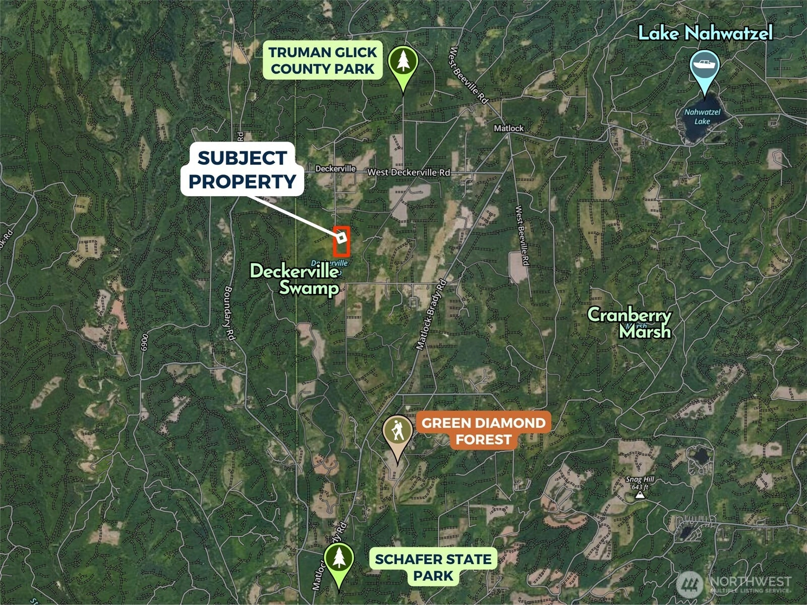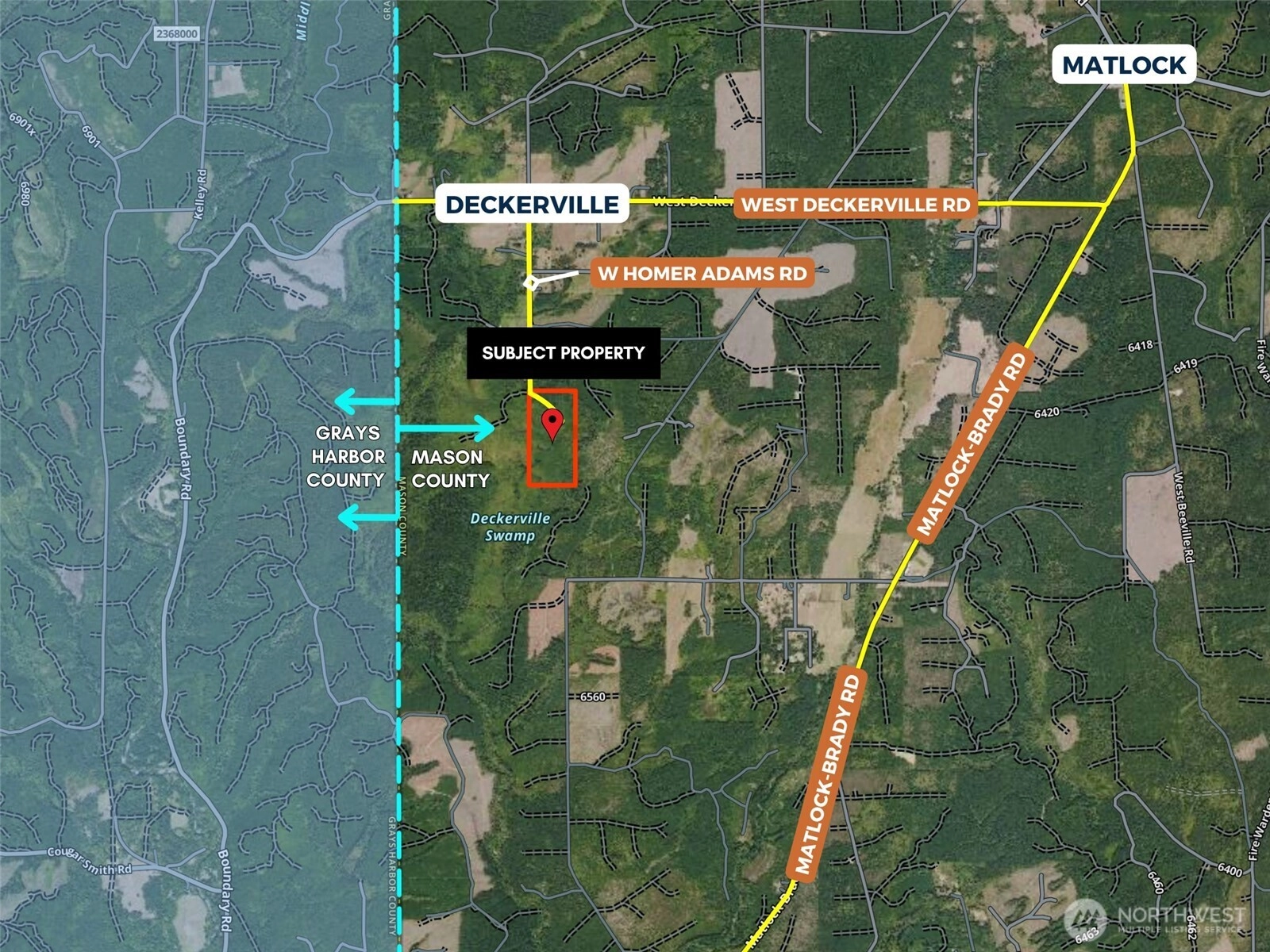 MAJOR PRICE REDUCTION. 80-acre forested parcel located at the end of a dead-end paved road. The northern portion offers usable, dry ground with some timber value and transitions southward into the Deckerville Swamp complex which consists primarily of hardwoods. The property is best suited for recreational use, hunting, camping, or potential off-grid or solar-based improvements due to the lack of a recorded utility easement. The land supports a diverse ecosystem that provides quality habitat and hunting opportunities for elk, deer, waterfowl, and small game. Local lore even tells of the occasional Bigfoot sighting. Property taxes are only $45/year! Situated approximately 30 minutes west of Shelton near the Mason and Grays Harbor County line, offering a strong mix of privacy, seclusion, and recreational opportunity.