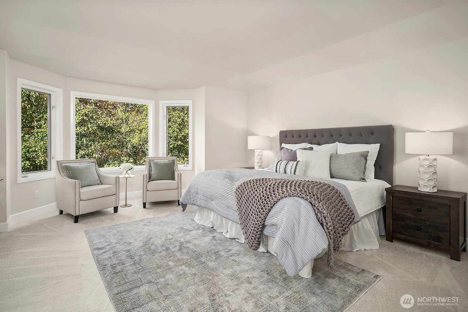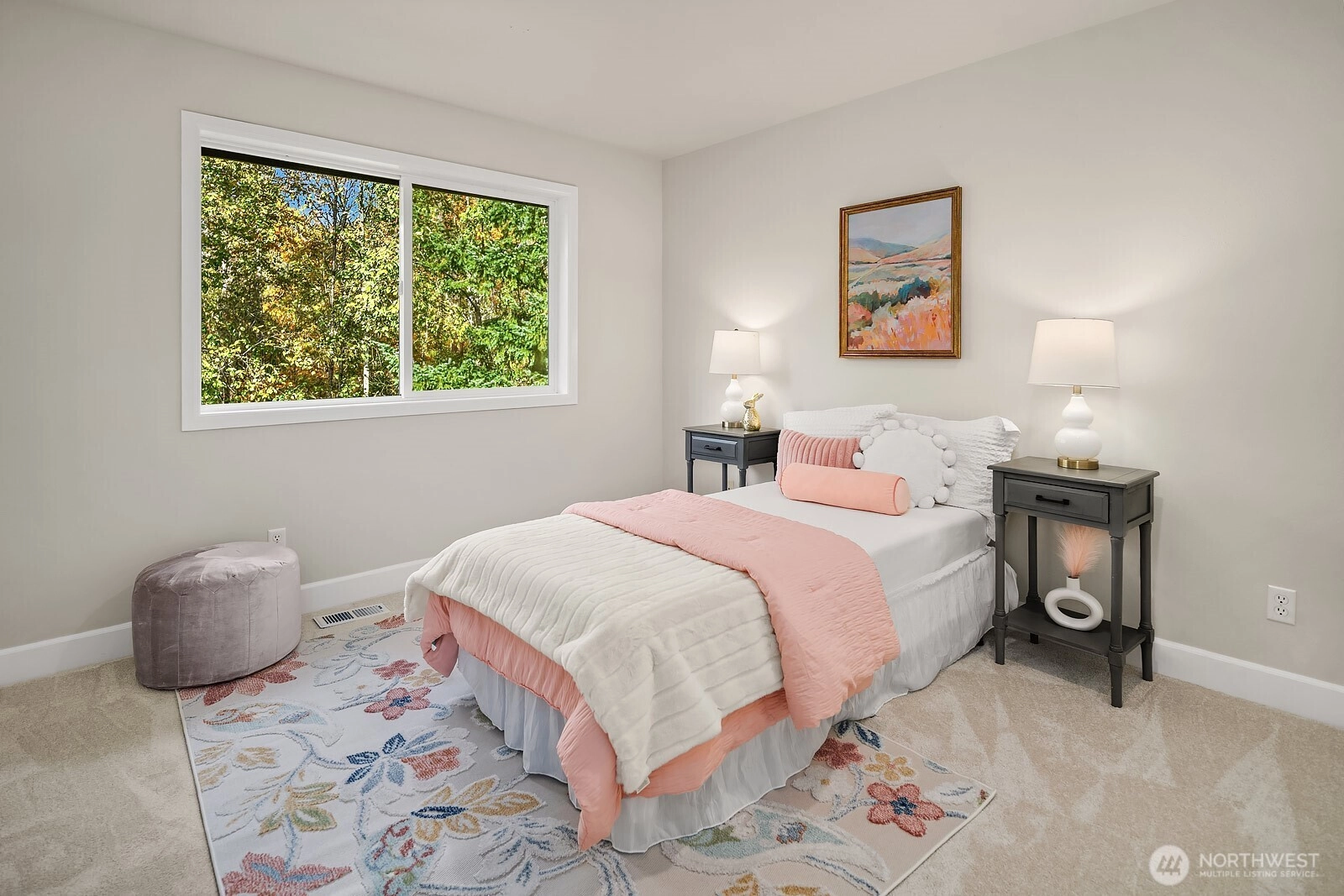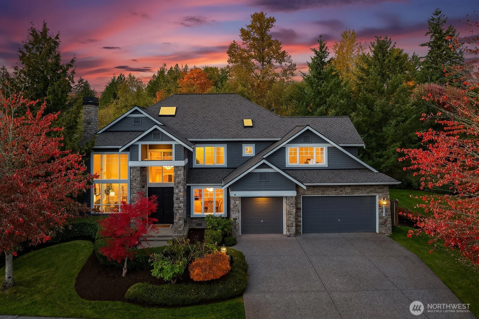 Stunning 4 bedroom retreat set in one of Sammamish’s most desirable neighborhoods. Gorgeous living room with soaring vaulted ceilings. spacious great room flows into the chef's kitchen, floorplan perfect for entertaining or quiet nights at home. Main-level bonus & full bath offer ideal flexibility. Luxurious primary suite with ensuite bath & walk-in closet. One of the secondary bedrooms also features an ensuite bath. Second upstairs bonus room provides the perfect space for play, media, or study. Freshly painted & brand new carpet. Set on a greenbelt & next to a neighborhood park, this home offers exceptional privacy and a sense of nature at your door. Enjoy the quiet, tree-lined streets, community parks & trails, and top-rated schools.