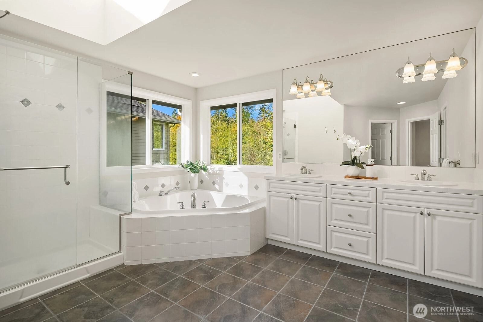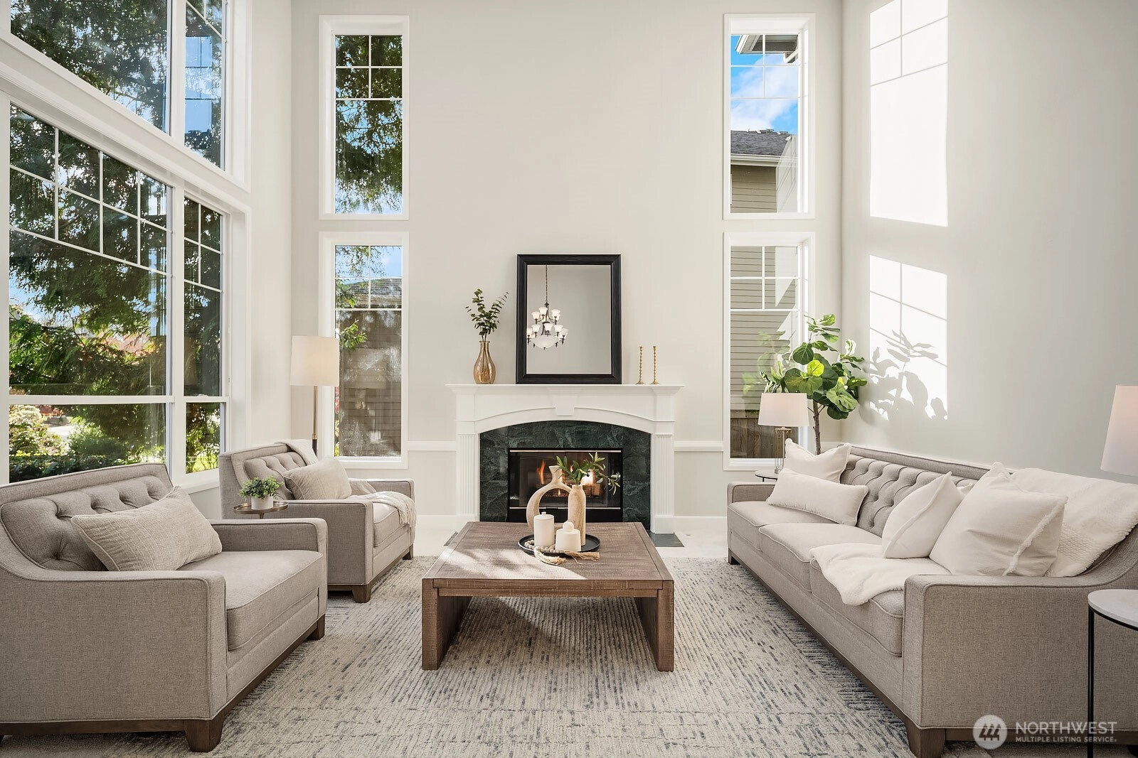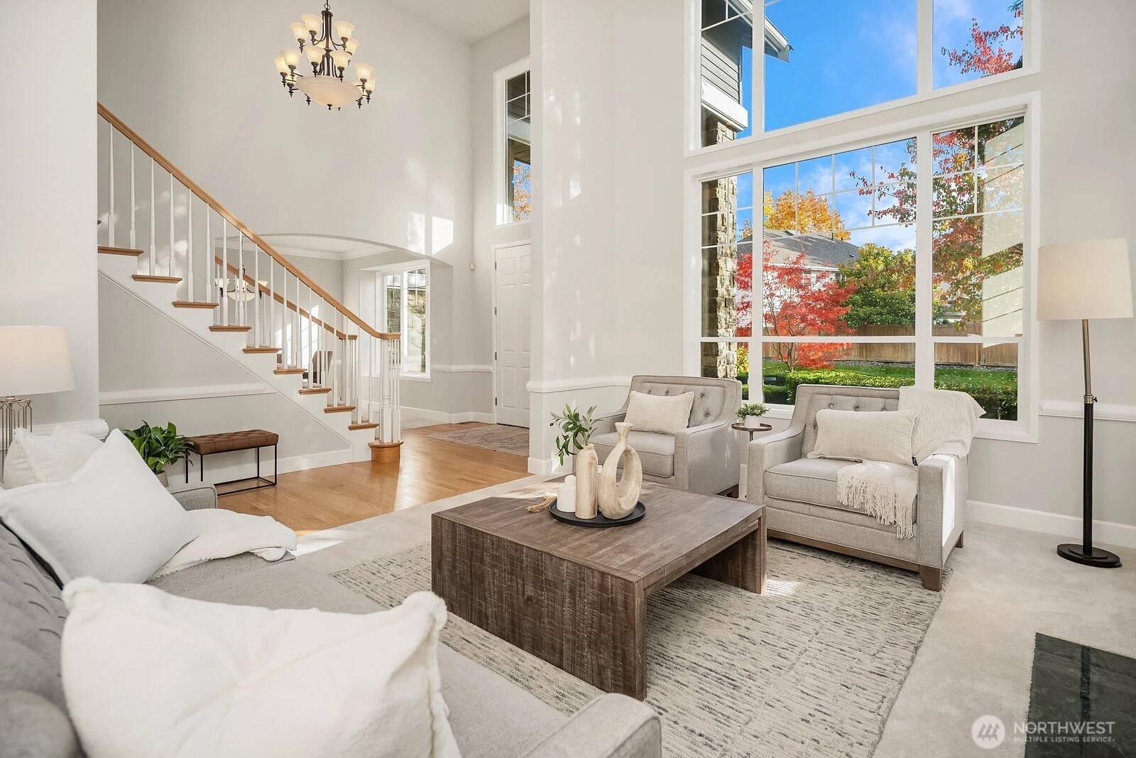 Stunning 4 bedroom retreat set in one of Sammamish’s most desirable neighborhoods. Gorgeous living room with soaring vaulted ceilings. spacious great room flows into the chef's kitchen, floorplan perfect for entertaining or quiet nights at home. Main-level bonus & full bath offer ideal flexibility. Luxurious primary suite with ensuite bath & walk-in closet. One of the secondary bedrooms also features an ensuite bath. Second upstairs bonus room provides the perfect space for play, media, or study. Freshly painted & brand new carpet. Set on a greenbelt & next to a neighborhood park, this home offers exceptional privacy and a sense of nature at your door. Enjoy the quiet, tree-lined streets, community parks & trails, and top-rated schools.