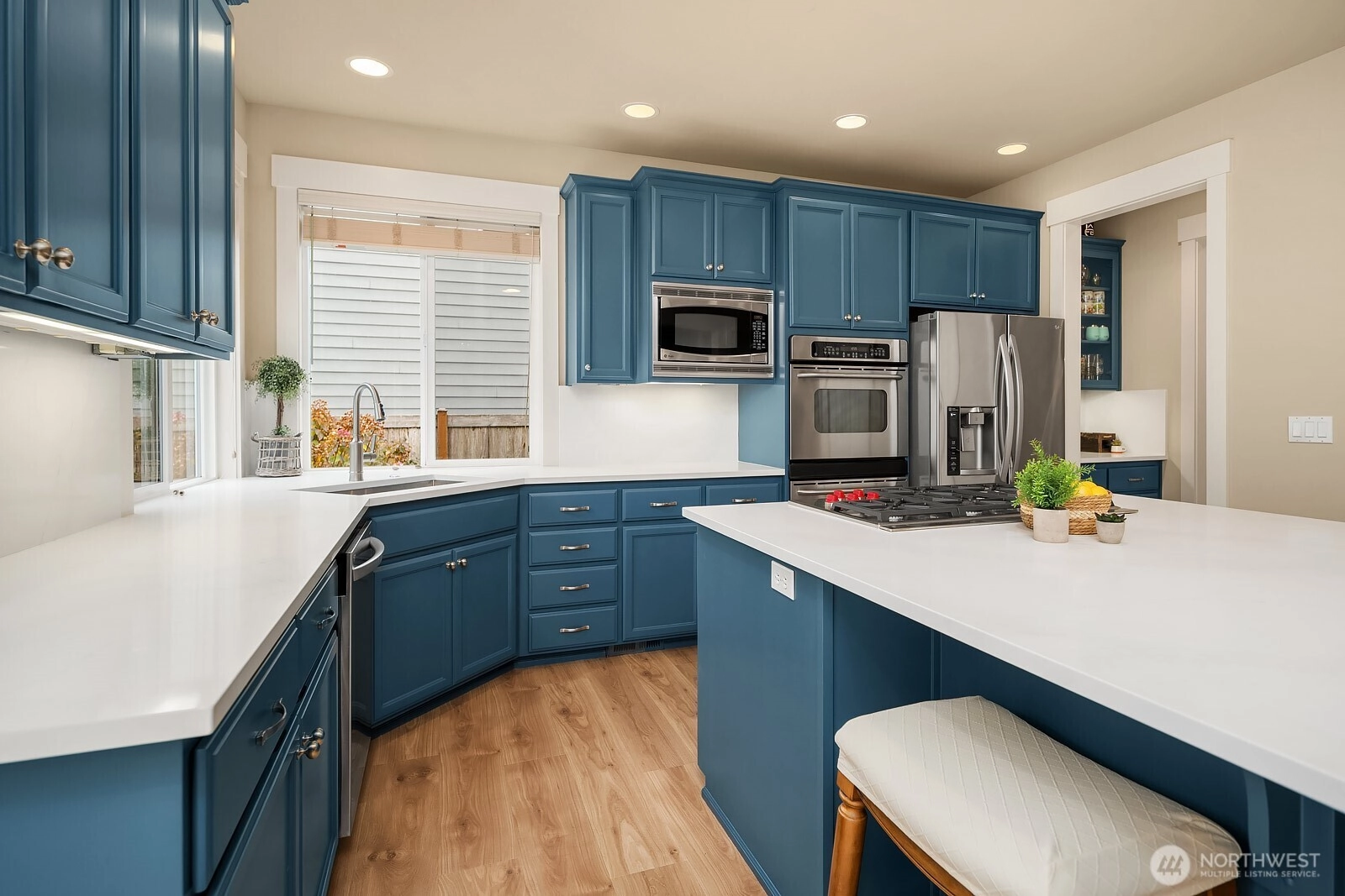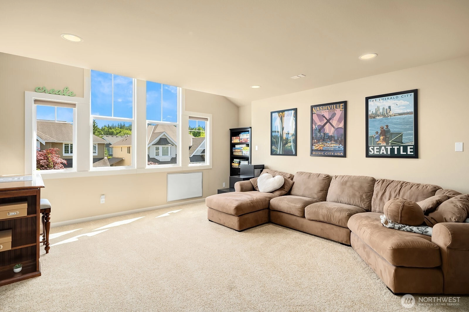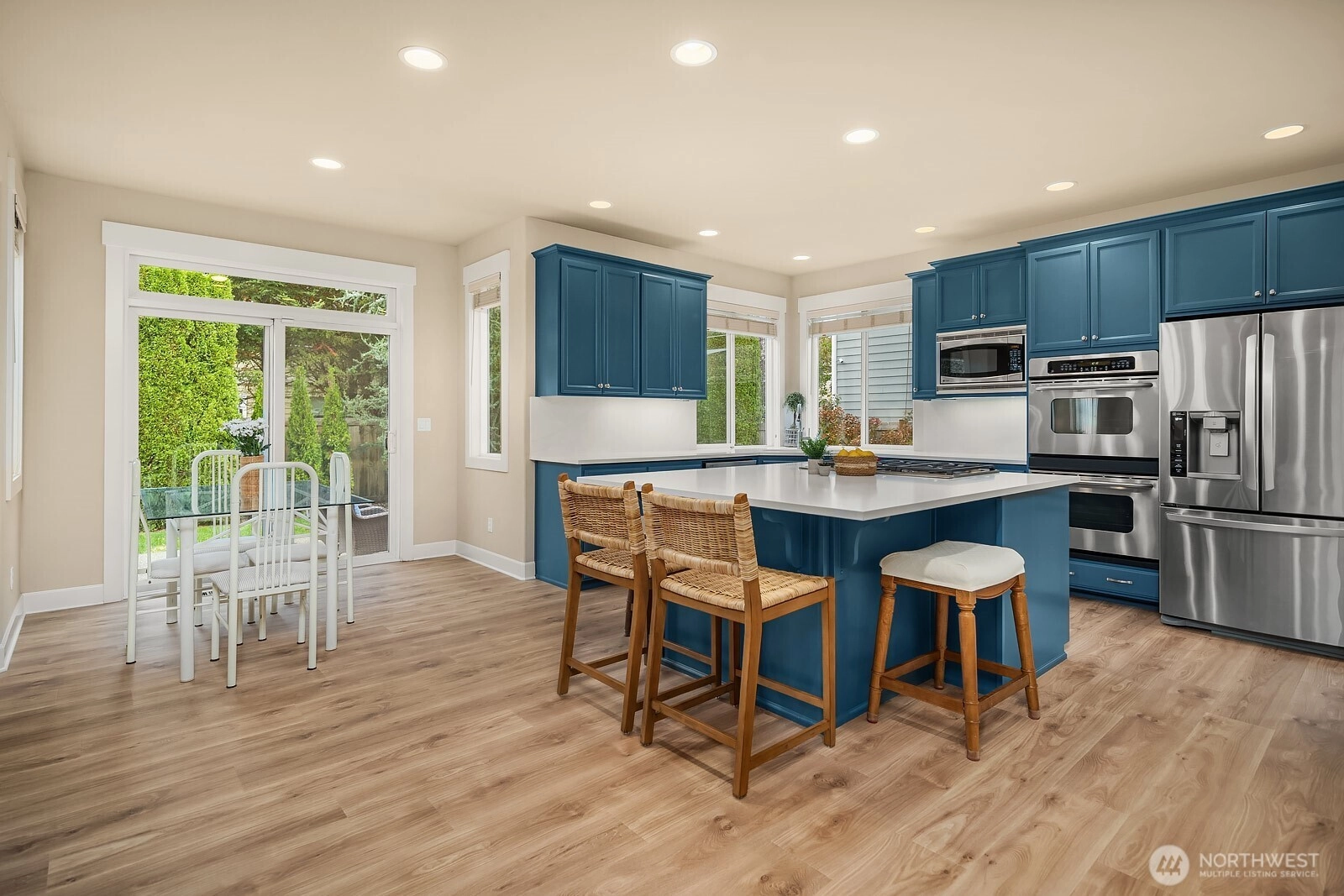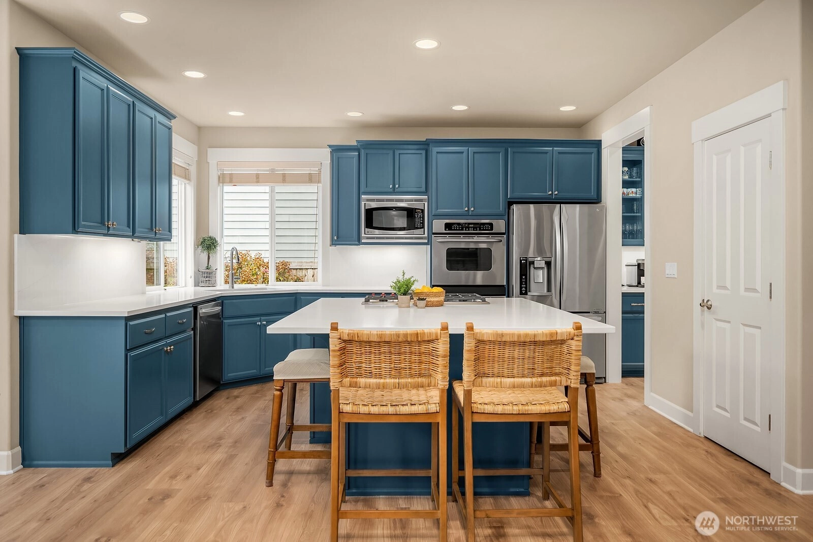 Turn-key Burnstead resale in Montaine at Aldarra! Nestled on a quiet cul-de-sac, this 3,601 sq ft home offers 4 bedrooms plus a main floor den (optional 5th) and 3.25 baths. A vaulted entry opens to a bright great room with stone-surround fireplace and custom built-ins. The chef’s kitchen boasts a large island, new quartz countertops, walk-in pantry, and under-cabinet lighting. Enjoy new flooring on the main level and a newer roof. Upstairs features a spacious primary suite with 5-piece bath and WIC, three additional bedrooms including one ensuite, full hall bath, utility room, and over-sized bonus room. Fully fenced backyard, patio for entertaining, 3-car garage, and top-rated Snoqualmie Valley Schools with easy access to I-90 and 520.