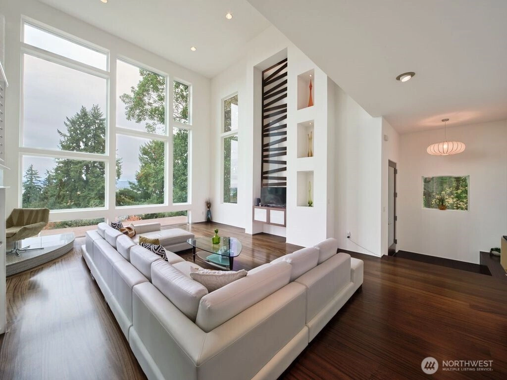 Perched high in the Vancouver Heights, this timeless modern home captures the best of NW living. From the moment you walk in, the views take your breath away—stretching across the Columbia River to the sparkling lights of Portland. The open kitchen and living spaces flow effortlessly, filled with natural light that pours through walls of windows and dramatic ceilings. Every detail has been thoughtfully designed, from the elegant staircase with its sleek built-in bar to the mid-century modern touches that give this home its character. The owner’s suite feels like a retreat, offering both luxury and tranquility. Sold fully furnished and beautifully decorated, this home is turnkey and move-in ready. Immaculate, stylish, and unforgettable.