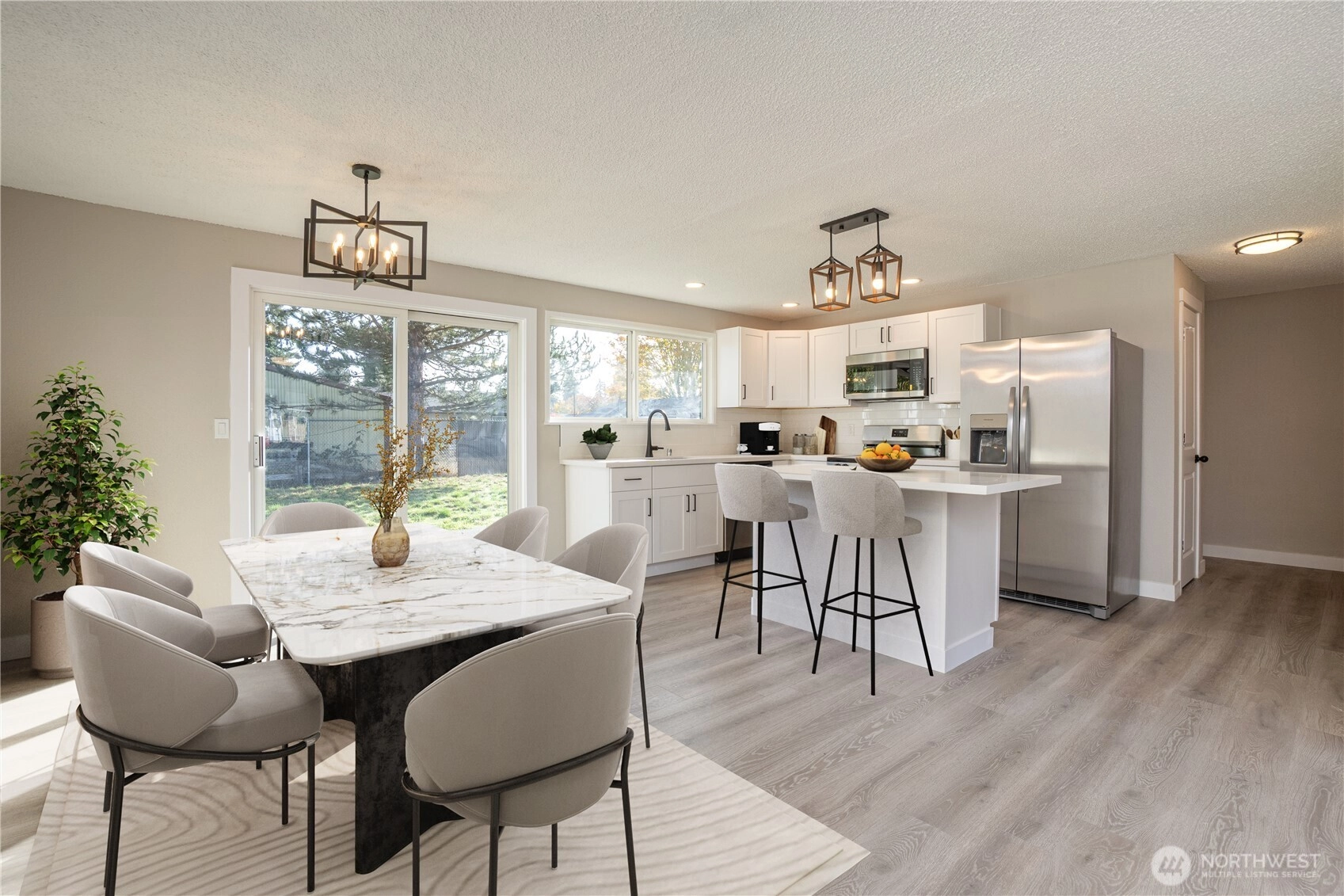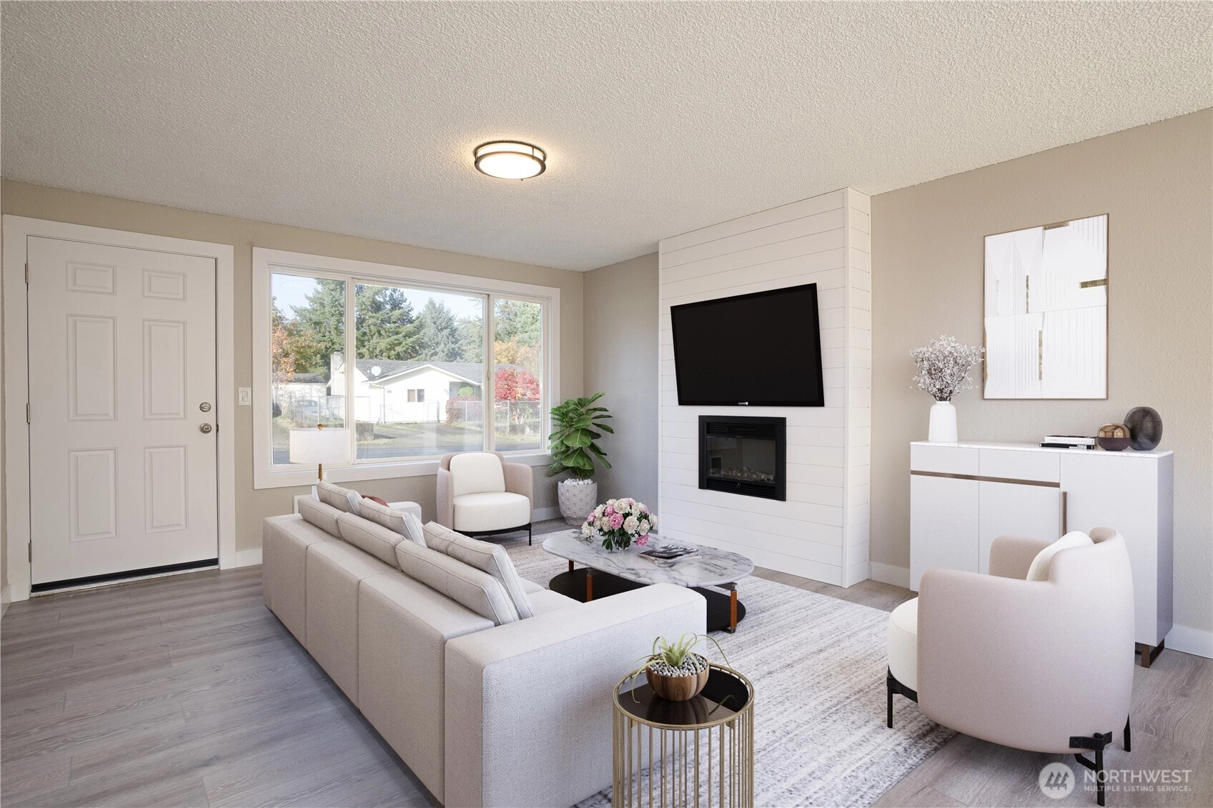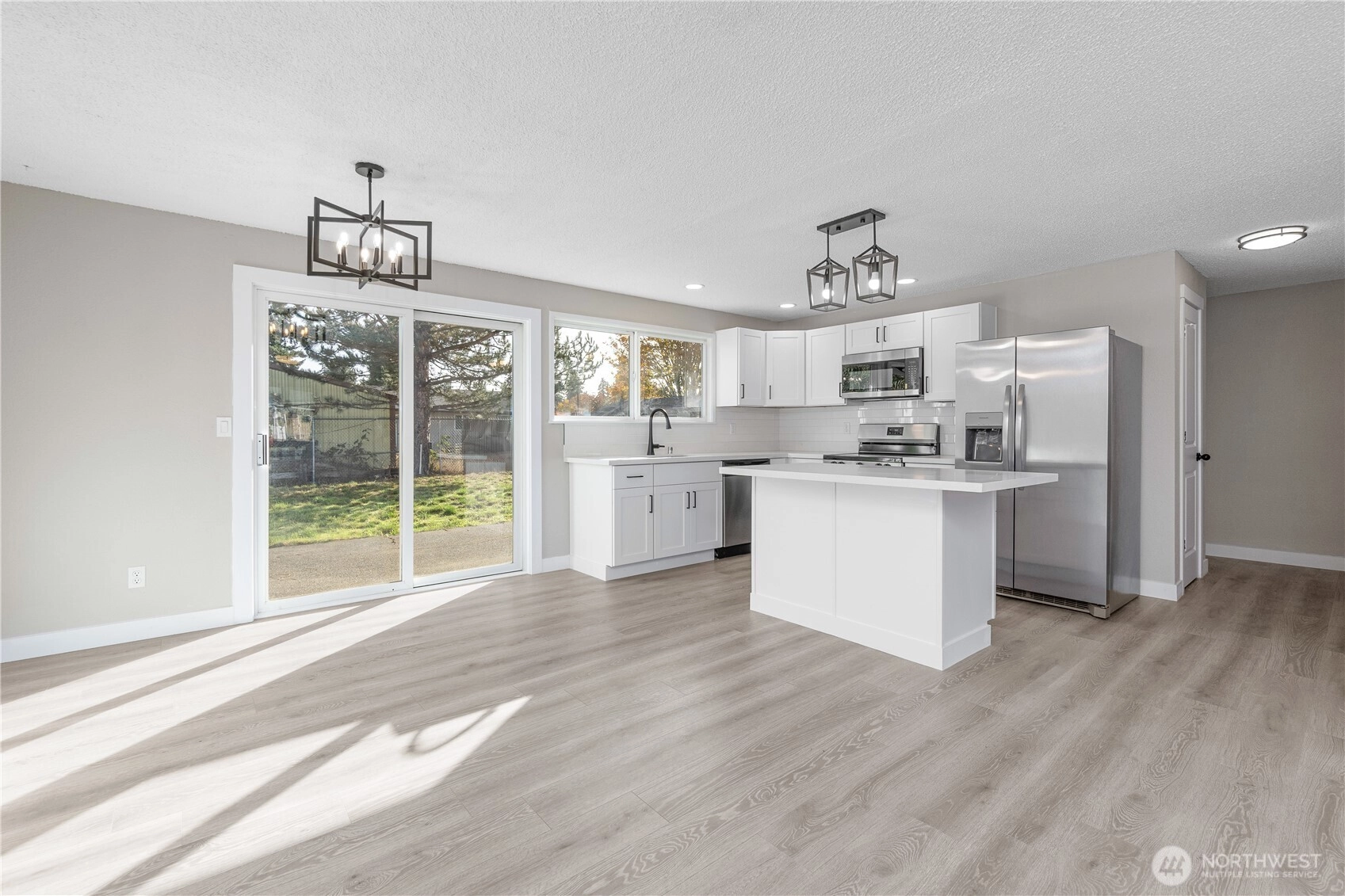 Don't miss this freshly updated rambler. Walk into an open living space with new waterproof laminate floors, fresh paint, and a relaxing fireplace. The updated features continue in the kitchen with new cabinets, quartz countertops, and stainless steel appliances. Both bathrooms have been completely renovated. The updates don't stop at aesthetics; new water heater, new electrical panel & meter, new gutters, and septic installed last year. Enjoy a fully fenced yard, with a patio perfect for hosting and a shed for storage. Exterior paint is (you guessed it) new, and the roof is roughly 6 years old. Close to shopping, dining, and JBLM.