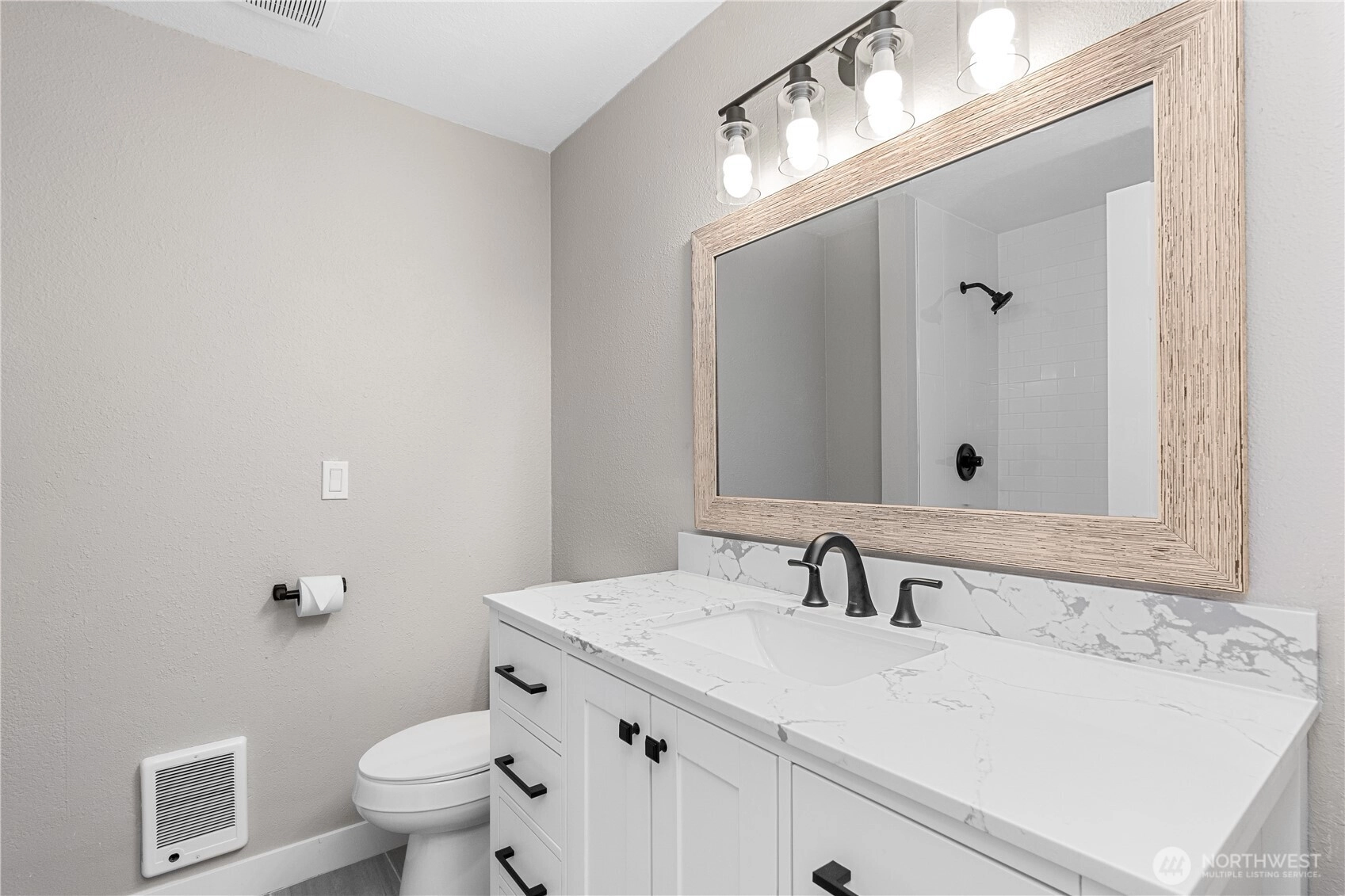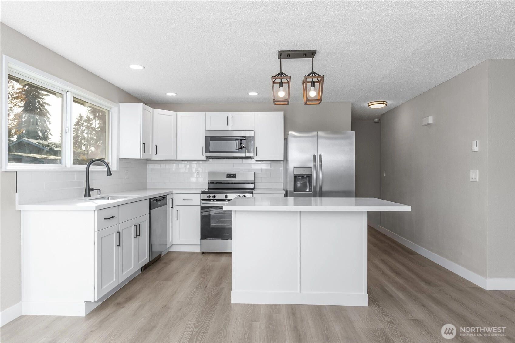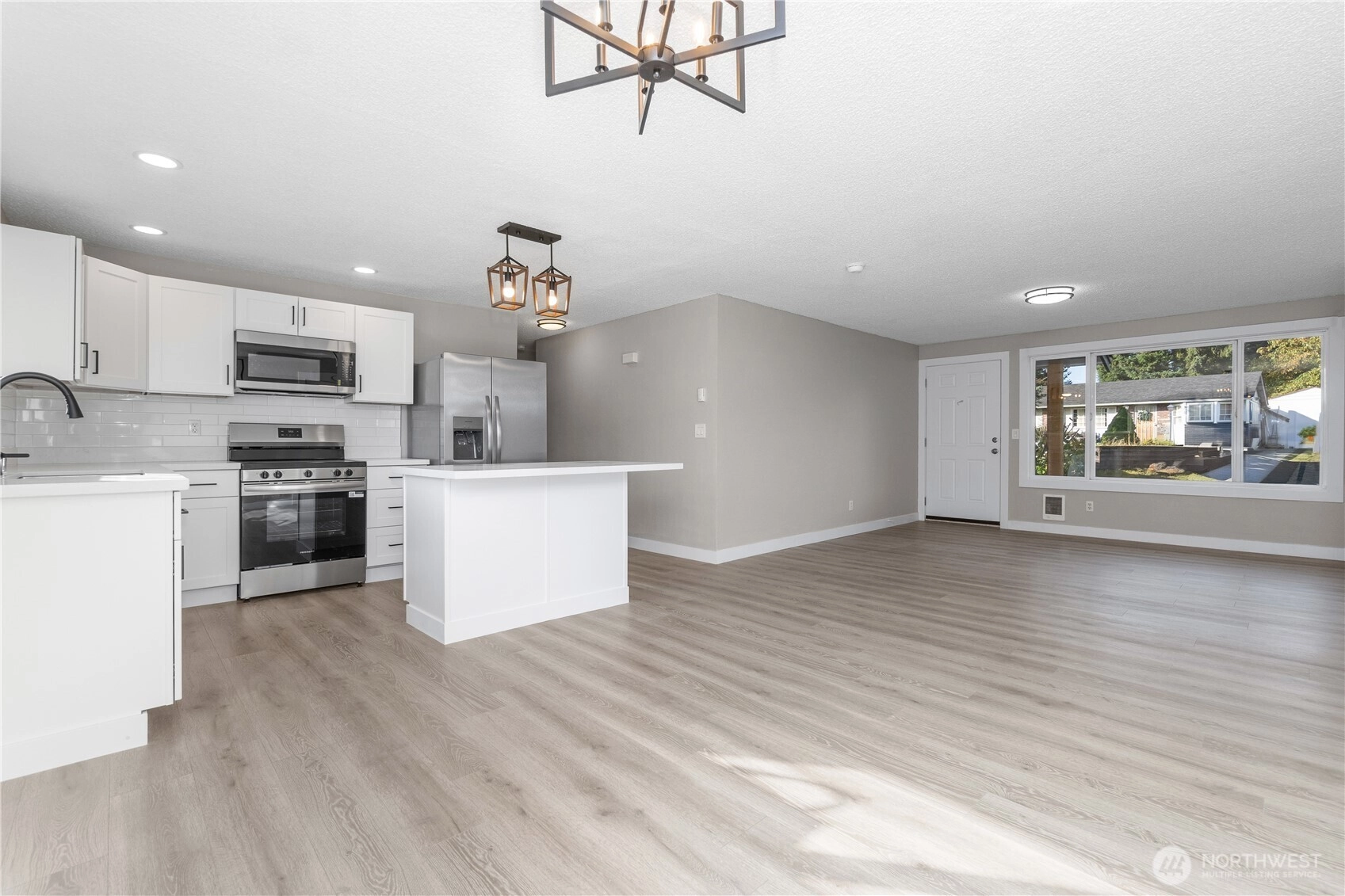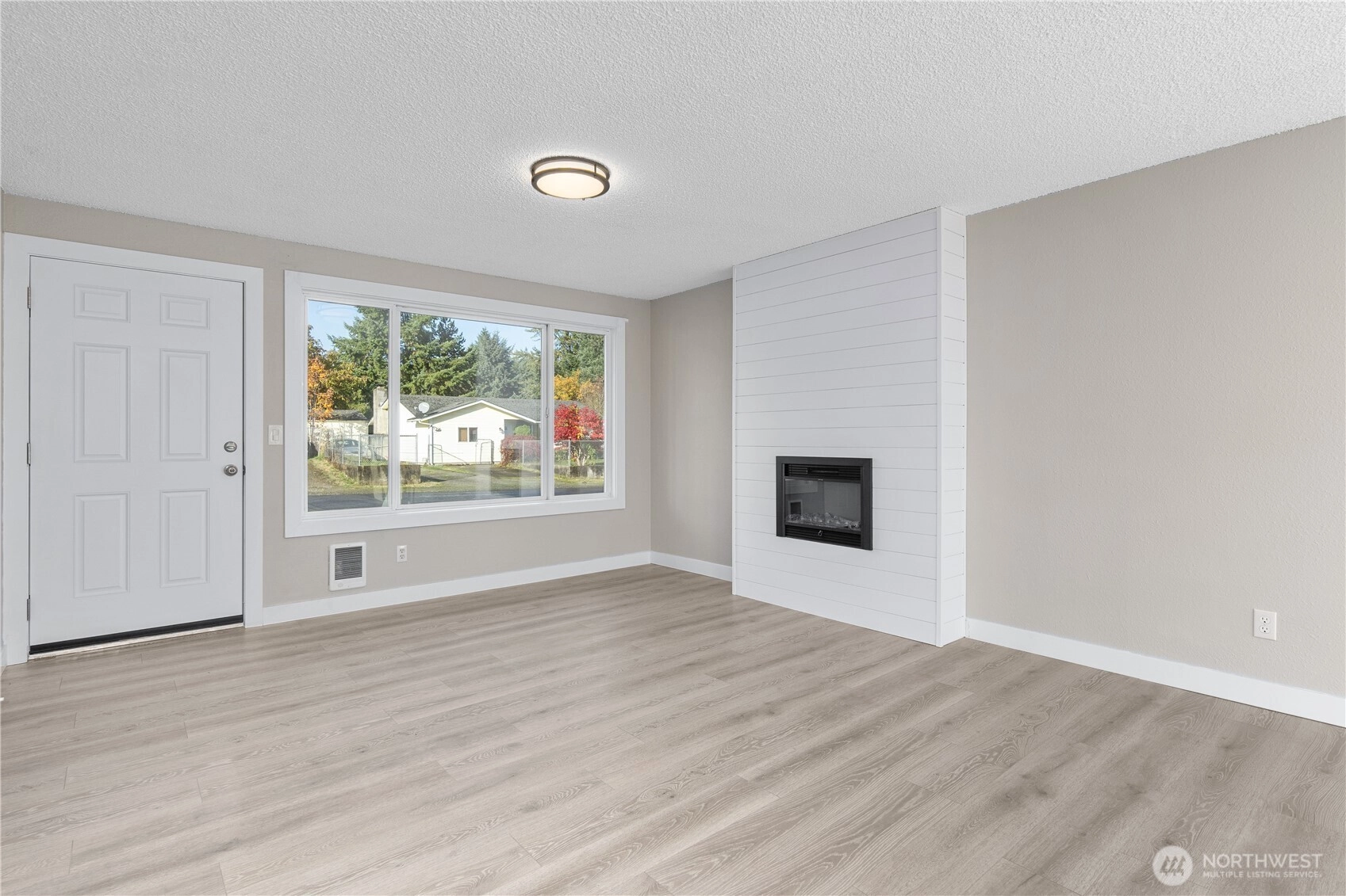 Don't miss this freshly updated rambler. Walk into an open living space with new waterproof laminate floors, fresh paint, and a relaxing fireplace. The updated features continue in the kitchen with new cabinets, quartz countertops, and stainless steel appliances. Both bathrooms have been completely renovated. The updates don't stop at aesthetics; new water heater, new electrical panel & meter, new gutters, and septic installed last year. Enjoy a fully fenced yard, with a patio perfect for hosting and a shed for storage. Exterior paint is (you guessed it) new, and the roof is roughly 6 years old. Close to shopping, dining, and JBLM.