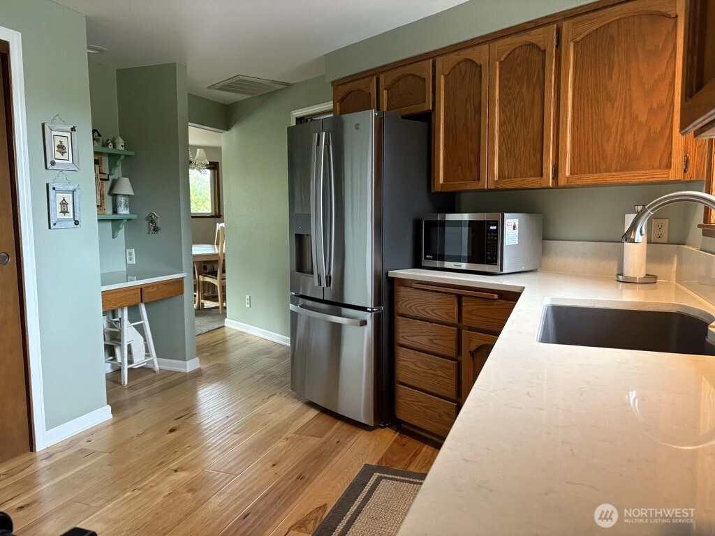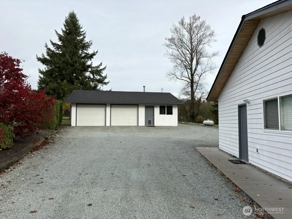 Just in time for the Holidays! 5.5 acres in desired Hidden Meadows. This 3 bedroom plus office, 3 bath home features a bright open living room, large kitchen, storage galore, brand new SS fridge and quartz countertops. Gorgeous Hickory wood floors in main living areas. A cold closet for canning, new hot water tank, quartz countertops in all bathrooms, new tub/shower combo in guest bath and new shower in primary. Home has new triple glazed windows, new exterior fiberglass doors, gutter guards, and more! Heat with propane or wood. Enjoy nature and bird watching while relaxing on your stunning 30 x 40 stamped patio. Spacious 864 sf detached Garage & Shop. Pasture perfect for horses! Conveniently located between MV & Bellingham. See Today!