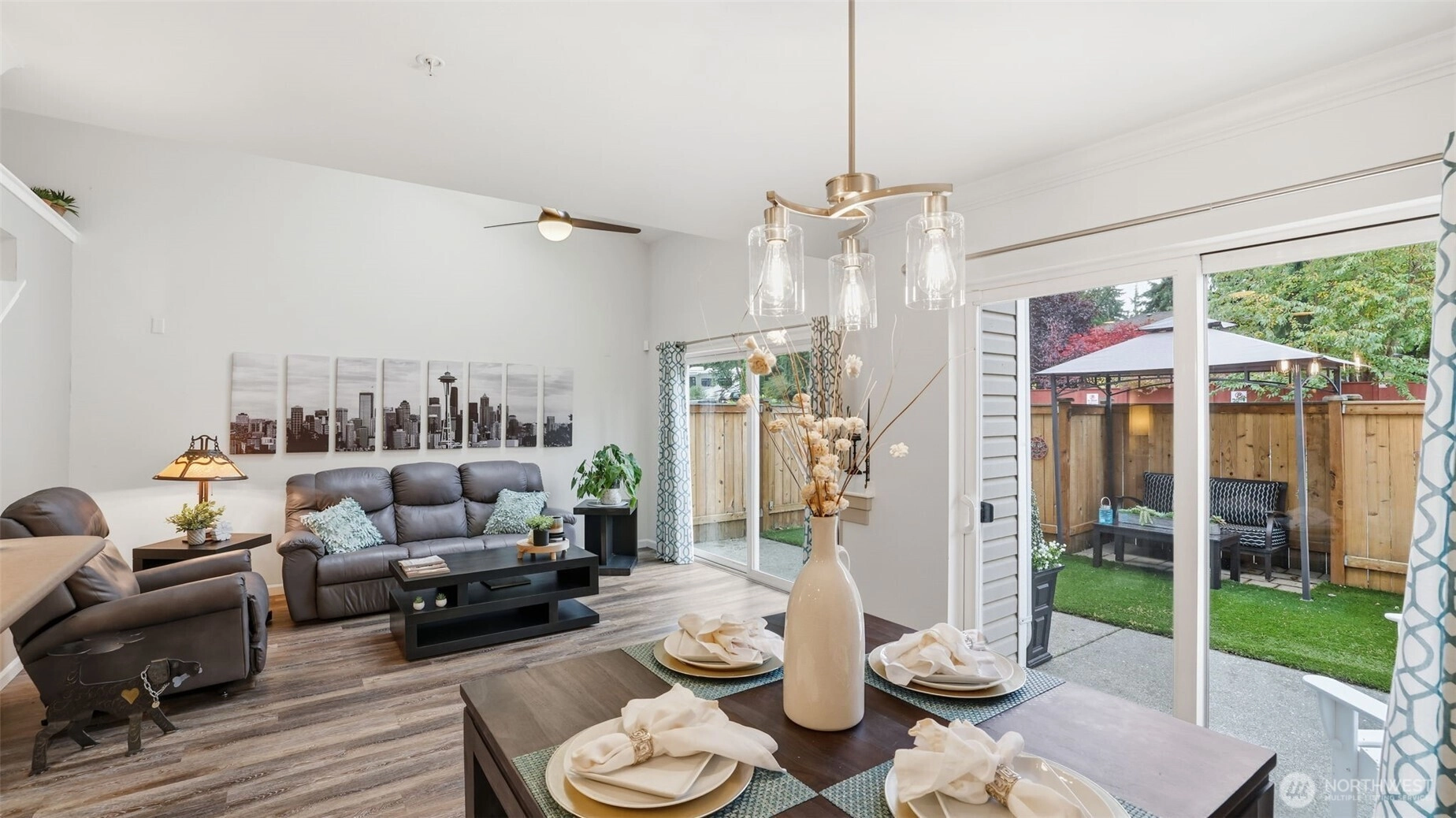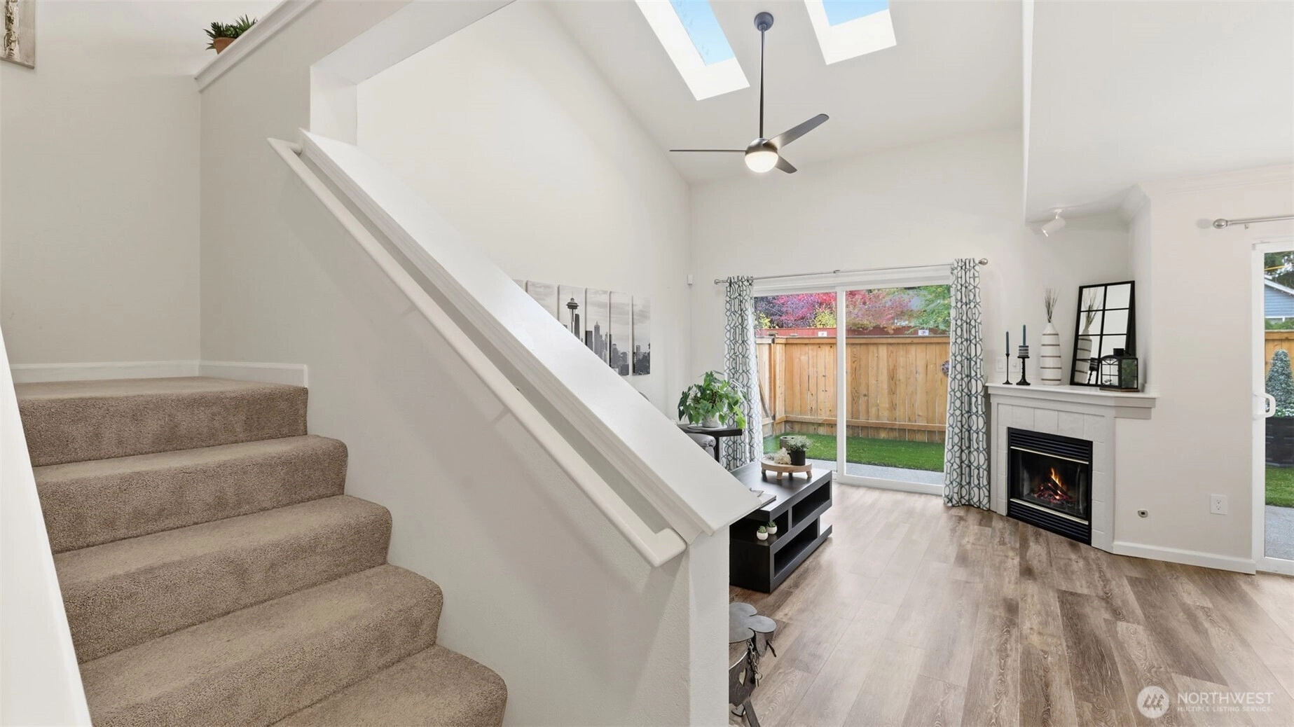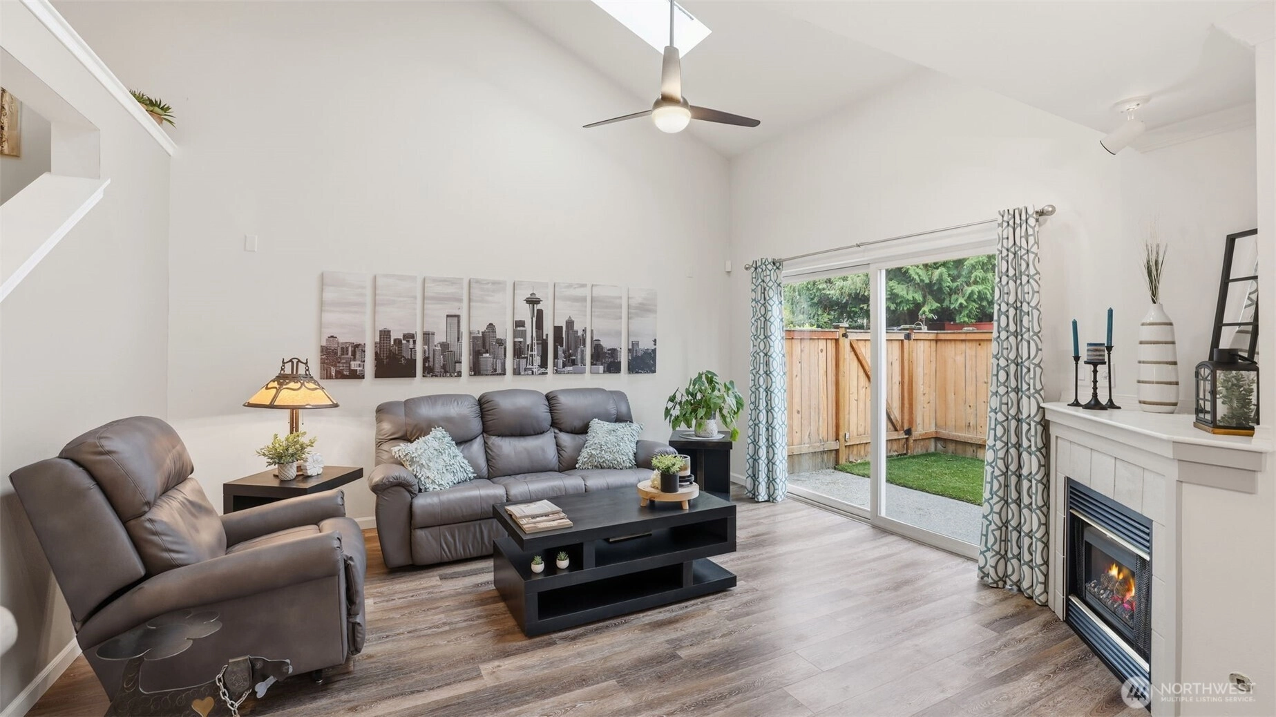Discover this radiant 3-bedroom, 2.5-bath gem nestled in the heart of Silver Lake! Brimming w/ warmth & contemporary charm, this home features soaring ceilings, skylights & a spacious open-concept layout—perfect for entertaining or relaxing. STEP OUTSIDE TO A RARE, FULLY FENCED PRIVATE BACKYARD OASIS complete w/ turf & a covered awning. Upstairs relax in the primary suite w/vaulted ceilings, generous closet space & an en-suite bath. Two additional bedrooms & a full bath, round out the upper level. The home also includes a fully finished, attached one-car garage plus an additional covered parking space & an in-unit washer & dryer. Minutes from Costco, I-5, & Silver Lake, this stylish & low-maintenance property is a rare find. No rental cap.
