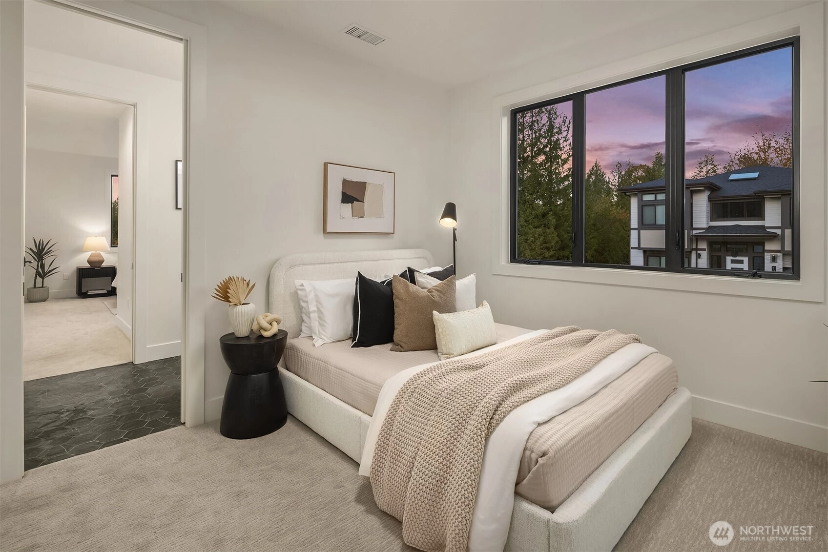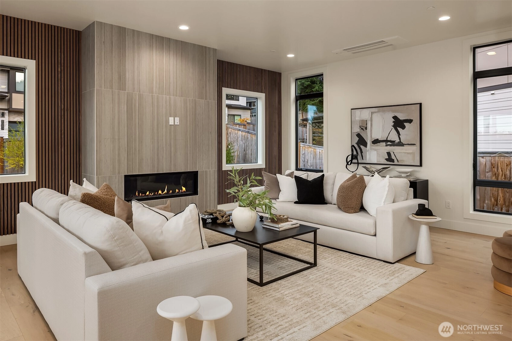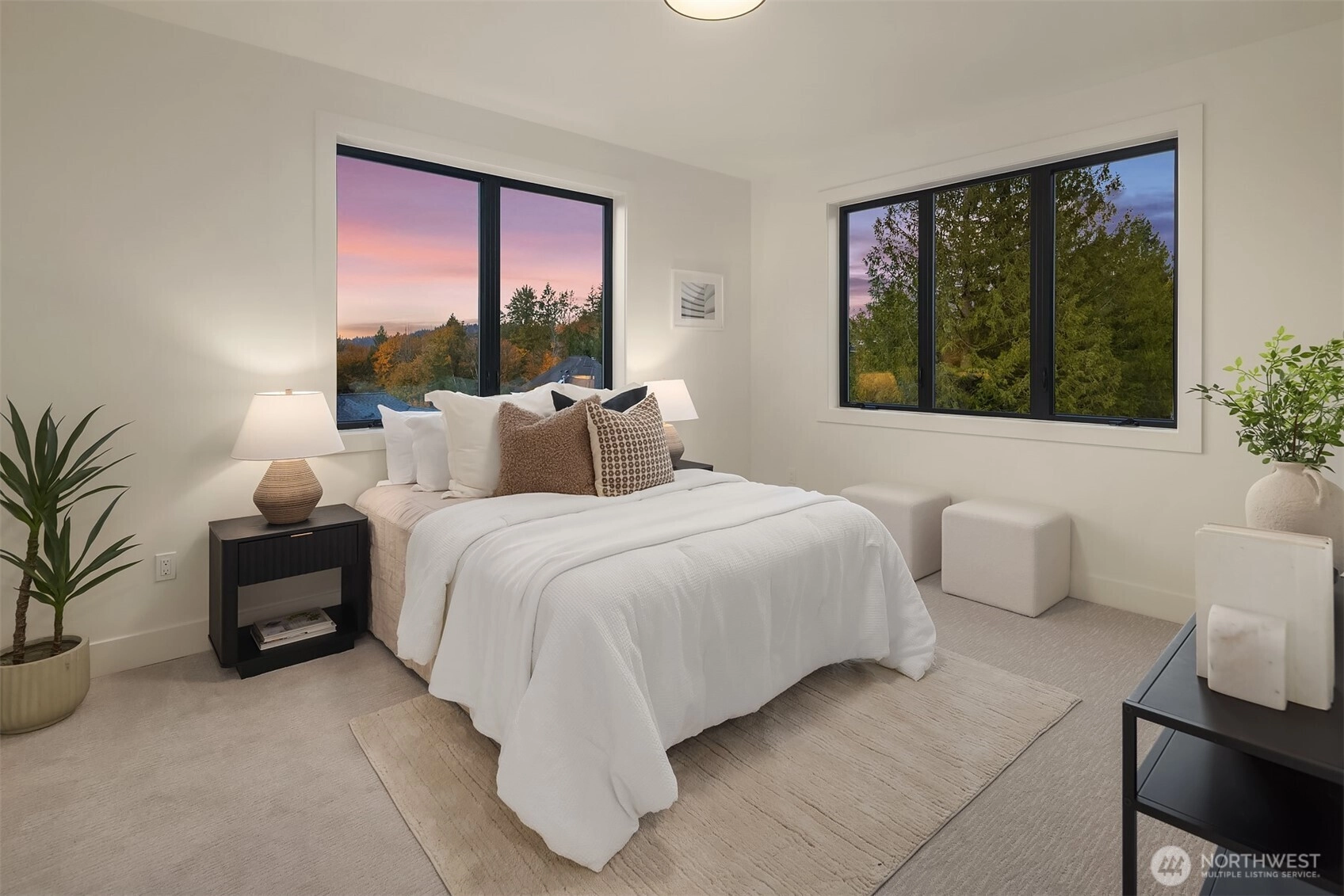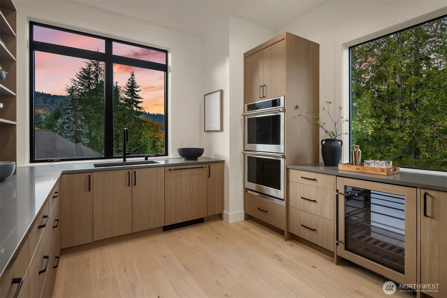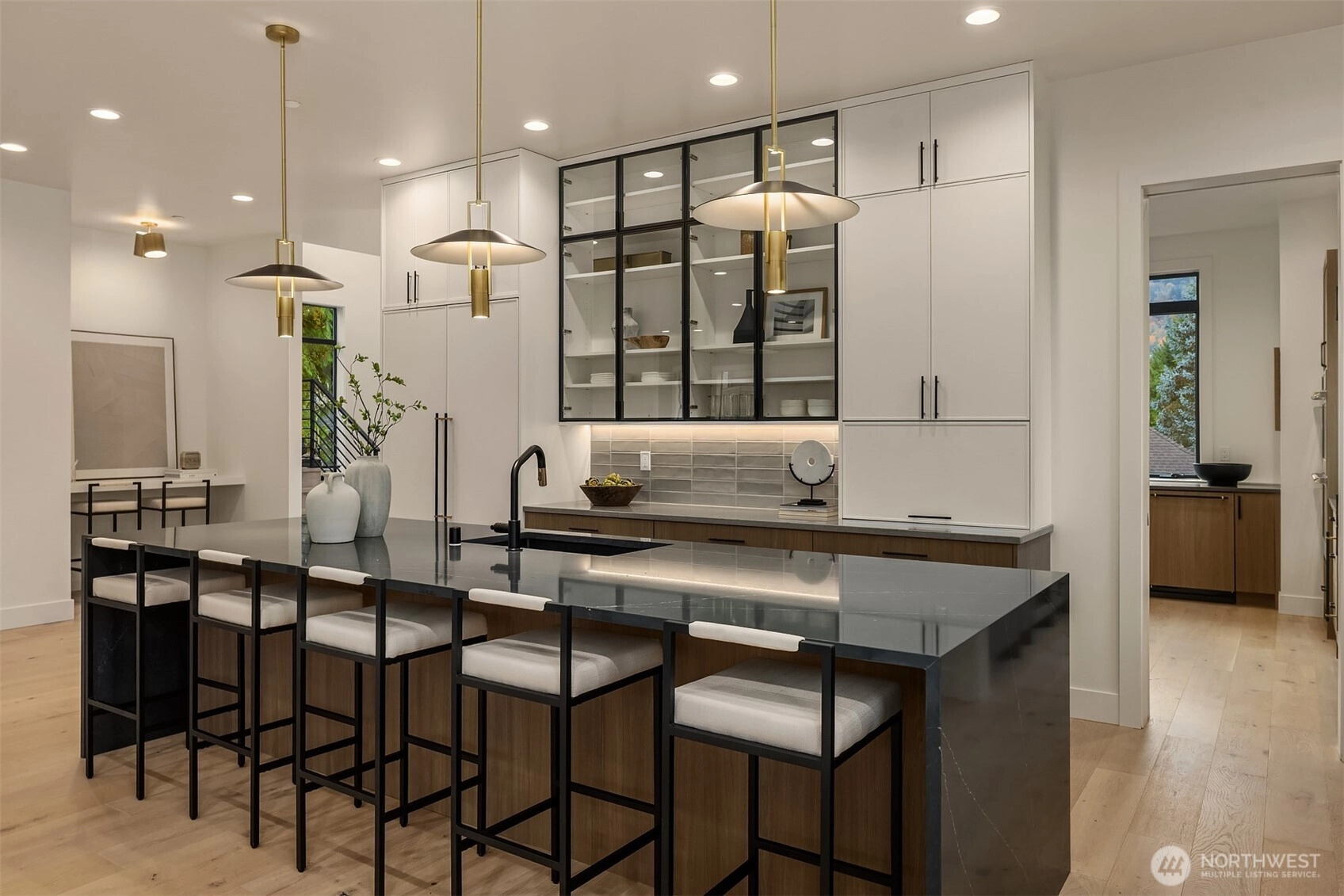 Perched above Issaquah’s lush tree line w westerly views, this newly built Veristone Homes balances modern elegance w natural tranquility. A grand entry opens to sunlit interiors illuminating wide-plank oak floors. The chefs kitchen impresses w an 11ft double waterfall island, Hestan range w pot filler, Monogram appliances, & full scullery, inviting gatherings & quiet moments alike. Downstairs, herringbone floors flow through the spacious lower level featuring media room & studio w 2nd kitchen & private, no-stairs entry—ideal for guests or extended living. Upstairs, 4 ensuites include a serene primary suite w heated floors, soaking tub, & windows framing peaceful green vistas. Turf yard, covered patio, & refined finishes complete this home.