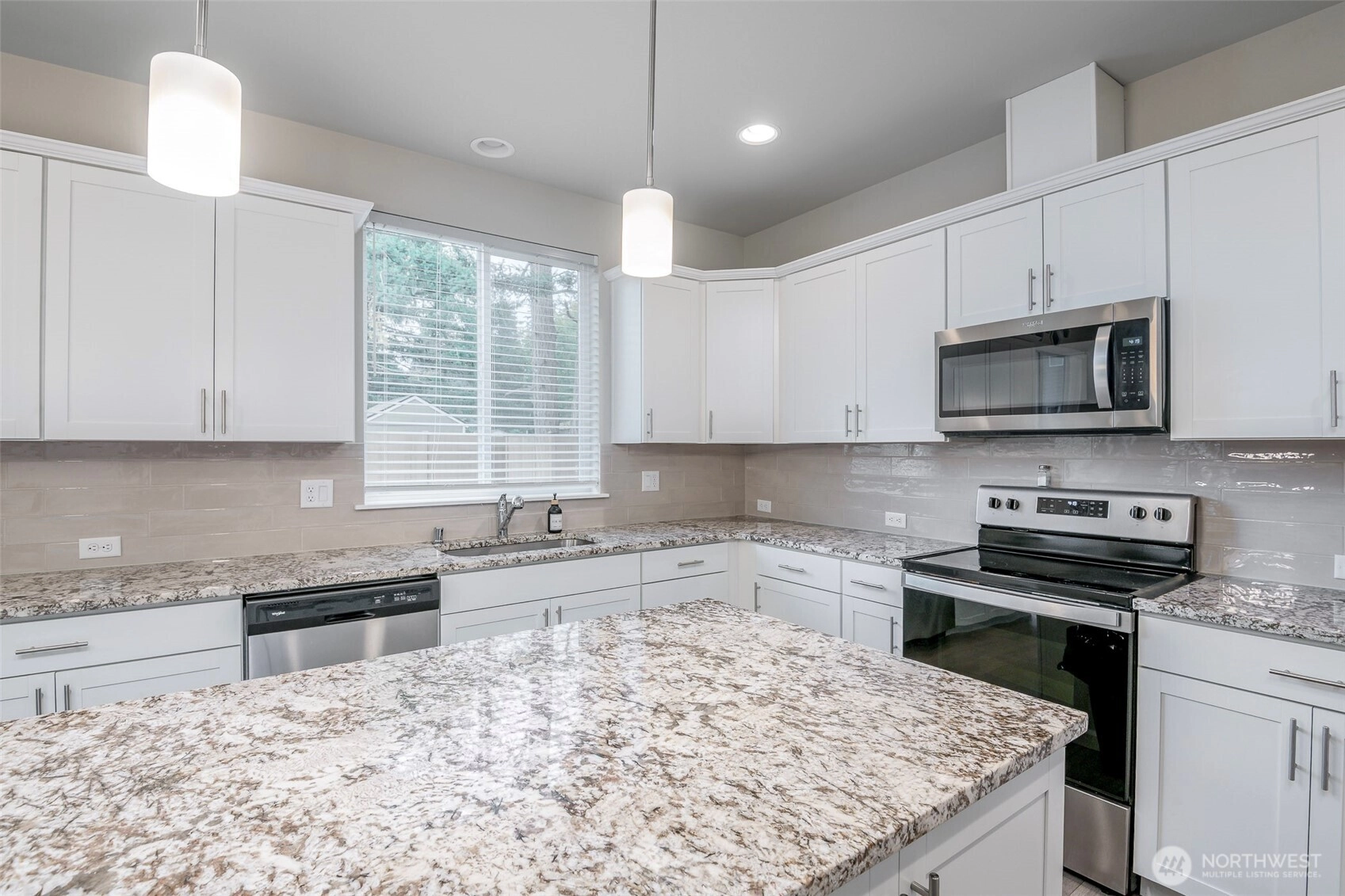 Tucked away in a serene setting, this elegant 5-bedroom residence blends modern luxury with timeless comfort. Bright, open living spaces feature designer finishes, an oversized quartz island, and sleek stainless-steel appliances. With two primary suites, including one on the main level, this home offers both flexibility and sophistication. An extra-long driveway provides more options and guest parking, while the fully fenced yard provides privacy. Impeccably maintained and only a few years old, it’s move-in ready and waiting for you.
