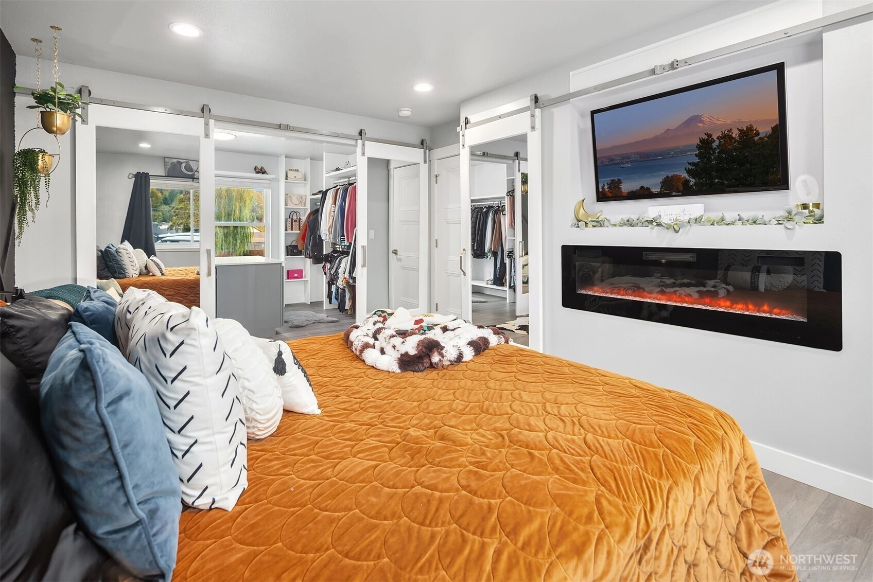 Discover comfort and style in this beautifully updated home featuring a new furnace, new air conditioning, and new hot water tank for peace of mind. The luxury primary suite impresses with barn doors, cozy fireplace, an enormous dressing closet, and a spa-inspired bath with heated flooring—your personal retreat. 4th bedroom with fireplace can also be bonus room. Enjoy peekaboo Mt Rainier views. Large, fully fenced yard with firepit and new fencing with plenty of room to play. RV parking adds convenience and versatility. Close to all amenities and only minutes to 167. This home truly checks all the boxes! Pre-inspected!