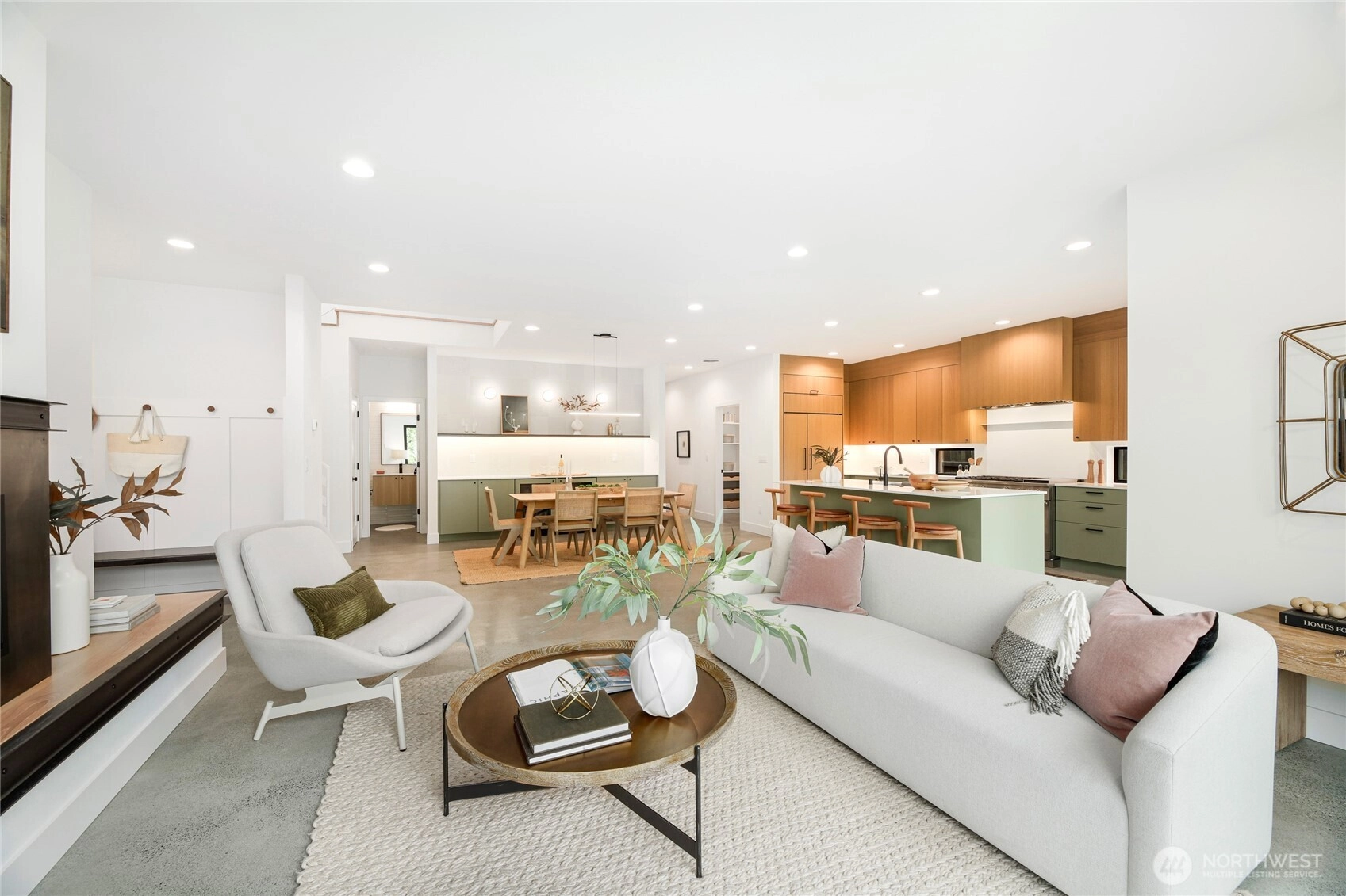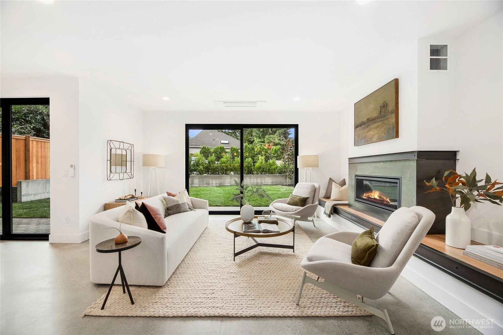 Experience modern Northwest living in this exceptional 5-bed 4-bath new construction by KaneBuilt, nestled in sought-after Bridle Trails. Designed with a perfect balance of luxury and functionality, this home features a spacious yard and a 2-car garage with EV charging. Inside, heated polished concrete floors pair beautifully with real hardwoods and sleek steel accents. The chef-inspired kitchen shines with a gas range, built-in fridge, and high-end appliances. Soaring vaulted ceilings and walls of windows fill the space with natural light, while a versatile upstairs bonus room offers room to relax, play, or work. Gather around the cozy gas fireplace or entertain effortlessly in this stylish, thoughtfully crafted home. This home has it all!