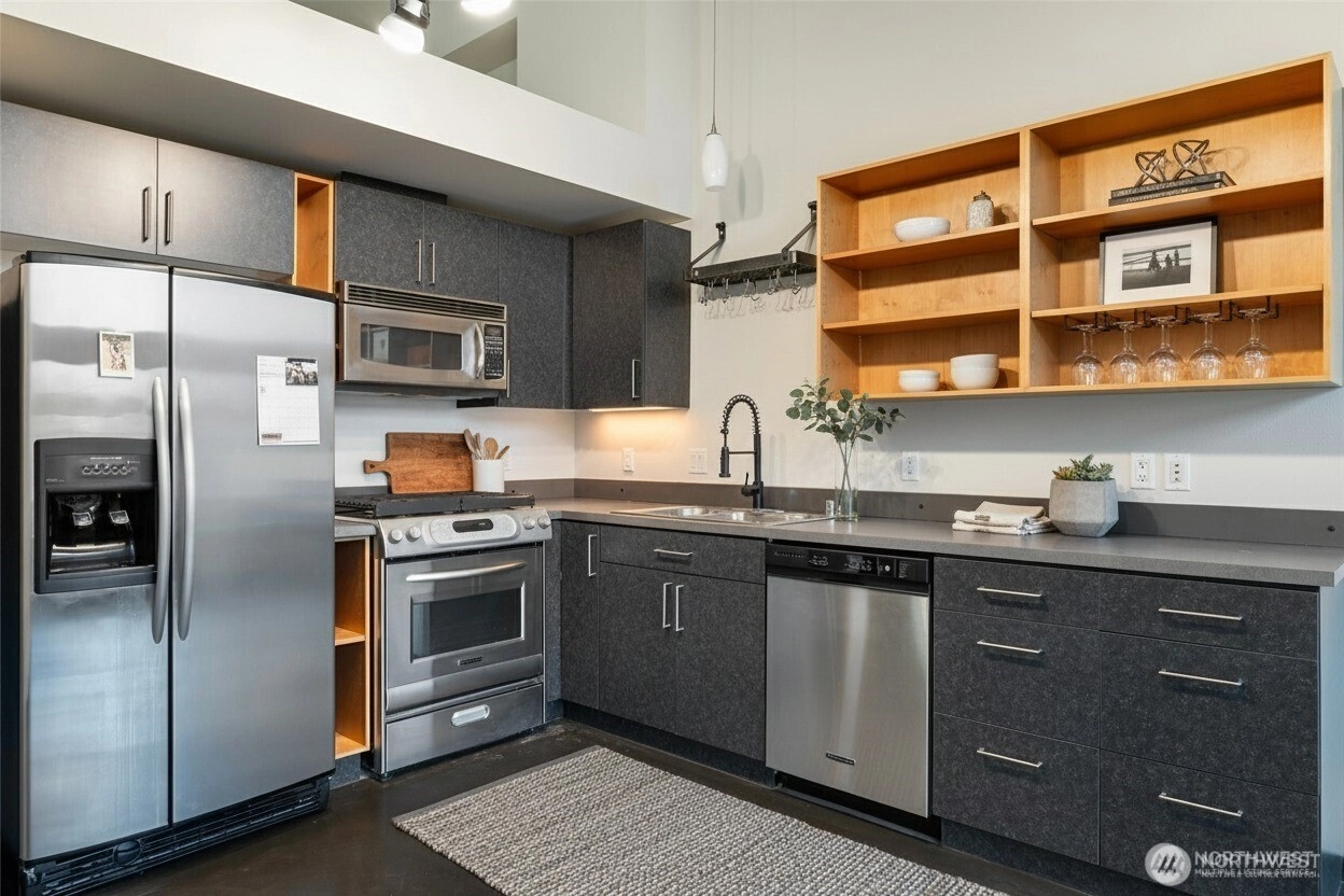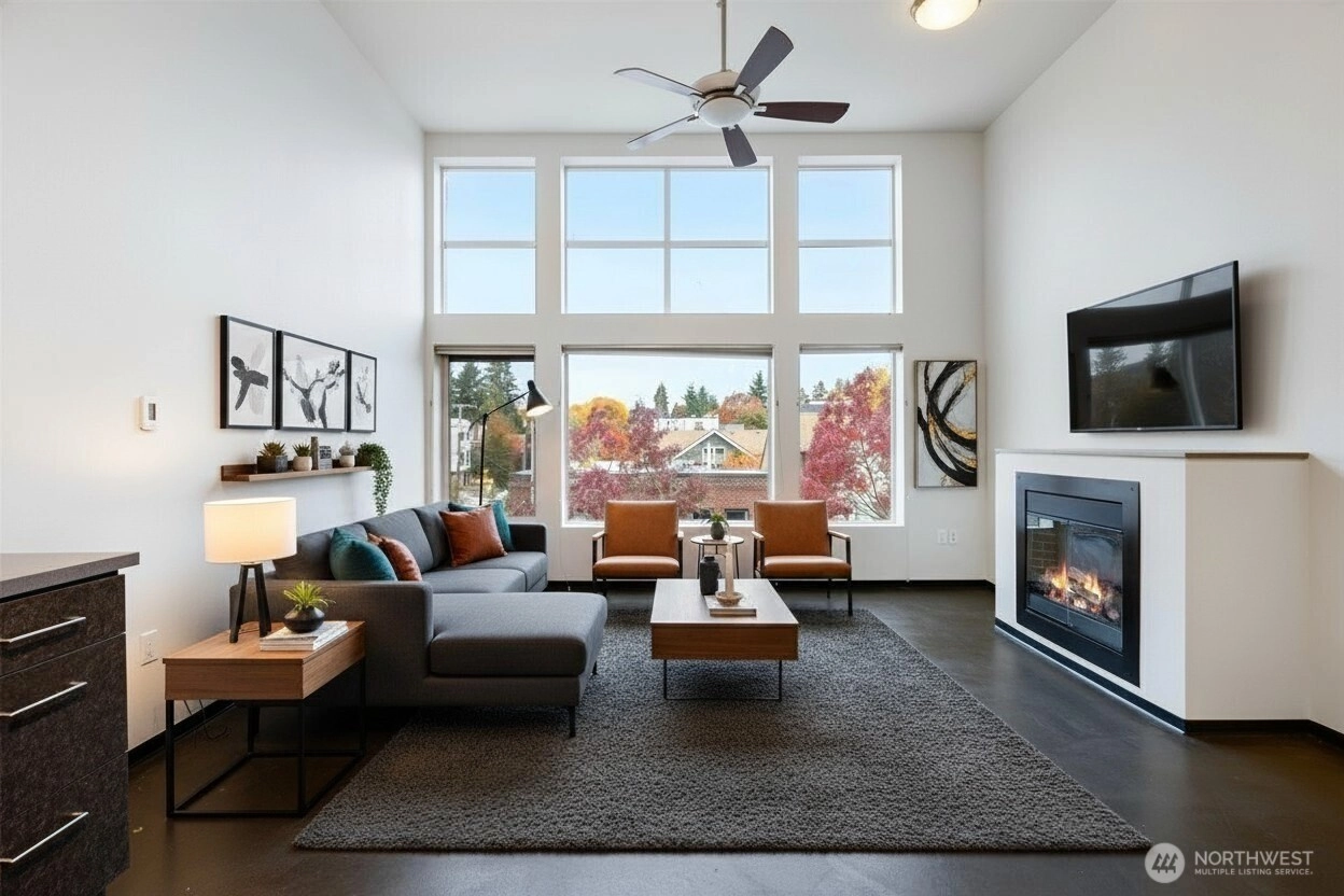 Super cool studio with loft in Seattle's Wallingford neighborhood! Open floor plan, gas stove and fireplace. Large windows overlook all the action on 45th! The building features a 24 hour exercise room, bike storage, secure entrance & large elevator. This unit comes with a private storage space in the lower level parking garage as well as one secure parking space. Easy access to UW, public transportation, I-5 and Highway 99. No rental cap with a 30 day or more lease. Pets allowed w/restrictions.