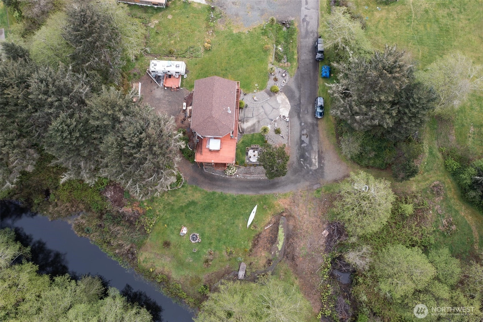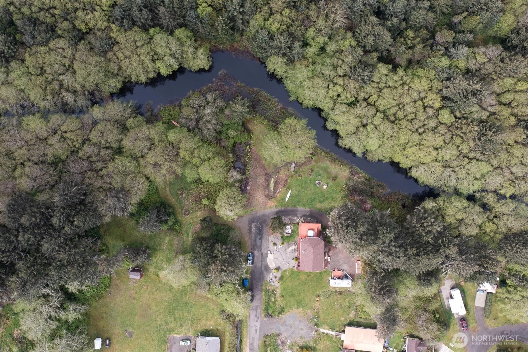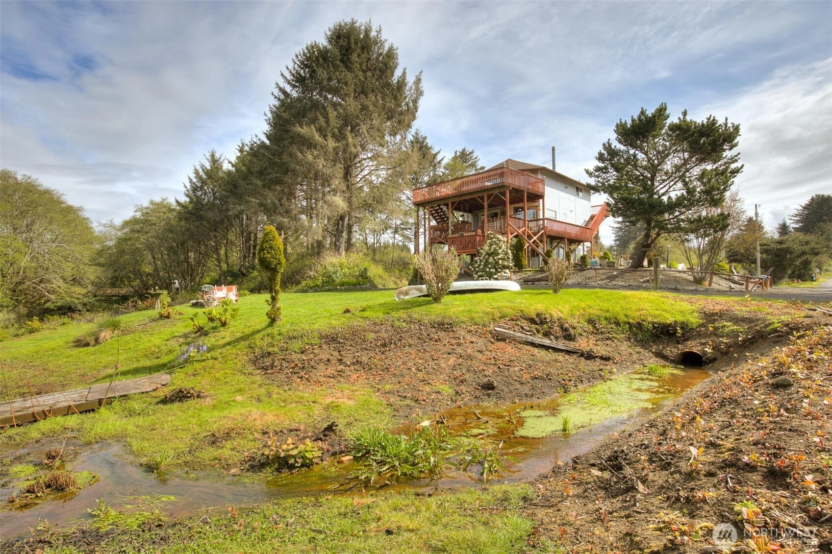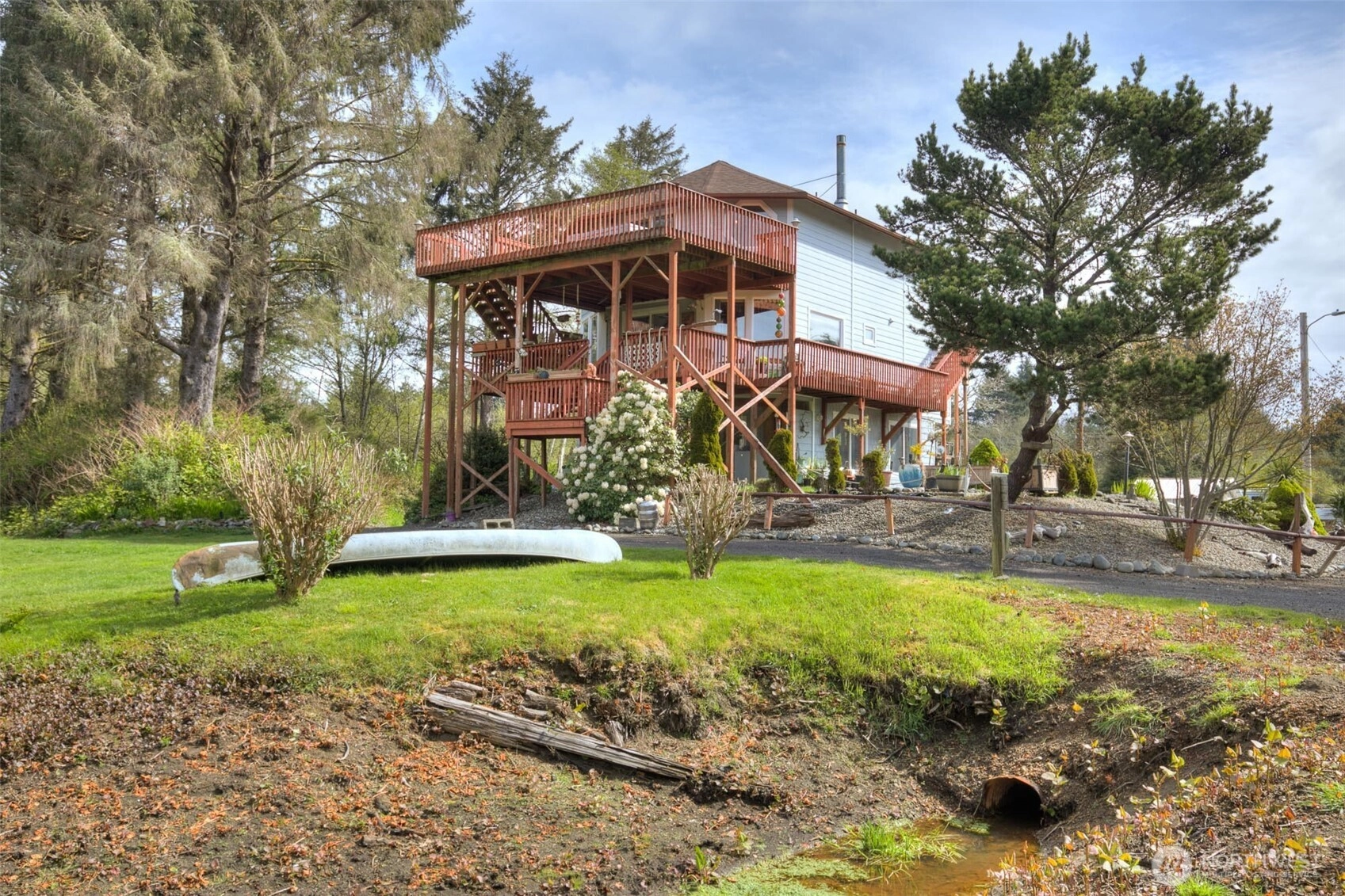 Large downstairs full apartment with private entry included in this 3 Bedroom, 2.75 Bathroom custom built home. Designed with ample room for multi-generational living, or use for nightly/long term rental many unique possibilities. Perfect floor design w/ 2 bedrooms, bathroom, kitchen and living room all on the main floor. Primary Bedroom & Bath w/ double vanity, soaker tub, shower, & walk-in closet on top floor w/ a catwalk leading to large Deck for enjoying views of Conner Creek, river otters, blue heron, geese. Cedar trim and many windows contribute to the character of this home located at the end of a private road. Approx. 300ft to drive on beach access road. New Roof 12/2019; Siding in 2014; Septic in 2011. RV parking with all hook-ups.