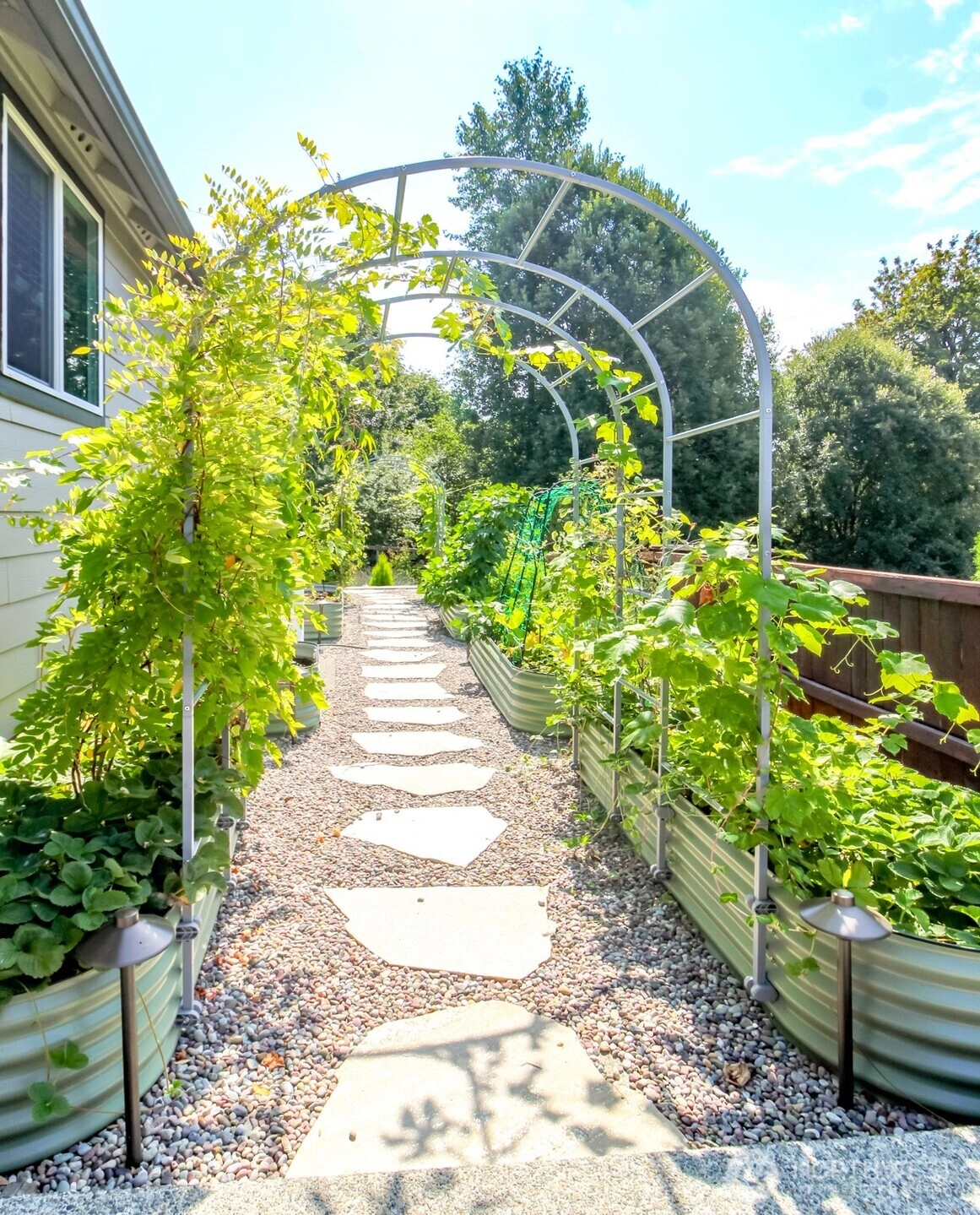GARDENER'S DREAM, 2177 SF 3 bed plus office, 3 car gar, 3 bath Rambler on 1/3 acre! Hansen Constr, quality built & well maintained 1 story home w/Central Air/Heat Pump, propane tankless, 275k upgrades: new appliances, custom interior paint/wallpaper, designer lighting, quartz counters, "Calif closet" type garage/primary storage, engin'd hardwood, honeycomb shades, Board & Batten w/expansive windows overlooking the nature preserve (no neighbors behind), Prof landscaped/hardscaped apple/pear/peach/fig/cherry/plum/rasp/straw/blueberries, grapes, 12 Vego brand garden beds w/trellises, upgraded sprinklers/soakers/incl garden beds, NEW custom patio & low voltage lighting (50k) Hot tub on back porch enclosed in plexi glass for 365 day comfort