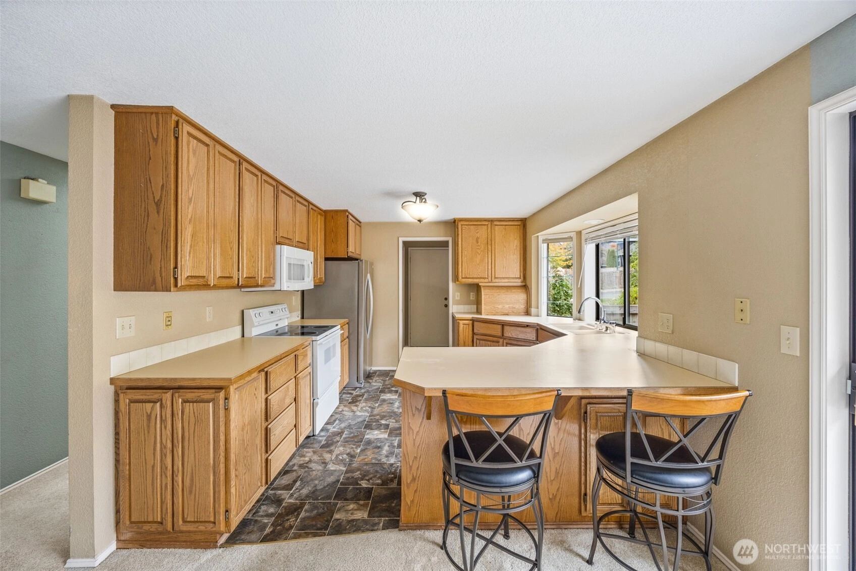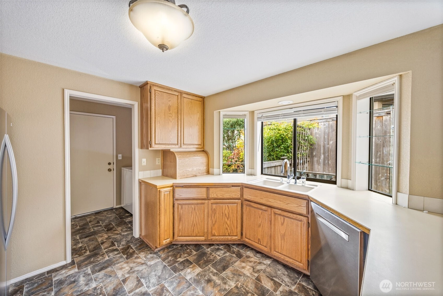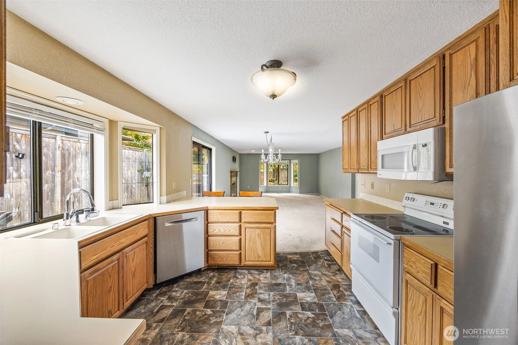 Rare rambler-style condo in the heart of University Place! Enjoy the ease of one-level living in this beautifully maintained home featuring an open-concept layout w/ a cozy fireplace & a well-appointed kitchen offering ample counter space & storage—perfect for everyday living. The primary suite includes large windows, a walk-in closet & an ensuite bath. A spacious second bedroom—ideal for guests or a home office—sits next to a hall bath w/ updated vanity. Additional highlights include a laundry room w/ washer/dryer, double car garage, and a newer heat pump for efficient heating and cooling. Nestled in a park-like community maintained by the HOA, this condo offers the comfort of a single-family home with the ease of low-maintenance living!