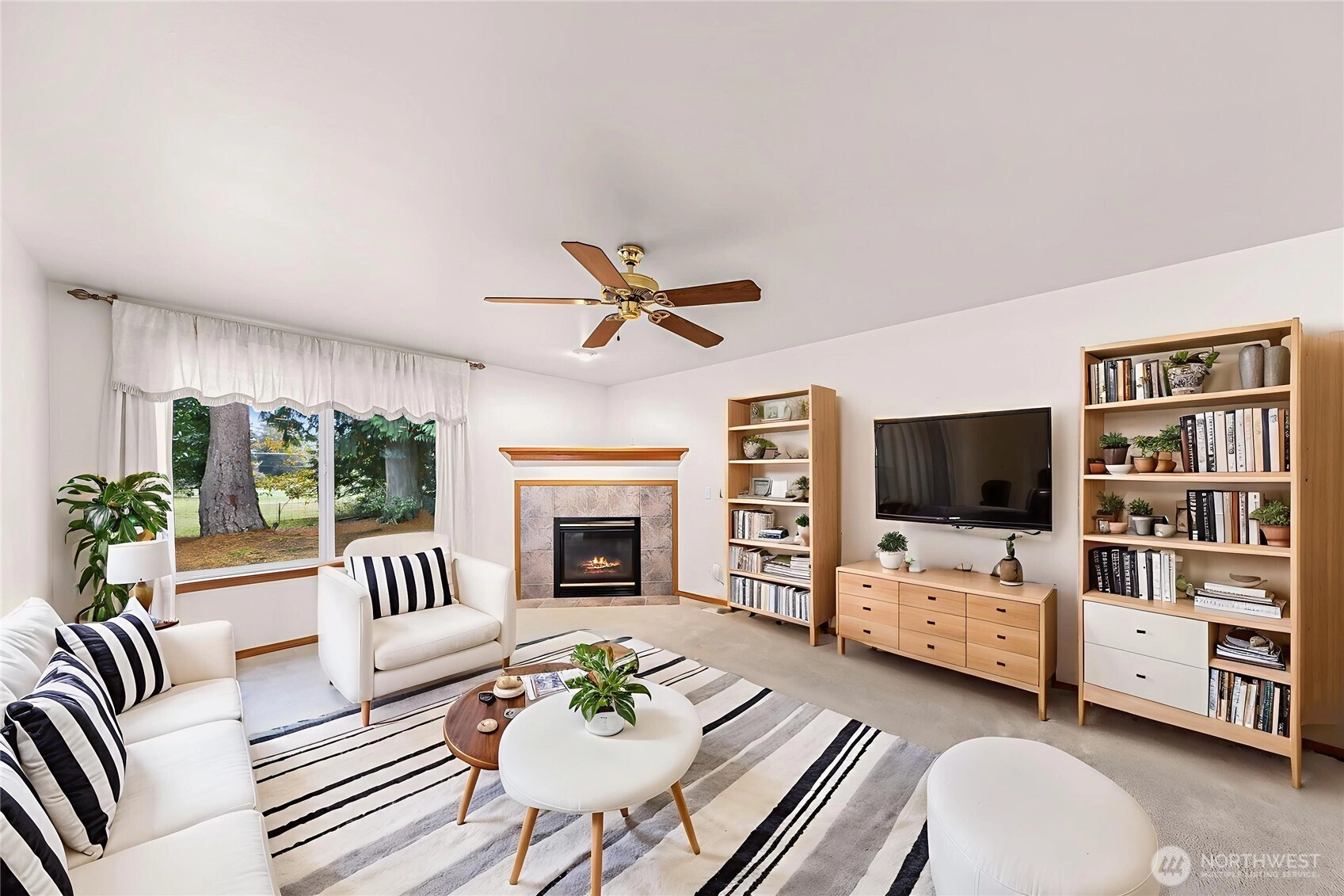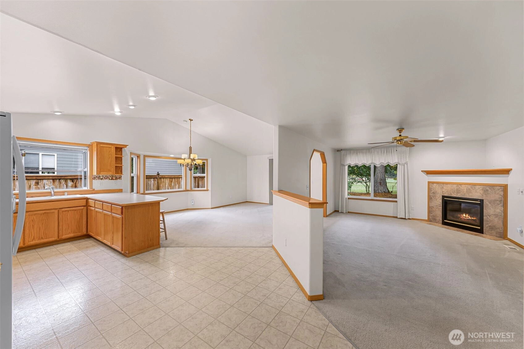 Impeccably maintained & rarely available, don’t miss this one-owner rambler in High Clover Park. Featuring a thoughtfully designed open floor plan, this home offers bright, inviting spaces w/vaulted ceilings, wood wrapped windows & a formal living room w/a gas fp. The spacious kitchen w/wraparound counters opens to the dining & great room—ideal for gatherings. A slider from the primary suite & another from the main living area lead to a very private backyard w/an extended patio, mature landscaping & serene open-space views. 2 car garage w/utility sink. Recent upgrades include a brand-new roof w/transferable warranty & new gutters. Just min to charming Downtown Arlington and easy commute via I-5 and Hwy-9. Pre-inspection report available!