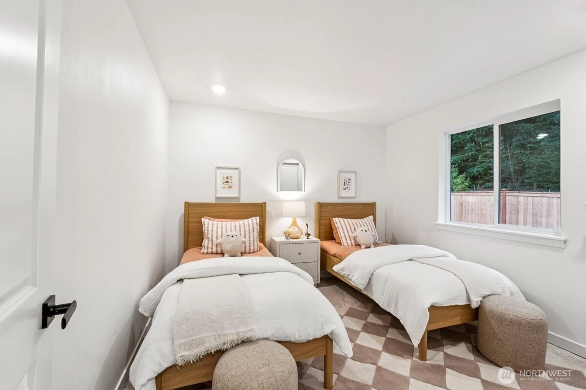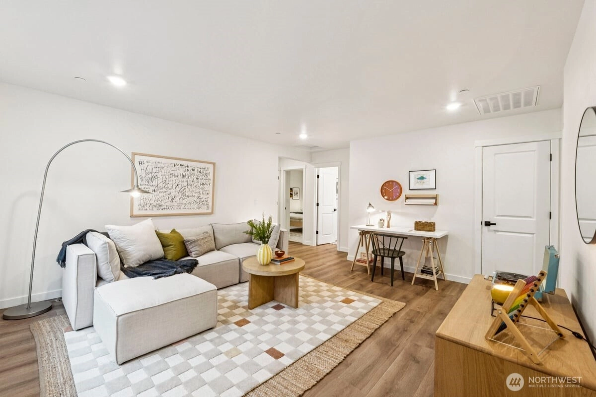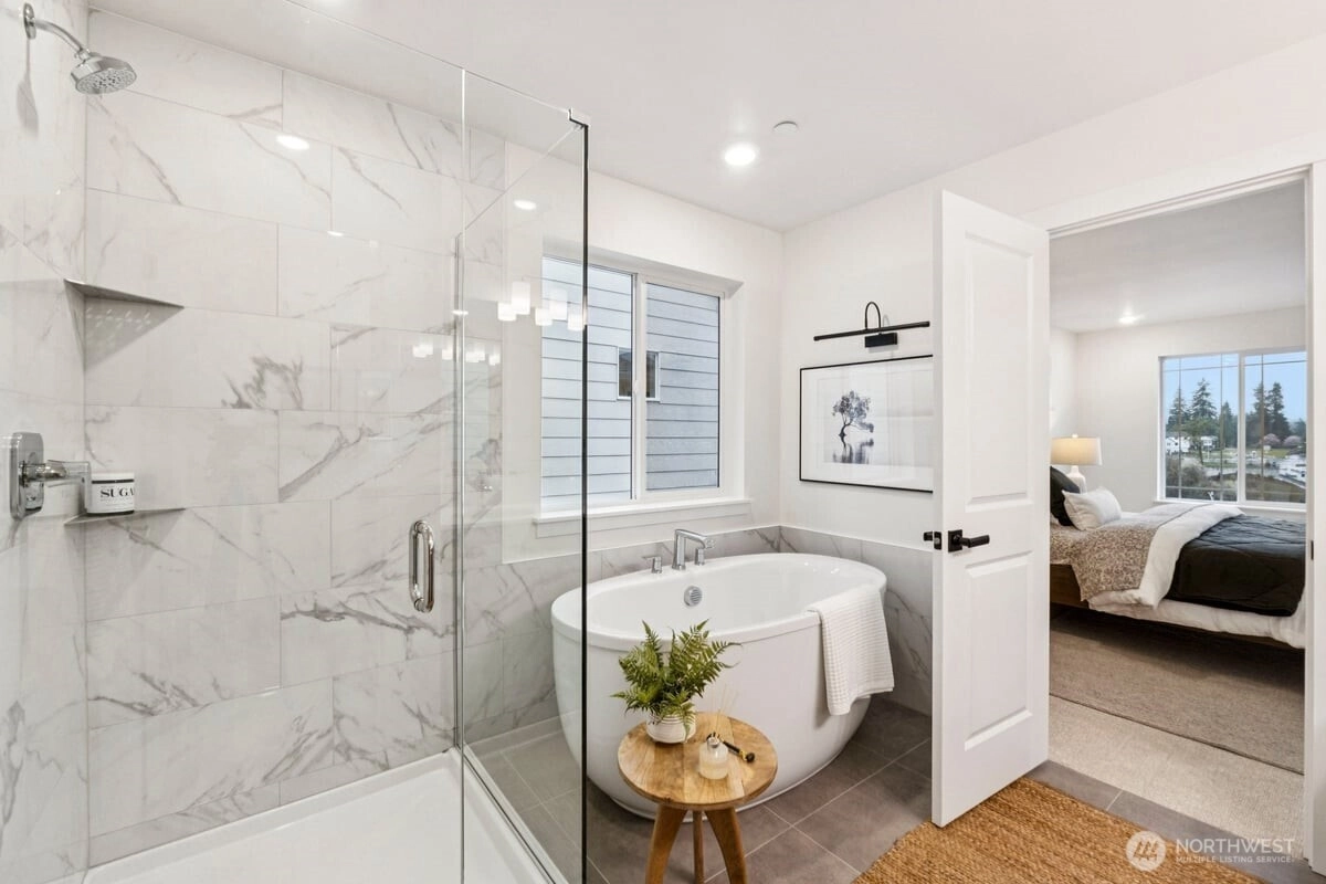 Discover the perfect balance of style, space & comfort in this 2746sf home. Spacious open concept on main floor invites gathering & entertaining, featuring great room w/cozy fireplace & chef-inspired gourmet kitchen w/quartz counters & backsplash & stainless steel appliances. The large main floor has a large bedroom & bath for guests or convenient space for work. Enjoy the privacy and separation this plan provides, ideal for households that value personal space or multigenerational living. Oversized Primary Bathroom with ensuite and huge walk-in closet. Built for comfort & efficiency w/luxury vinyl plank flooring, Energy Star Certification, heat pump w/ A/C, LED lighting, EV charger & many other upgraded finishes. Fully fenced & landscaped yard w/covered patio. Northshore schools & minutes to downtown Bothell.