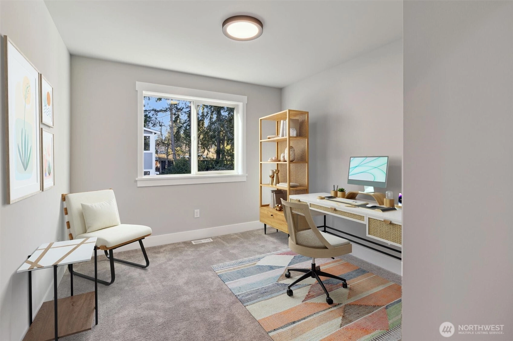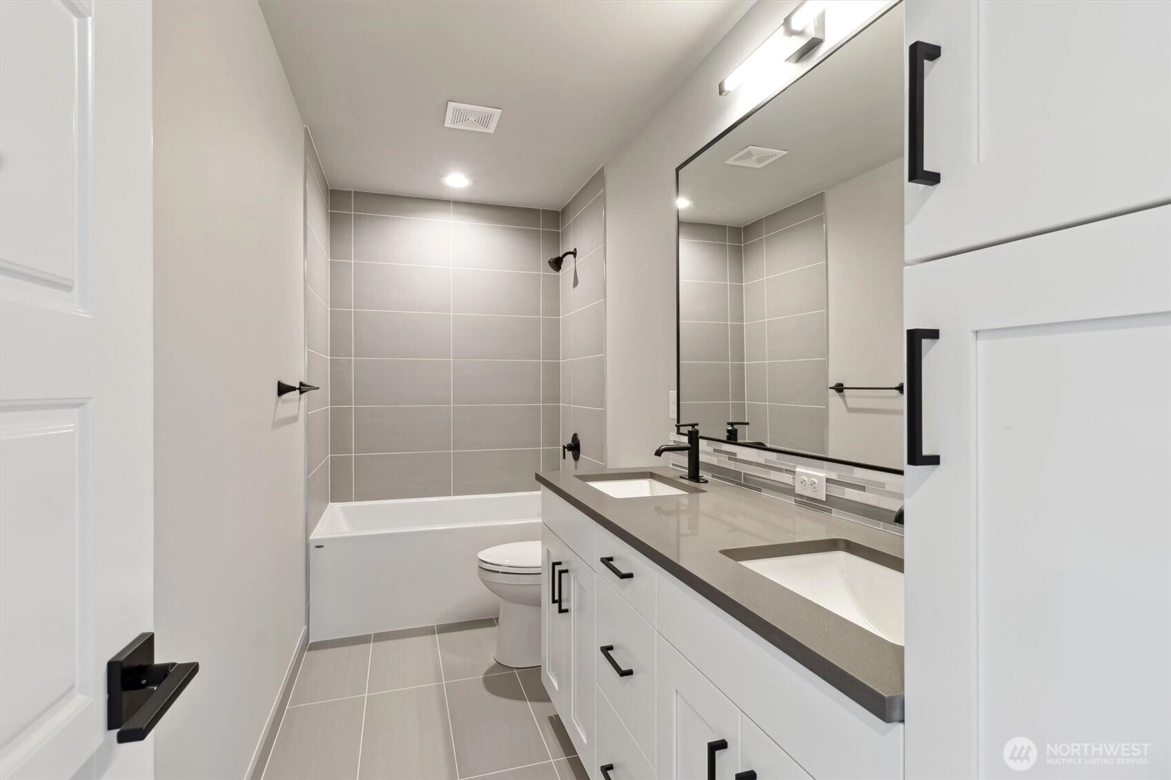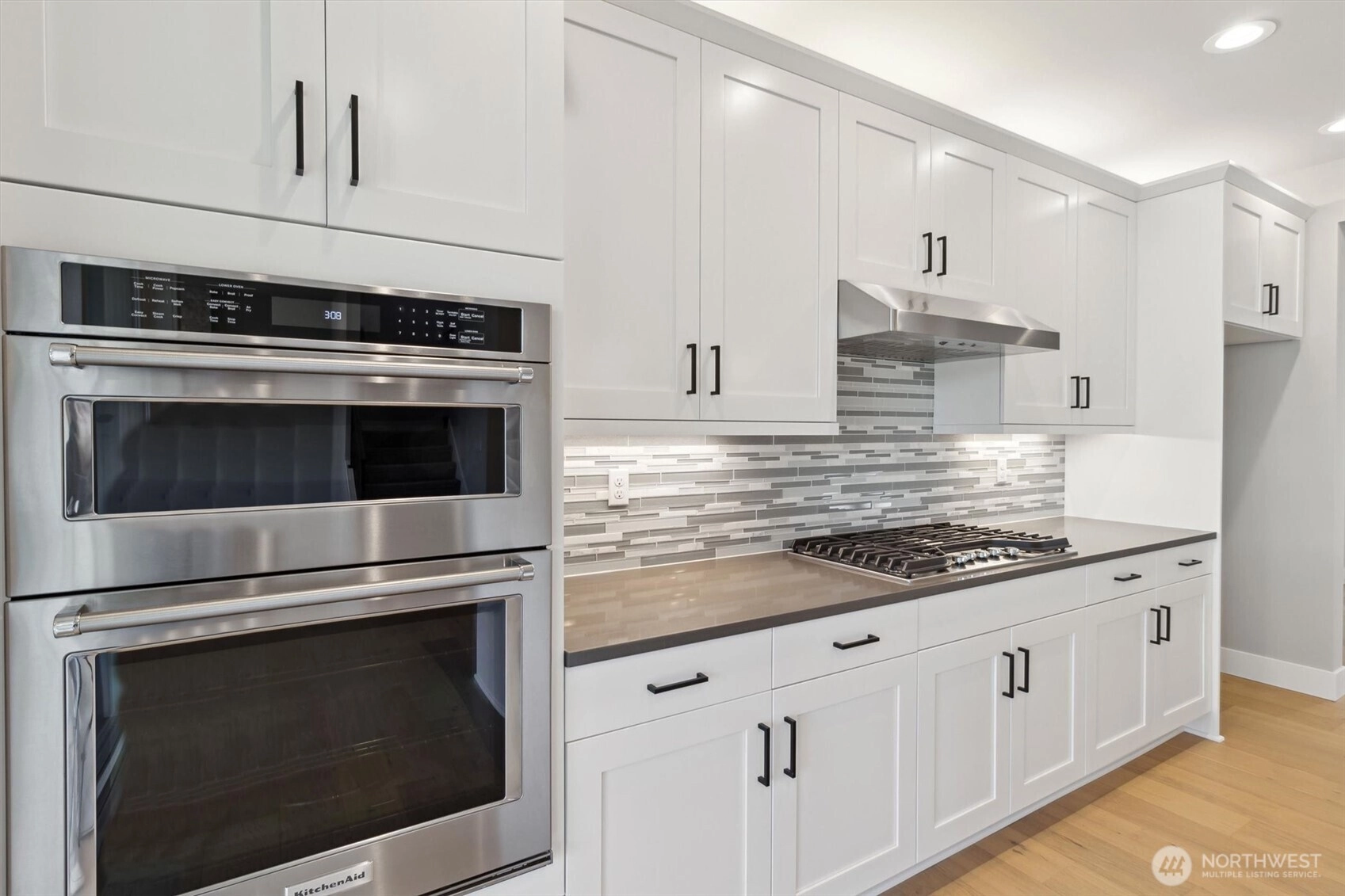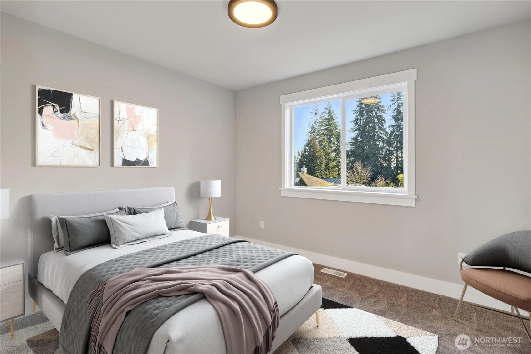 This beautifully appointed 2646 square foot home is only blocks from the light rail, shopping, parks and schools! Entry level offers a bedroom w/ensuite bath & slider to back yard. The Main floor fetures a Chef's kitchen with high quality SS appliances centered between a large dinning room and spacious & bright living area, with high ceilings, and cozy fireplace, along with the covered deck it makes the perfect place to gather! Upstairs, Primary with vaulted ceilings, walk-in closet & ensuite plus three more bedrooms; Gorgeous hardwood floors throughout the main floor and carpet in the bedrooms. Sweeping cedar & fir trees and a fully fenced private backyard creat a tranquil oasis in the rush of life!