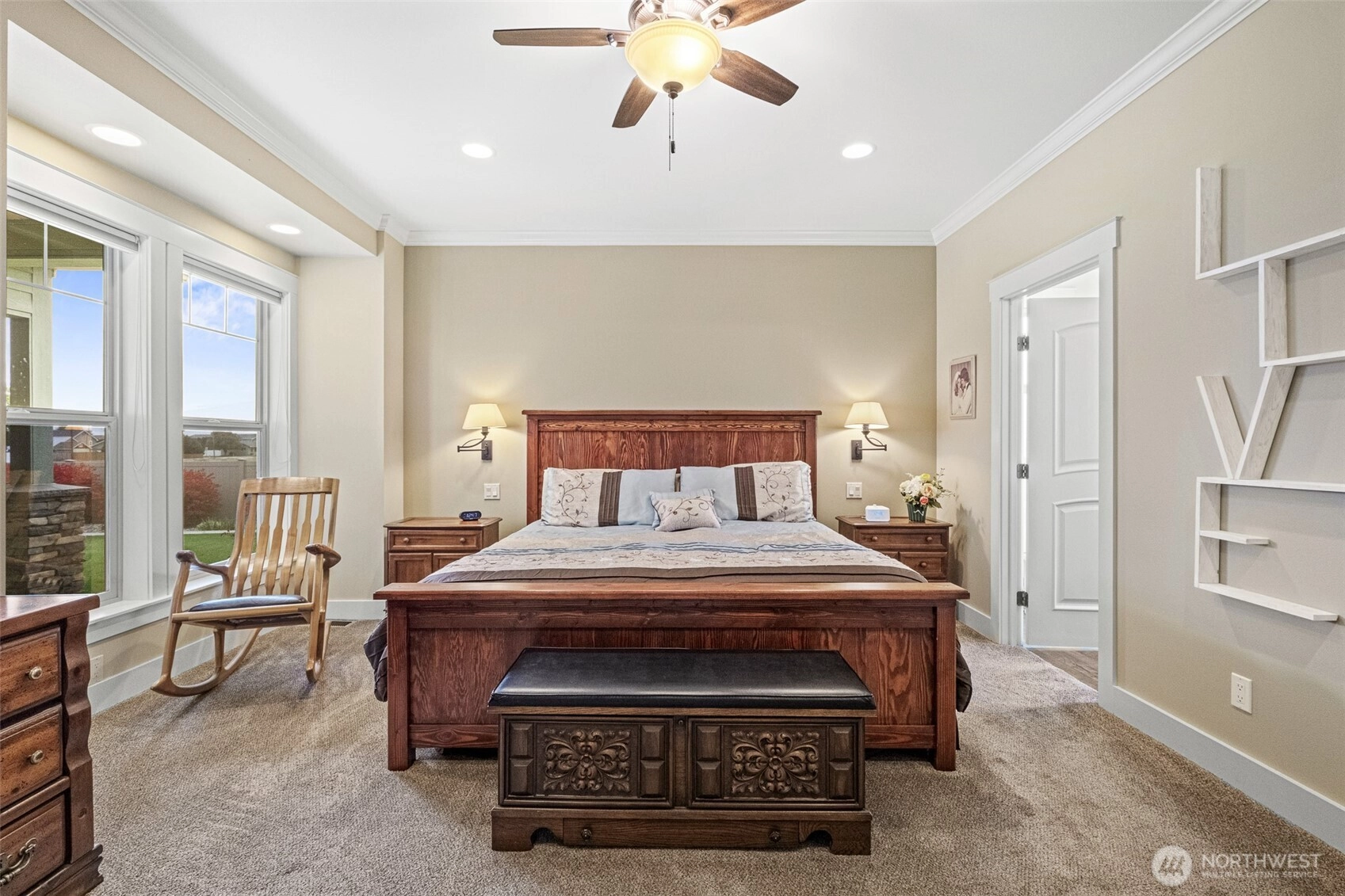 Immediately you know that this home is exquisite and maintained with love. It is perfect! Main level is incredible. Expansive entry, vaulted ceilings & 9' ceilings, crown molding throughout this main level. Quality, detail & perfection all point to careful planning & exemplary construction. Main level has living room w/ beautiful stone fireplace, blt-in shelves & cabinets; kitchen w/ gorgeous Huntwood soft-close cabinets to the ceiling, granite counter tops, gas stove top, double ovens, & large walk-in pantry. Also the main level has a formal dining room, breakfast nook, fantastic den, utility room & 3/4 bathroom, plus a beautiful primary bedroom suite. There is an upstairs & a downstairs that are equally mind boggling. This is a must see!