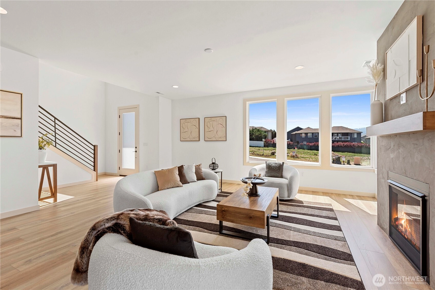 Striking modern architecture meets elevated design in this newly completed contemporary home. Spacious and light-filled, the open-concept layout highlights a sleek KitchenAid-equipped kitchen with quartz counters, designer cabinetry, and a large island for gathering. The main-level living area flows to a covered patio that captures beautiful views — perfect for indoor-outdoor entertaining. Upstairs, generous bedrooms and flexible living space offer comfort and versatility. Corner lot provides added light and privacy. Finished with premium materials and refined details throughout, this home delivers exceptional style and value just moments from the Wenatchee Loop Trail, Pybus Market, and downtown.