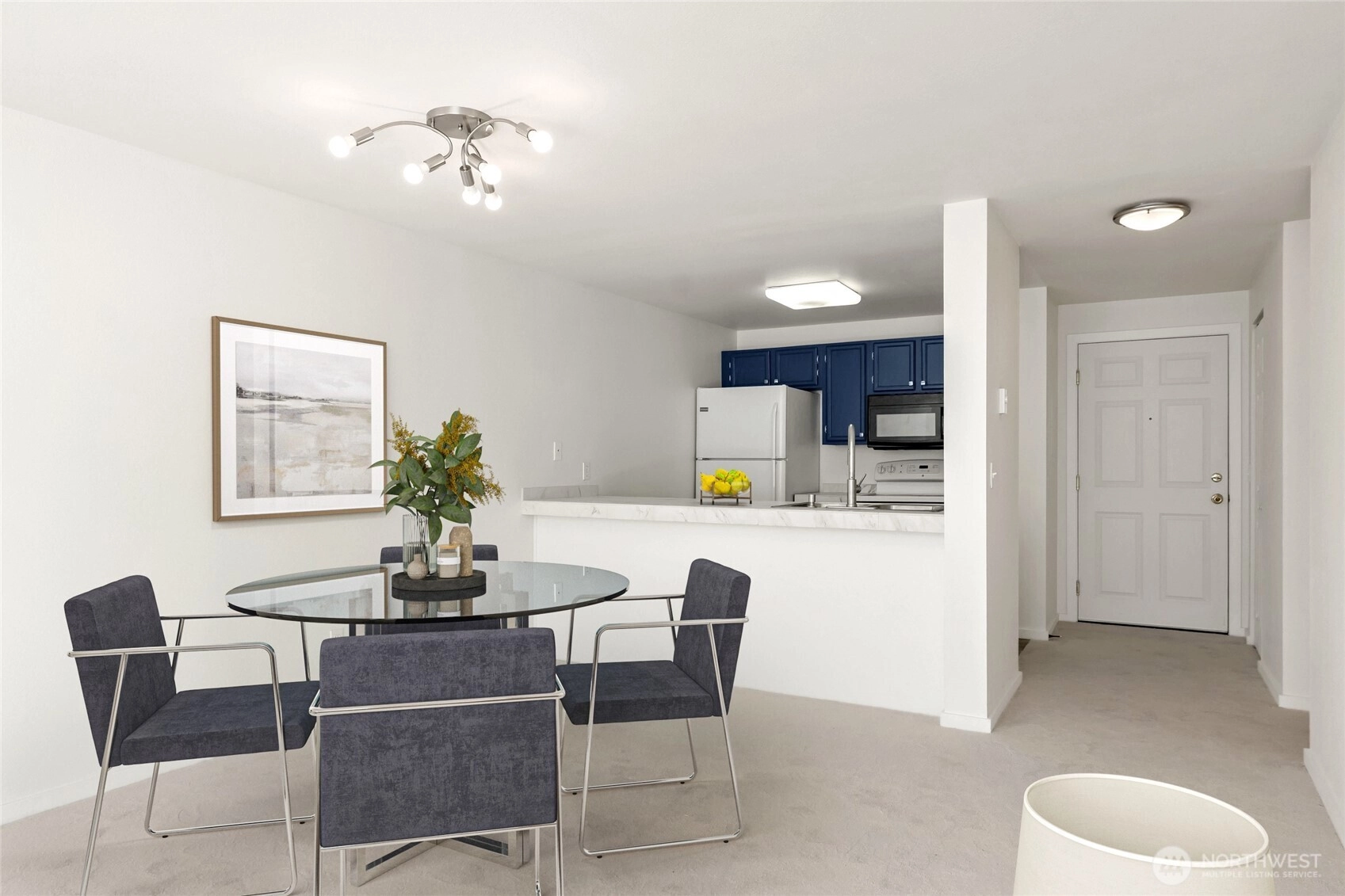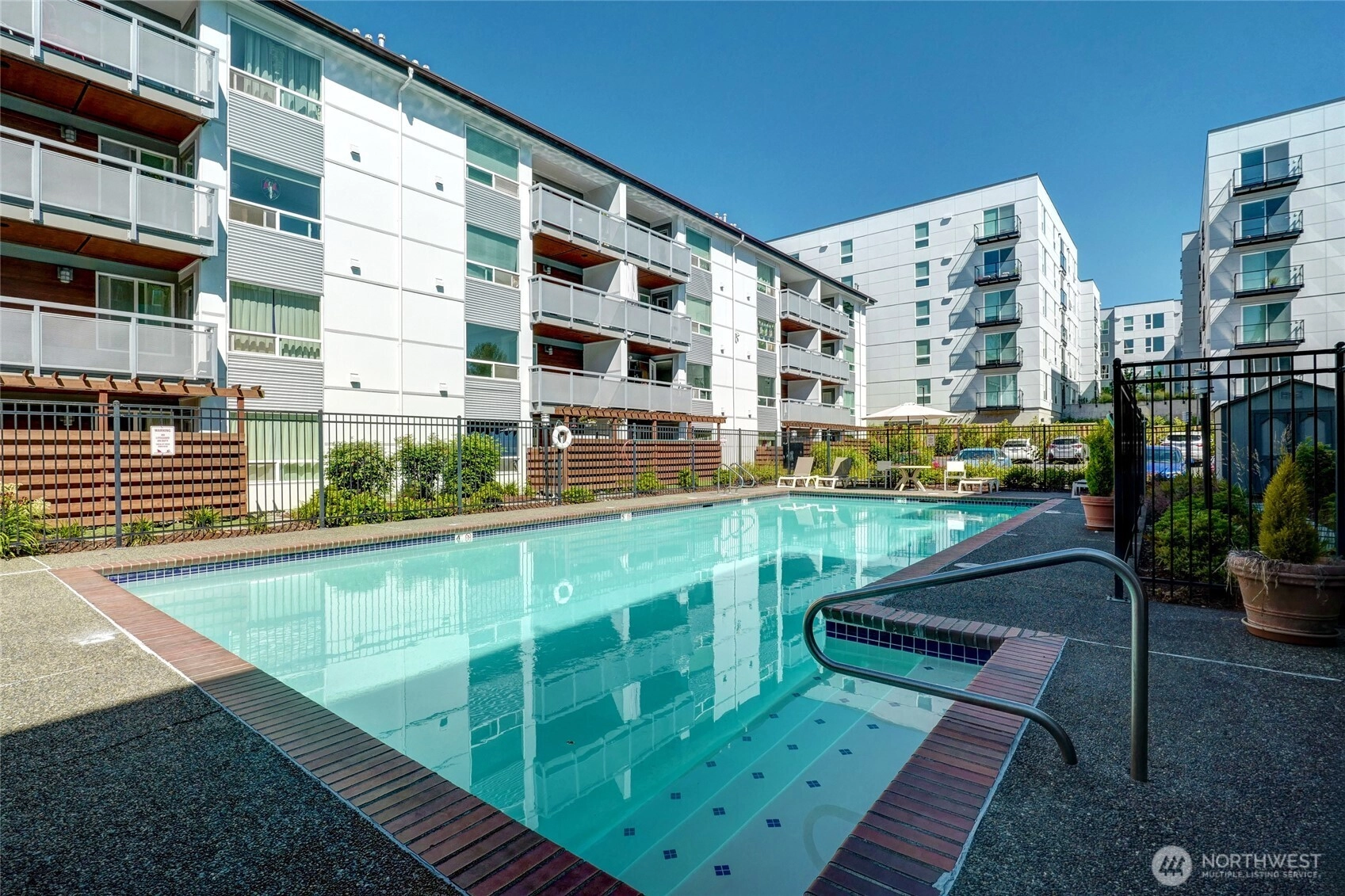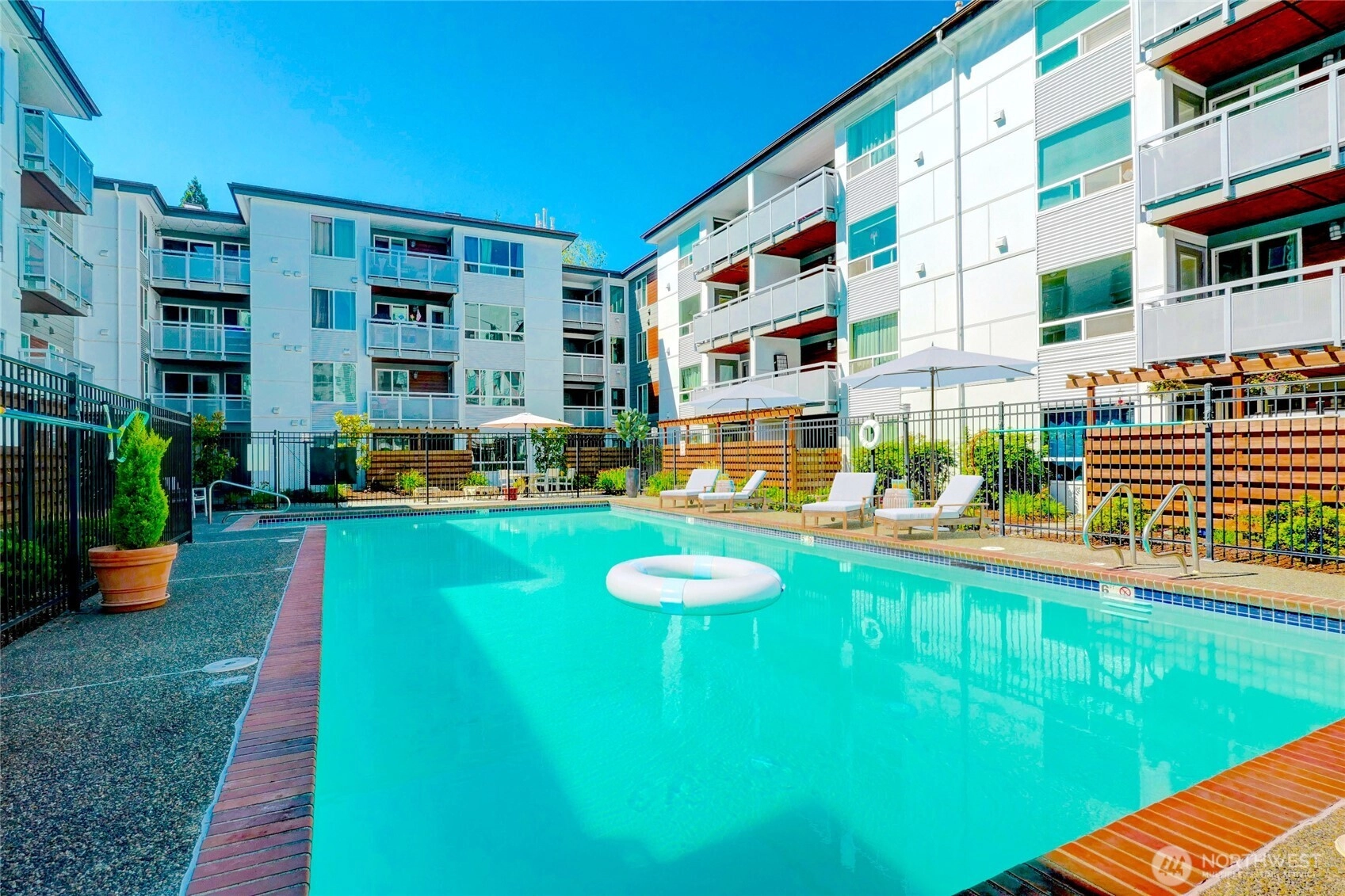 Welcome to your rare, pool-facing retreat in the highly sought-after Northgate Villas! Bright, airy living space filled with natural light from wall-to-wall windows. The updated kitchen features a full-sized island w/bar seating—perfect for entertaining or relaxing at home. The spacious bedroom offers dual full-sized closets, while recent updates include: Fresh interior paint Modern light fixtures Brand-new carpet Newly refinished kitchen cabinets Enjoy resort-style amenities: outdoor pool, sauna, bike storage, secure building access, gated parking, and one deeded parking space. Northgate Light Rail Station, with close proximity to Seattle & all urban amenities—shopping, dining, parks, and entertainment are right at your fingertips.