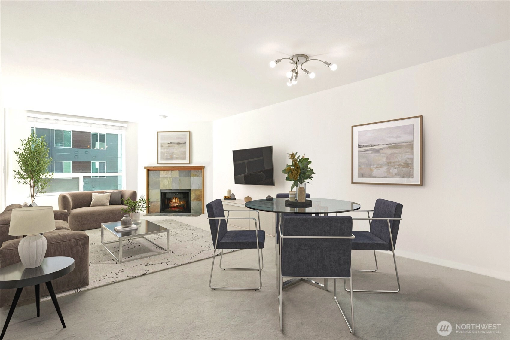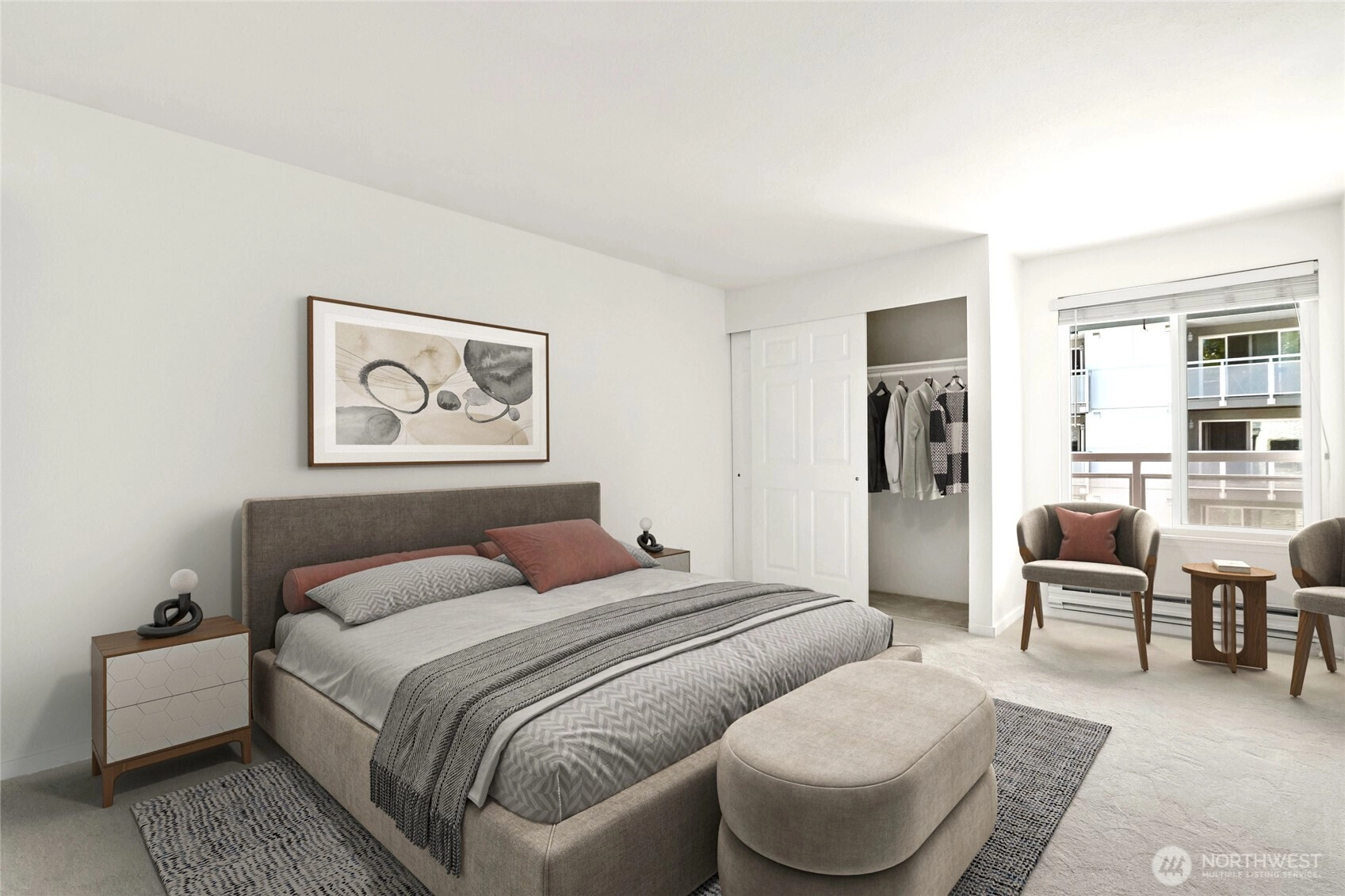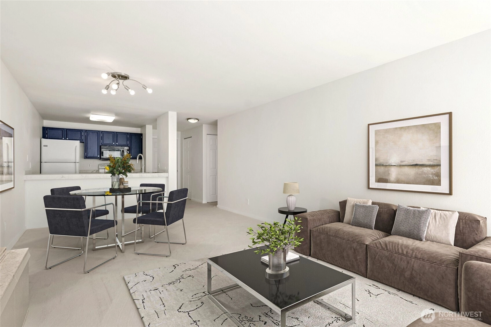Welcome to your rare, pool-facing retreat in the highly sought-after Northgate Villas! Bright, airy living space filled with natural light from wall-to-wall windows. The updated kitchen features a full-sized island w/bar seating—perfect for entertaining or relaxing at home. The spacious bedroom offers dual full-sized closets, while recent updates include: Fresh interior paint Modern light fixtures Brand-new carpet Newly refinished kitchen cabinets Enjoy resort-style amenities: outdoor pool, sauna, bike storage, secure building access, gated parking, and one deeded parking space. Northgate Light Rail Station, with close proximity to Seattle & all urban amenities—shopping, dining, parks, and entertainment are right at your fingertips.
