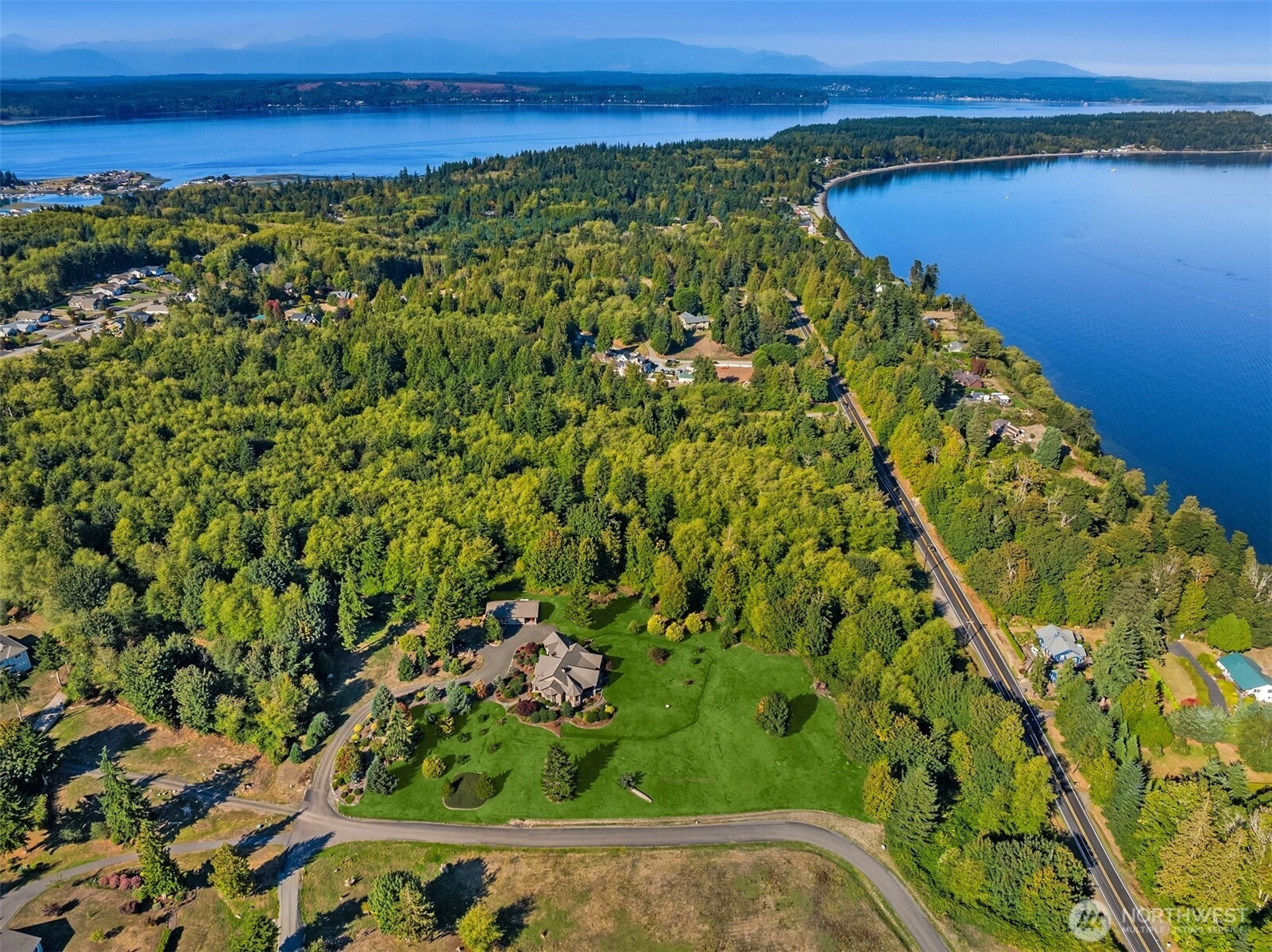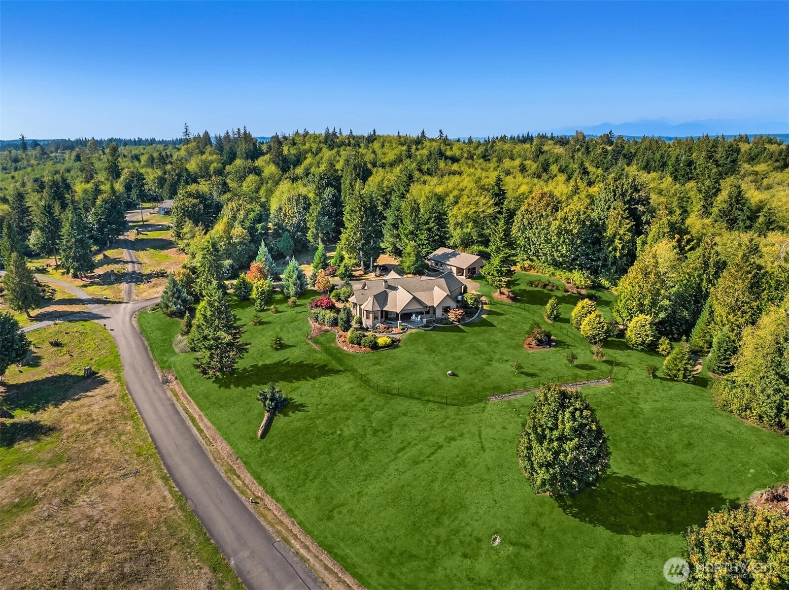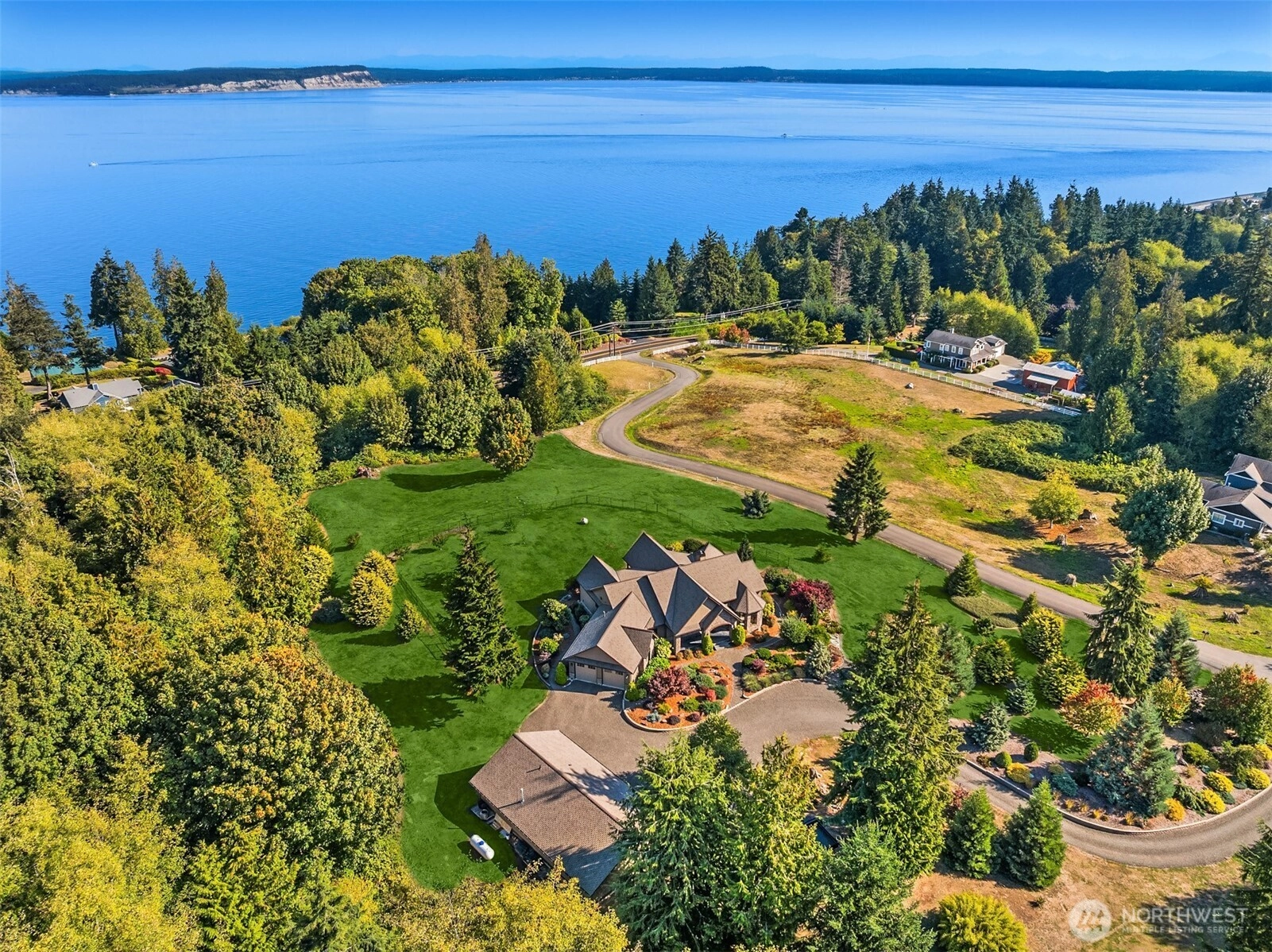 Sweeping Admiralty views and a legacy lifestyle home on 5.26 lush, rolling acres. Perched above the coveted community of Hansville: stroll the sugar sand beaches, hike forest trails, watch the ships go by! The trifecta of luxury, privacy and tranquility. Every detail in this stunning home has been executed with unmatched precision. Rich, handcrafted cabinetry and millwork, soaring ceilings, heated concrete floors and a huge covered view patio. One-level, 2400+ sq ft open concept design. Two view bedrooms with custom en-suite baths and a den/3rd br suite. Attached oversized 2-car garage AND a 1,200 sq ft. heated shop/gar. with a ¾ bath and carport – perfect for artist studio space or car collectors. Boat/RV pkg/ No HOA! Easy Seattle access.