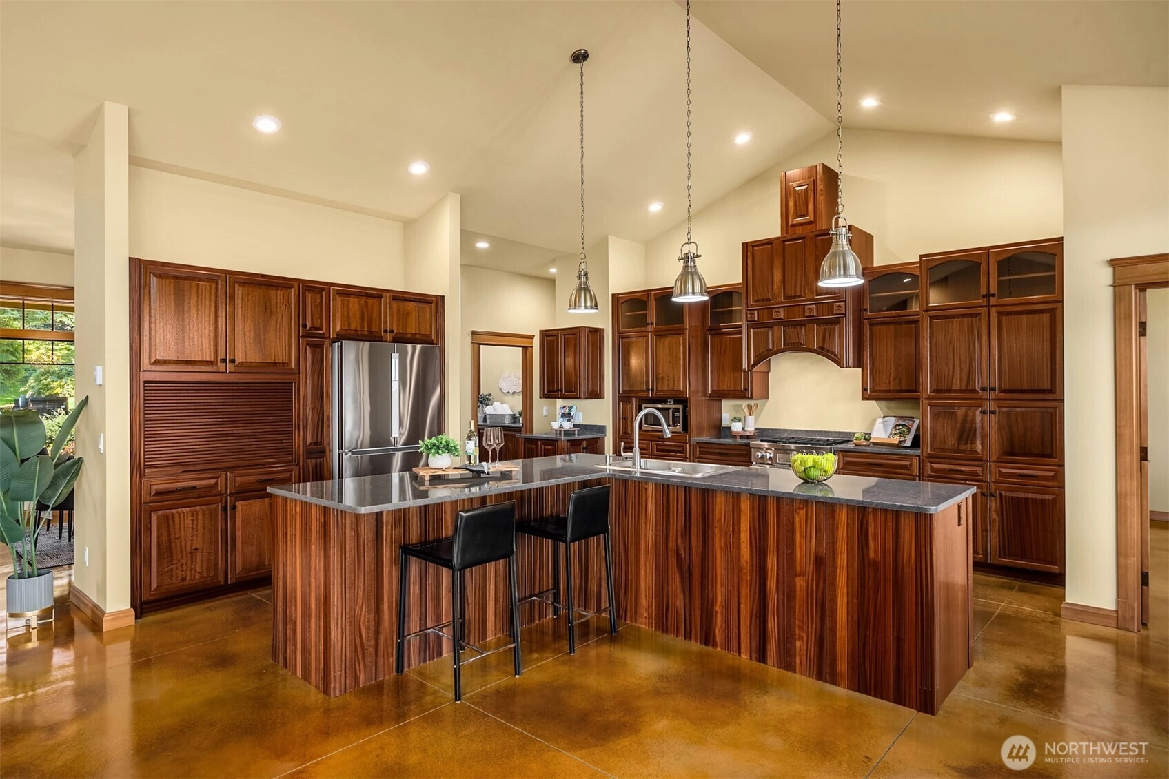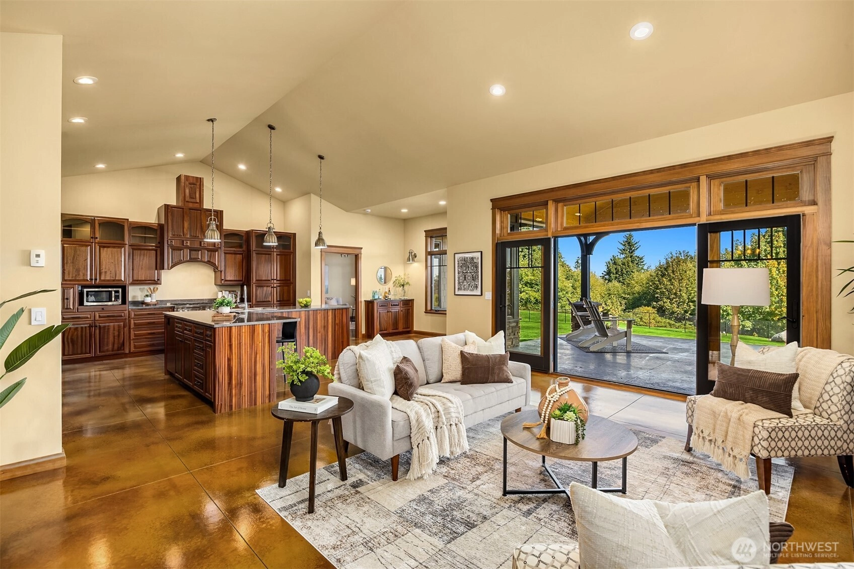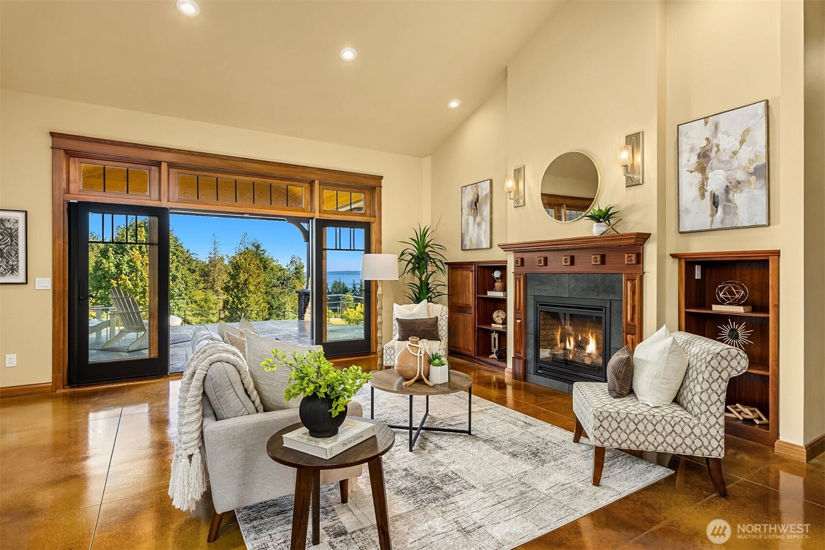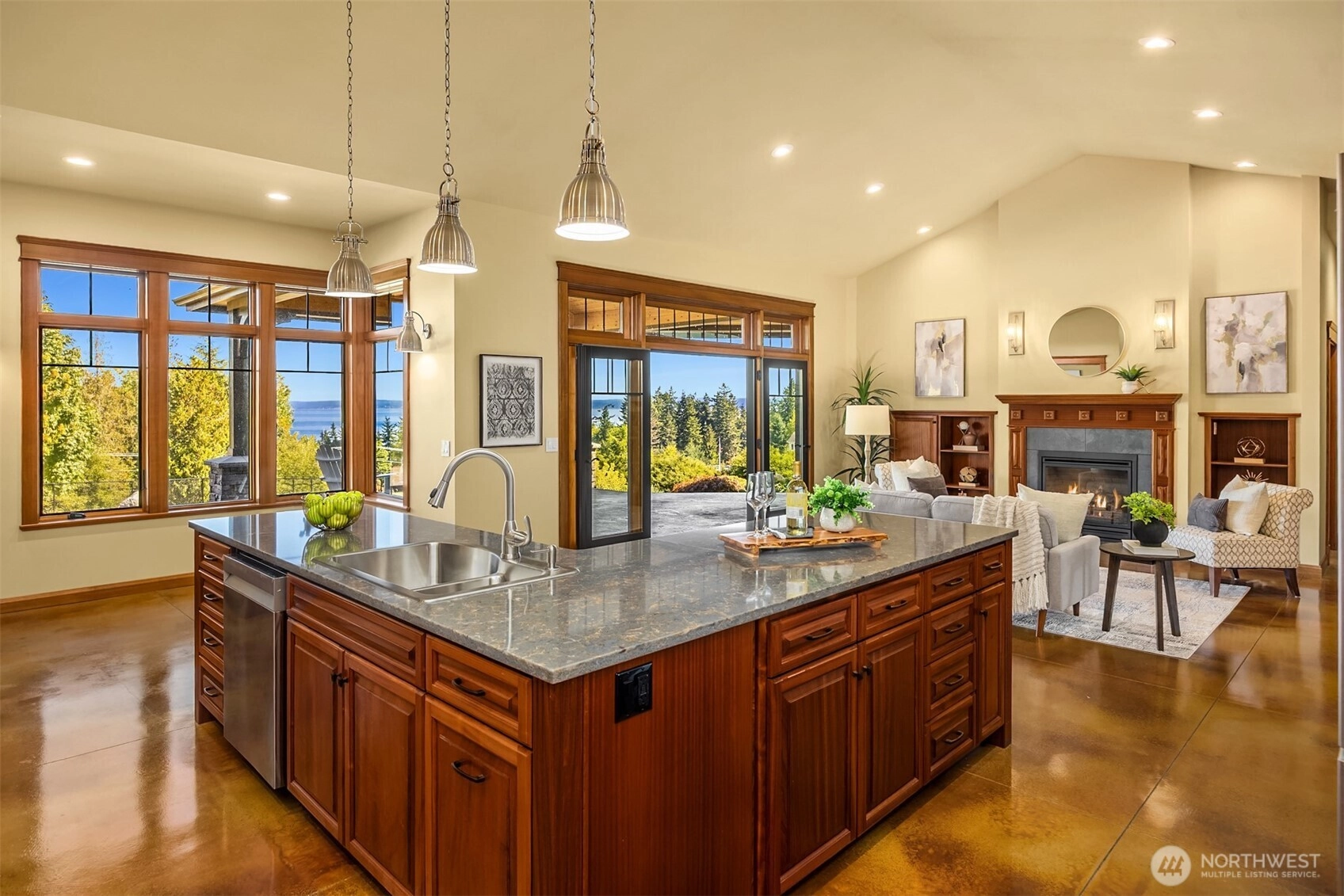 Sweeping Admiralty views and a legacy lifestyle home on 5.26 lush, rolling acres. Perched above the coveted community of Hansville: stroll the sugar sand beaches, hike forest trails, watch the ships go by! The trifecta of luxury, privacy and tranquility. Every detail in this stunning home has been executed with unmatched precision. Rich, handcrafted cabinetry and millwork, soaring ceilings, heated concrete floors and a huge covered view patio. One-level, 2400+ sq ft open concept design. Two view bedrooms with custom en-suite baths and a den/3rd br suite. Attached oversized 2-car garage AND a 1,200 sq ft. heated shop/gar. with a ¾ bath and carport – perfect for artist studio space or car collectors. Boat/RV pkg/ No HOA! Easy Seattle access.