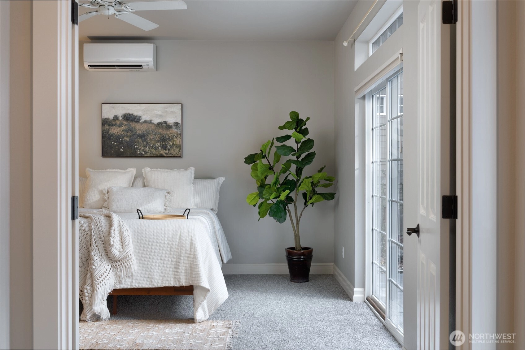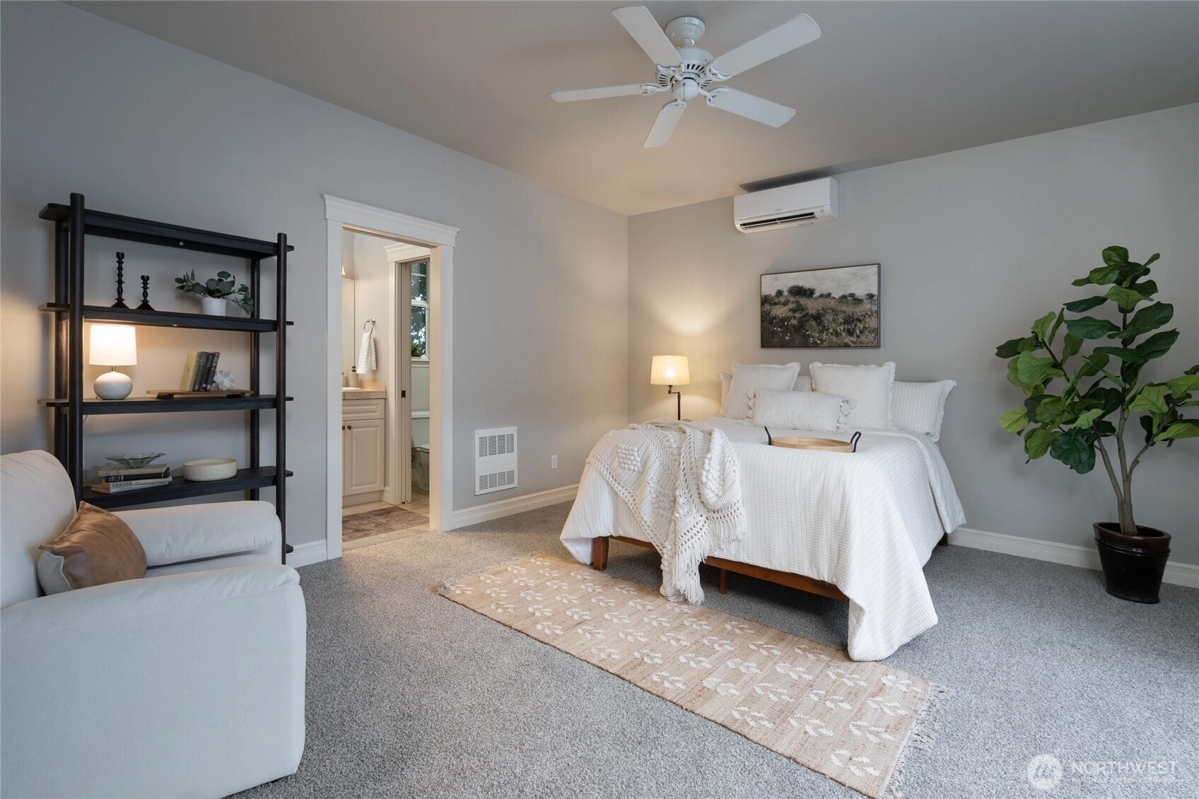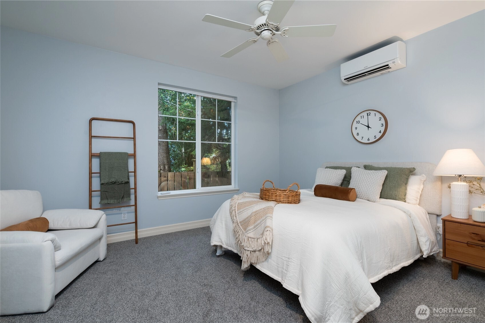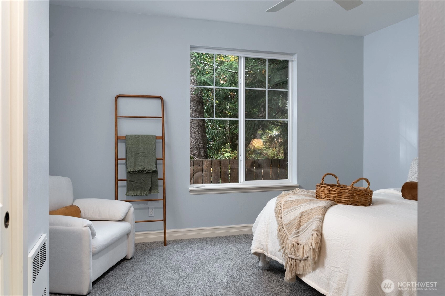 2216 35th Court is a slice of privacy in a picturesque neighborhood - long private driveway w 2 car garage when you drive in. A fenced courtyard w mature landscaping & craftsman entry greet you. As you walk in the front door you’ll find the first bedroom behind french doors w large build in bookcases. Formal living room w double sided gas fireplace & views out to the surrounding green space make it feel like you’re living in the trees. Down the grand hallway you’ll find access to the courtyard, formal dining area, kitchen w eating space & pantry. Oversized primary suite w access to courtyard & walk in closet w custom built-ins. Final bedroom could live as a second primary with full ensuite. Mini-splits, new roof & fresh paint throughout!