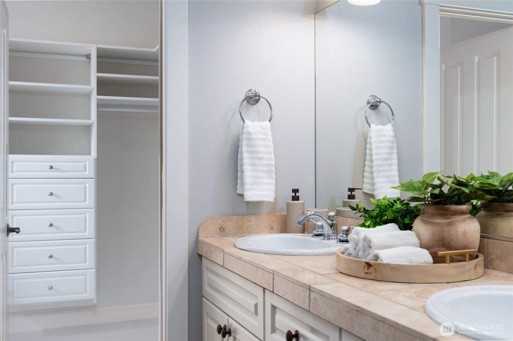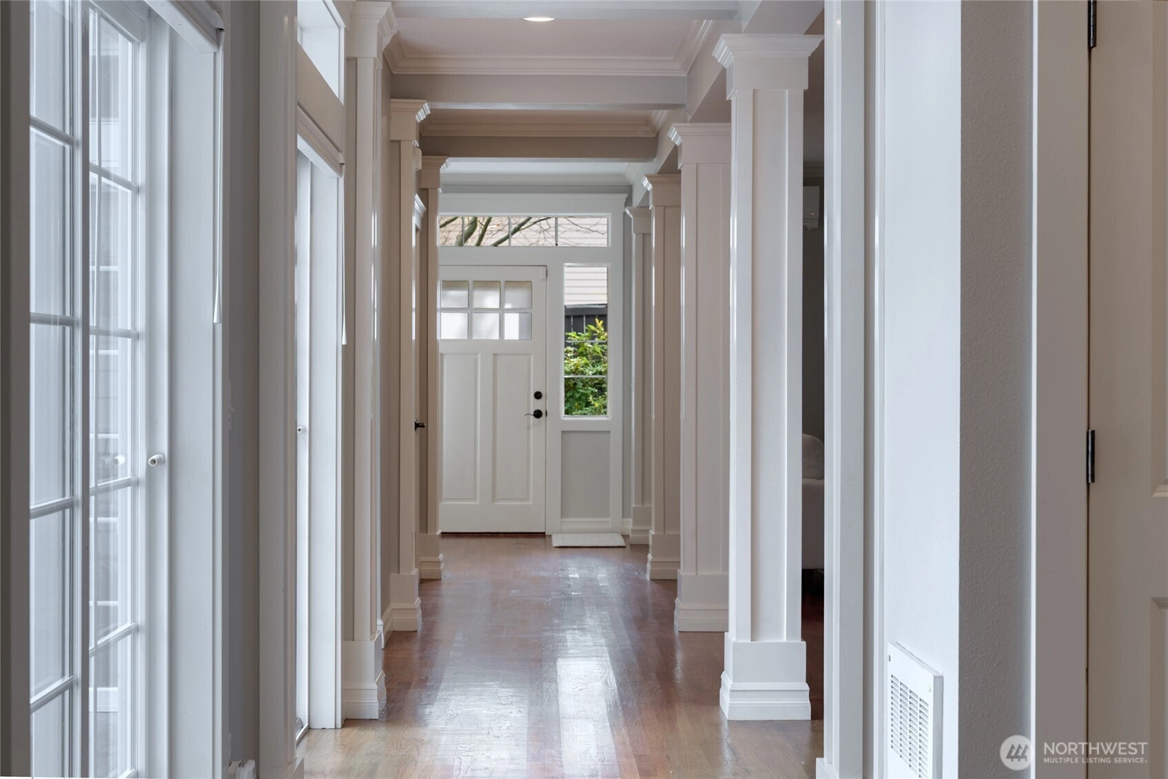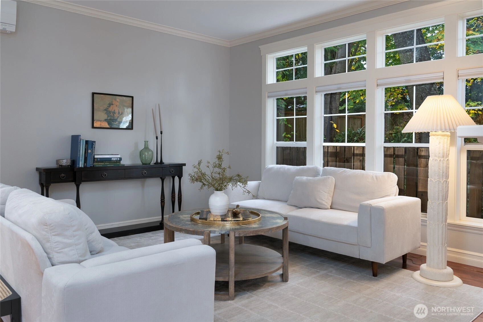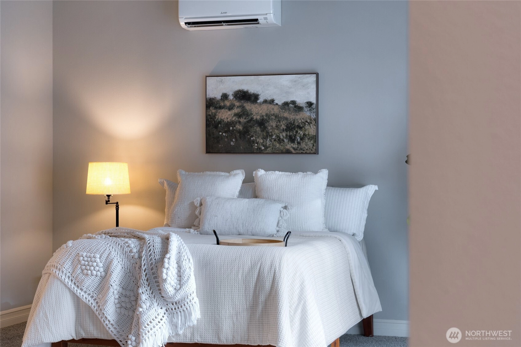 2216 35th Court is a slice of privacy in a picturesque neighborhood - long private driveway w 2 car garage when you drive in. A fenced courtyard w mature landscaping & craftsman entry greet you. As you walk in the front door you’ll find the first bedroom behind french doors w large build in bookcases. Formal living room w double sided gas fireplace & views out to the surrounding green space make it feel like you’re living in the trees. Down the grand hallway you’ll find access to the courtyard, formal dining area, kitchen w eating space & pantry. Oversized primary suite w access to courtyard & walk in closet w custom built-ins. Final bedroom could live as a second primary with full ensuite. Mini-splits, new roof & fresh paint throughout!