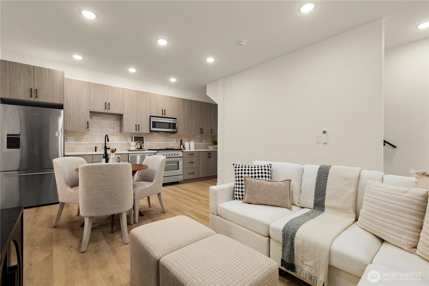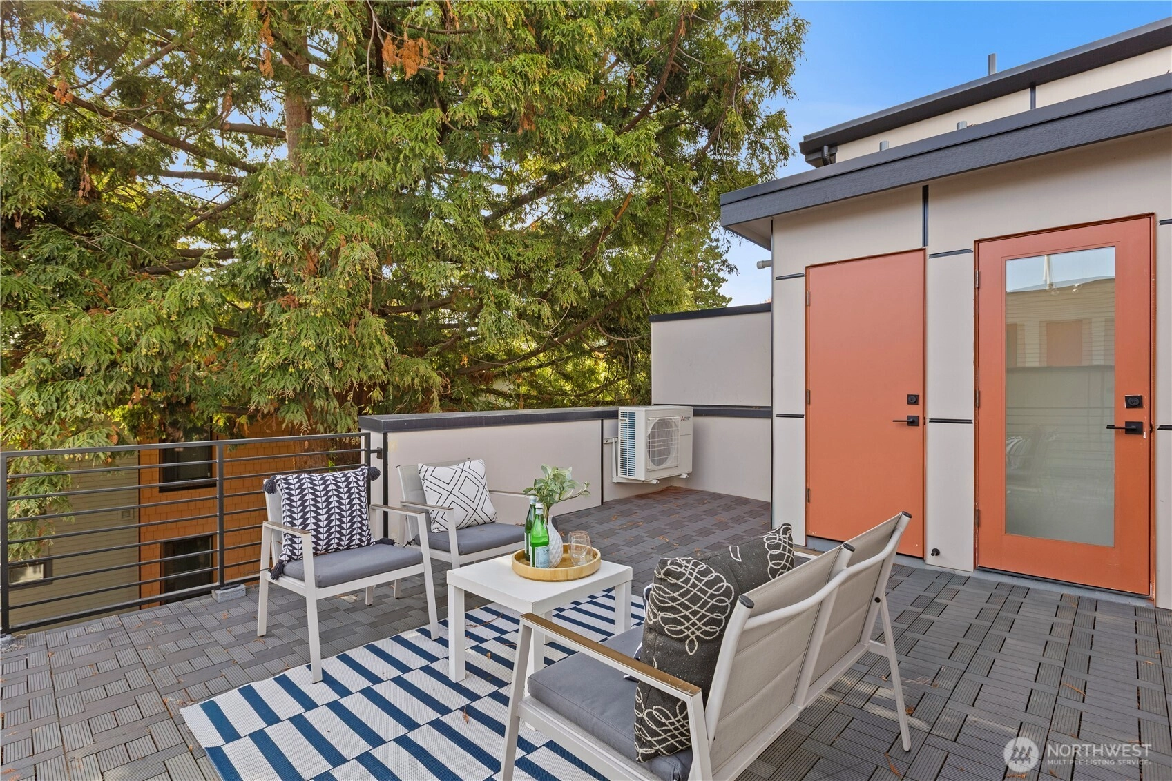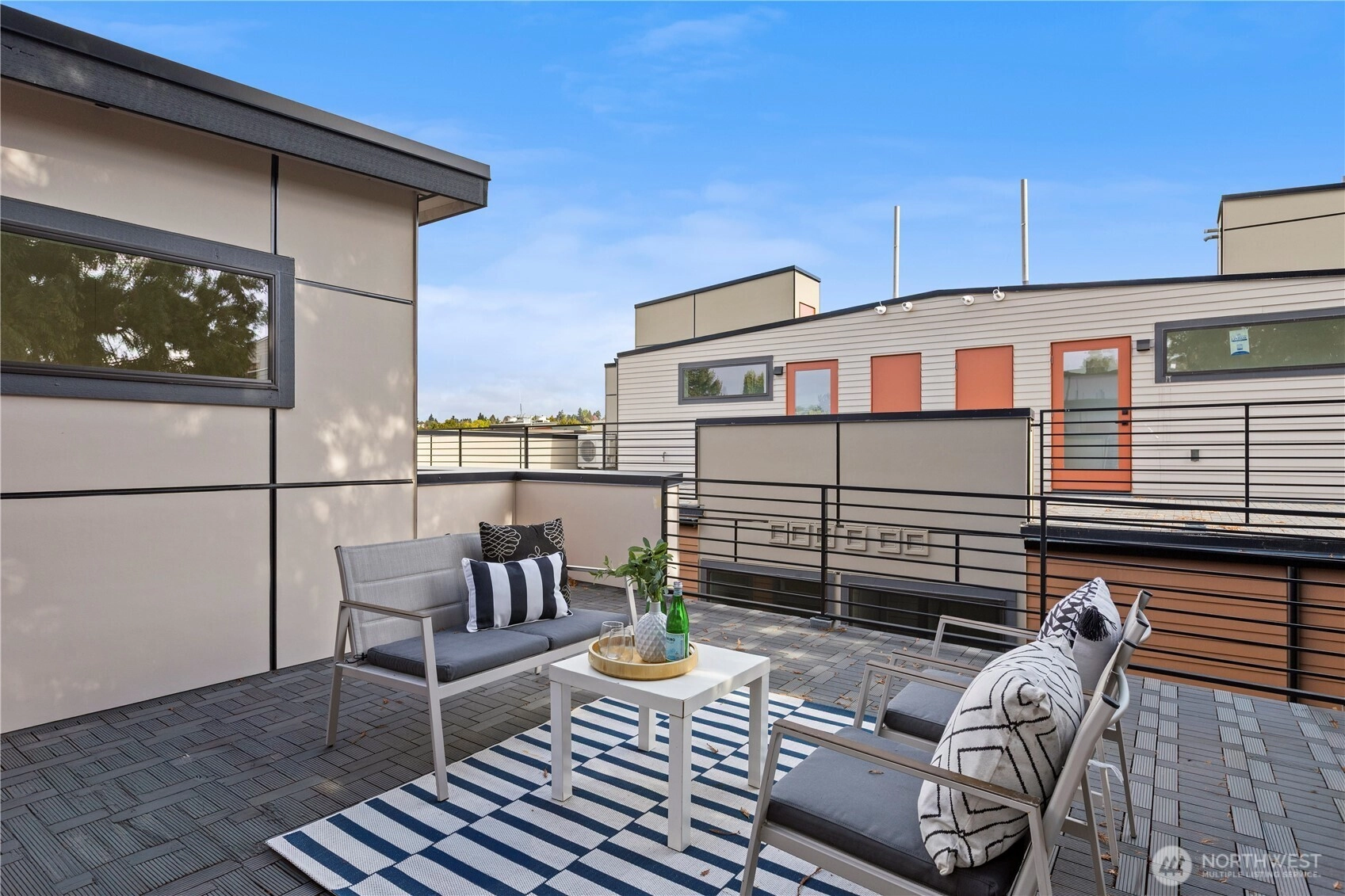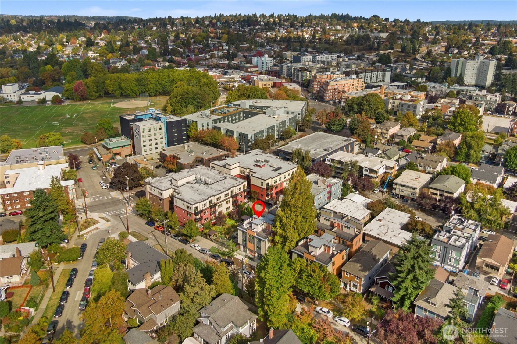 Rare opportunity steps from Seattle’s iconic Green Lake shoreline. Enjoy the best of both worlds: a peaceful residential enclave near bustling cafés, boutique shops & scenic trails. Nestled on a quiet, tree-lined street, this corner home feat. a luminous open concept centered around a chef’s kitchen w/Fisher & Paykel appliances, custom cabinetry & quartz counters. Walls of glass fill the home w/light. Top floor primary suite w/generous closet & luxe bath. Second bedroom w/bath on upper floor. Full-size rooftop deck equipped w/gas, electric & water hookups! Moments to the Roosevelt corridor & Light Rail - ideal for both living & long-term investment! NOVEMBER ONLY— $20,000 bonus + 1% credit w/preferred lender for closing costs or lower rate!