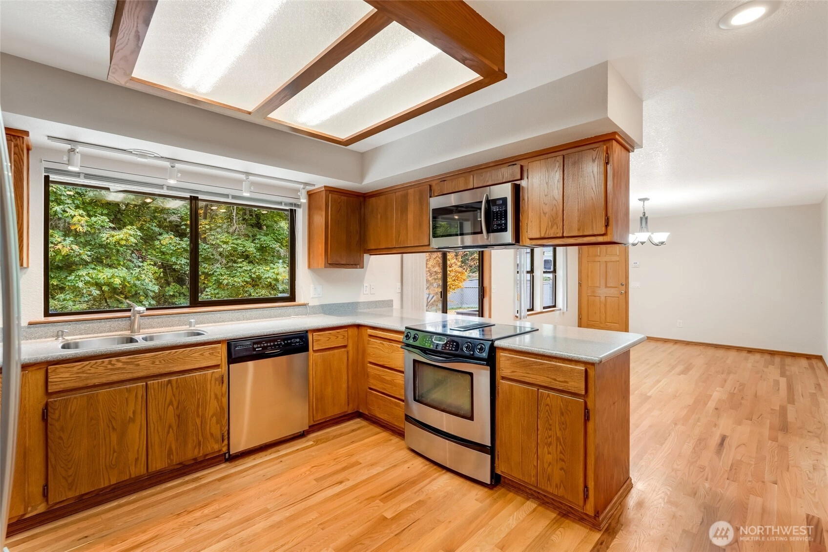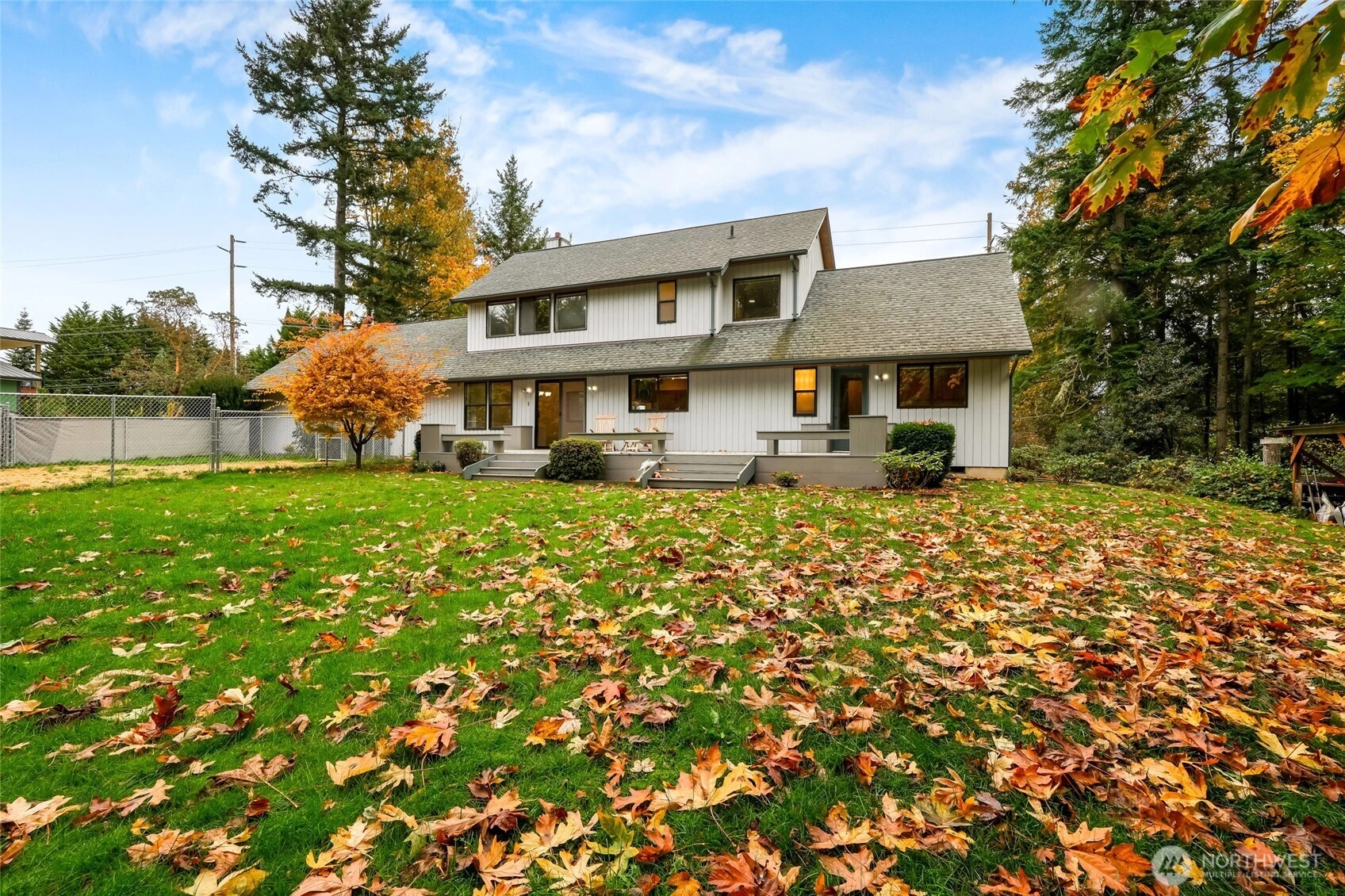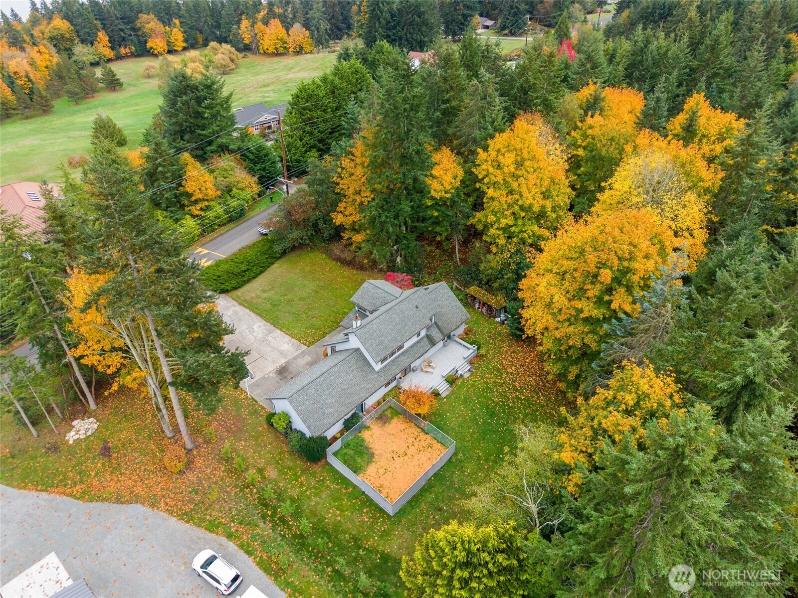GORGEOUS Acreage home on 2.5+ wooded acres w/walking trails in a beautiful neighborhood of estate-homes. 3 bed, 2 bath, plus bonus room. Grand entrance w/covered entry patio leads into living room w/vaulted ceilings, skylights, hardwood floors and wood-burning FP. Kitchen has Corian solid-counters, custom cabinets, updated appliances & sink w/view of backyard. Entertain on your composite deck with built-in planters, wood shed and fenced pet-area. Steps to Park-Like PRIVATE backyard w/ trails. Primary suite w/ covered deck, jetted tub, tiled shower. Bonus room for 2nd entertaining area. Large 3-bay finished garage plus massive paved-parking. Back-up Generator, Room for Shop, etc. Just Listed, Welcome Home to your Great Decision!