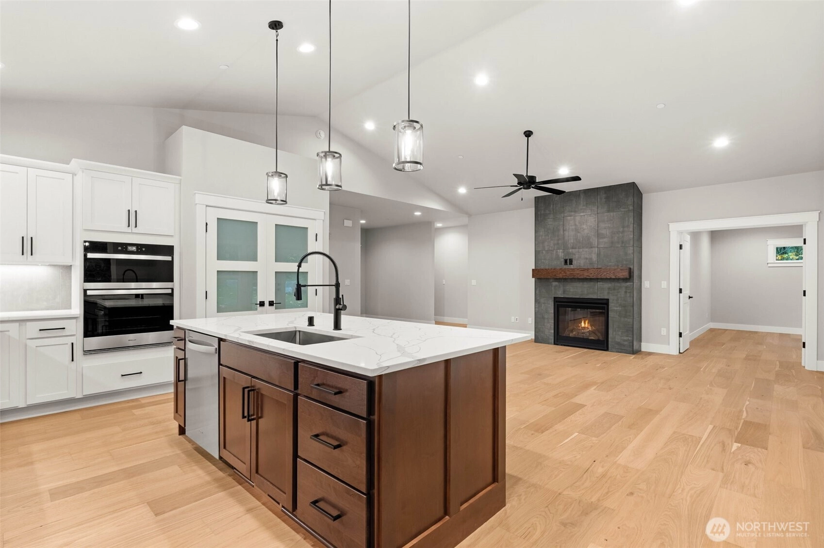 Brand new 2462 sq ft open concept rambler built by Eagle Homes on 5.10 acres very peaceful and unique setting. Home features 3 bedrooms 2.5 bath, den/office, plus large bonus room and 3 car garage. Vaulted ceilings, gas fireplace, forced air heating w/heat pump, fully wrapped windows, great lighting throughout, lots of storage, painted mill work, hard wood floors and tile floors, large laundry room w/sink and cabinets. Gourmet kitchen w/quartz counter tops, SS appliances including a 36" gas professional range plus built in electric wall oven, cabinet lighting. Fully landscaped yard. Large covered patio makes enjoying the outdoors possible all year! Shared well and gravity septic. Move in ready 100% completed. Lots of room to build a shop.