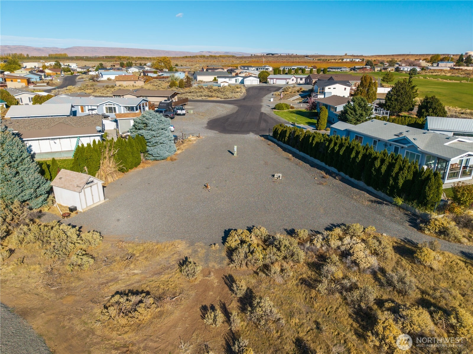 Amazing opportunity to build in Desert Aire on a level lot directly on the 4th fairway, nestled into a quiet cul-de-sac. Mountain backdrop plus views of the 4th & 6th fairways as well. Water is in, power is in, septic is installed, fiber optics ran into the shed—huge value & time savings. Residential zoning, manufactured homes are OK, and installed gravity septic is approved for a 3 bedroom design. Create your custom home, investment, or your full-time dream retreat near water, sun & recreation! Enjoy all the amenities of Desert Aire including Golf course, airfield, community pool and park, tennis courts, gym, walking trails & boat launch! 300+ Days of sunshine a year!