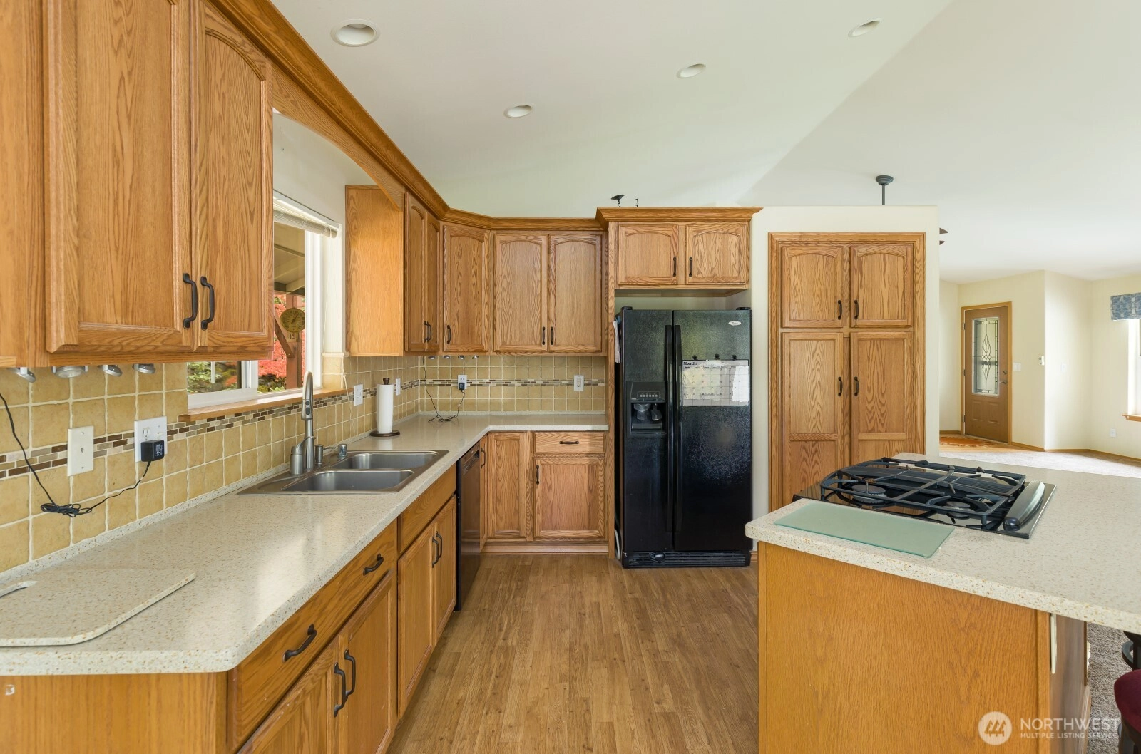 Beautiful, cozy, and private one story in a great location. Stafford built in 1995, well cared for rambler on a spacious 1.03 ac lot. Slightly sloped lot with abundant off street parking for boats or RVs. Nicely designed display style kitchen with upgraded storage, High end vinyl floors, Newer appliances, custom acrylic counters. Vaulted ceiling in kit./liv/dinning rooms, great rm design. Energy efficient AC, 1 yr old Gas Furnace, Regency gas fireplace serviced 9/24, nicely maintained yard space with sprinkler sys., large 3 car garage, 988 S.F., finished and heated, Far left end space is 26.5 ft. deep with a 14 ft. ceiling ht., could accommodate smaller RV. Whole house Sec. Sys., 2 storage sheds in backyard, come see this home.