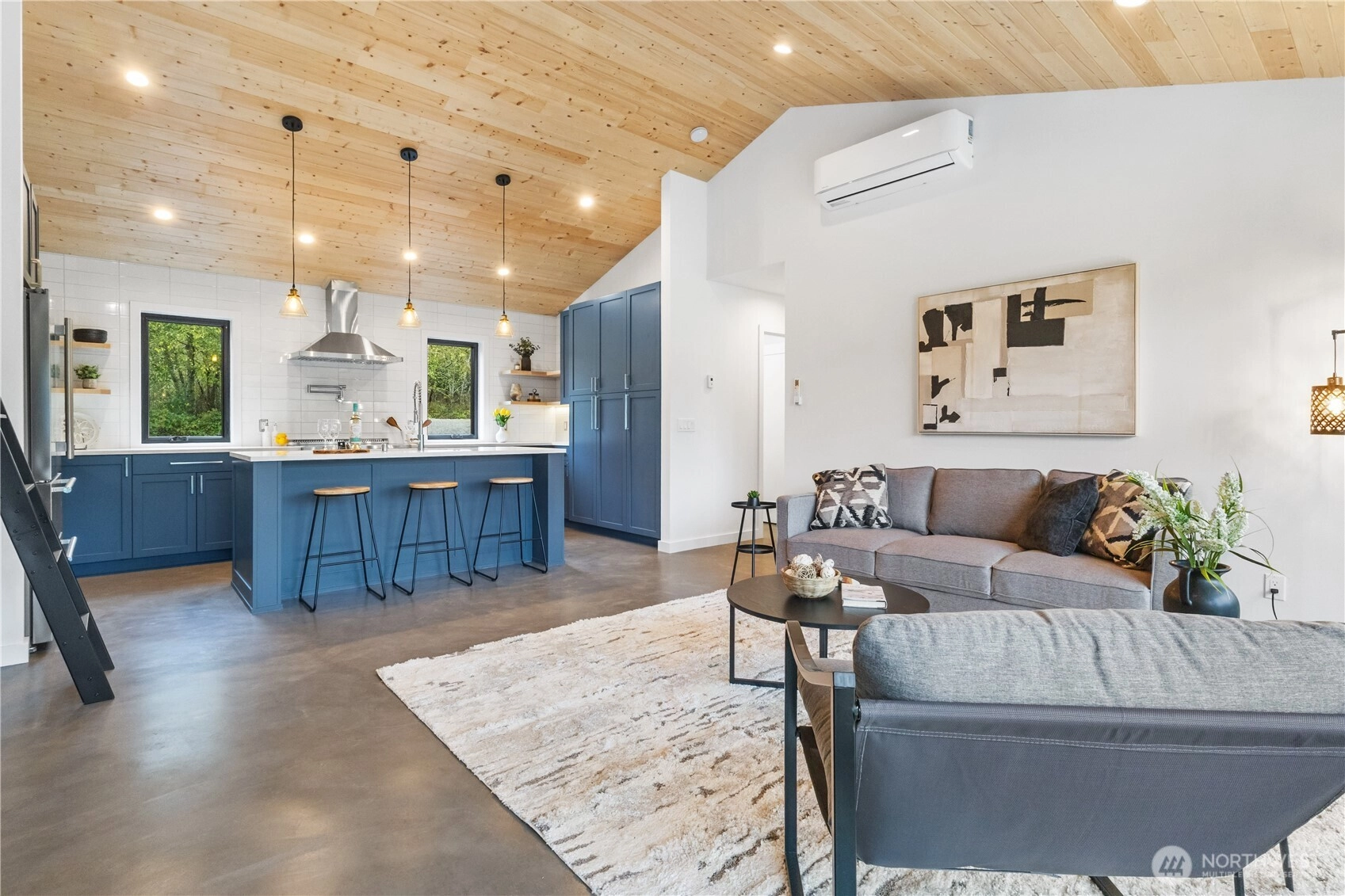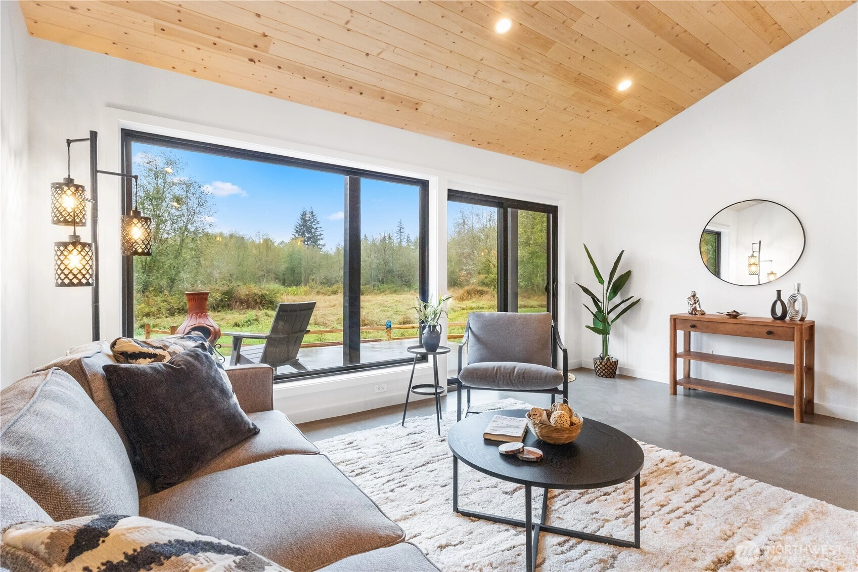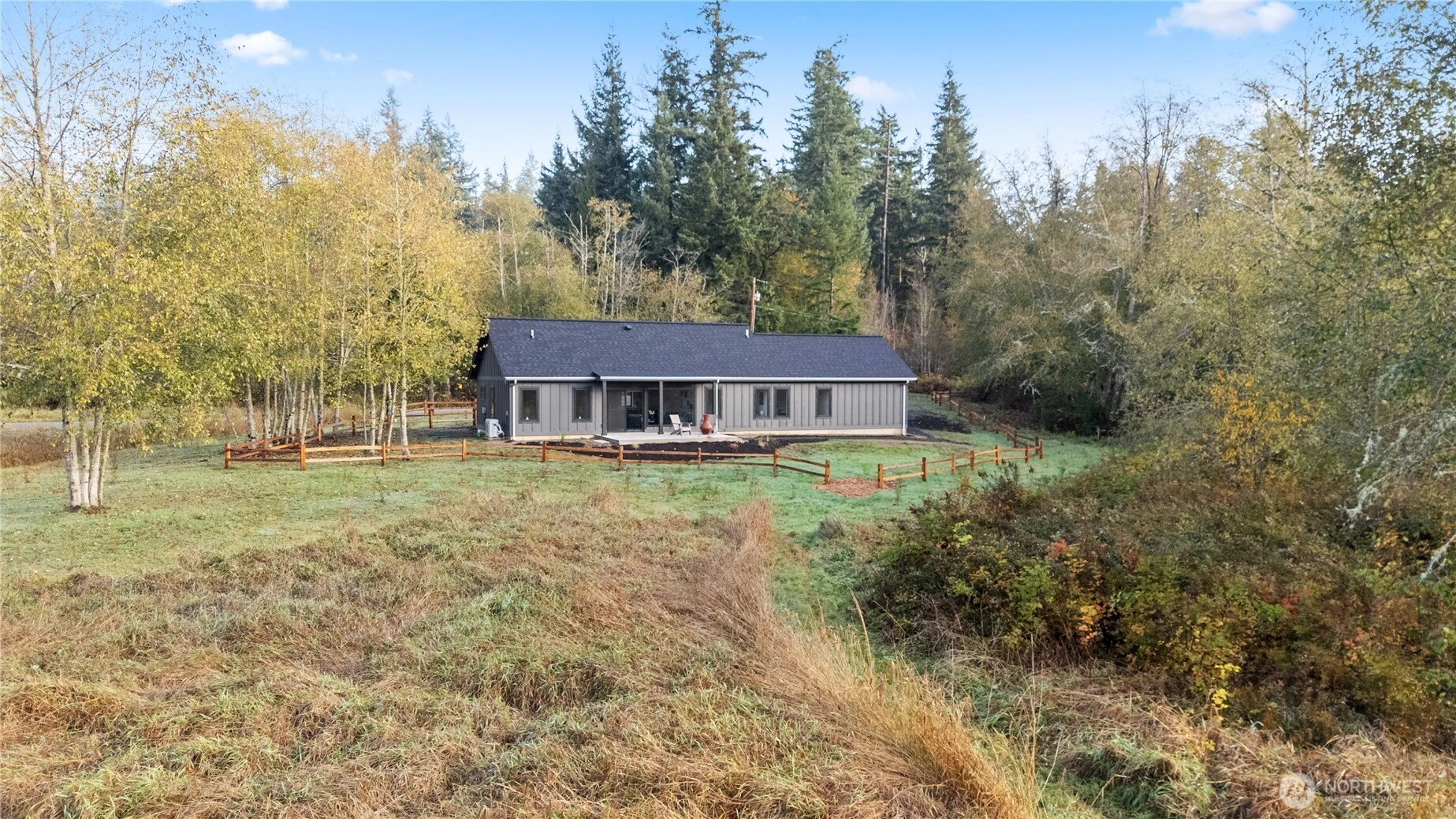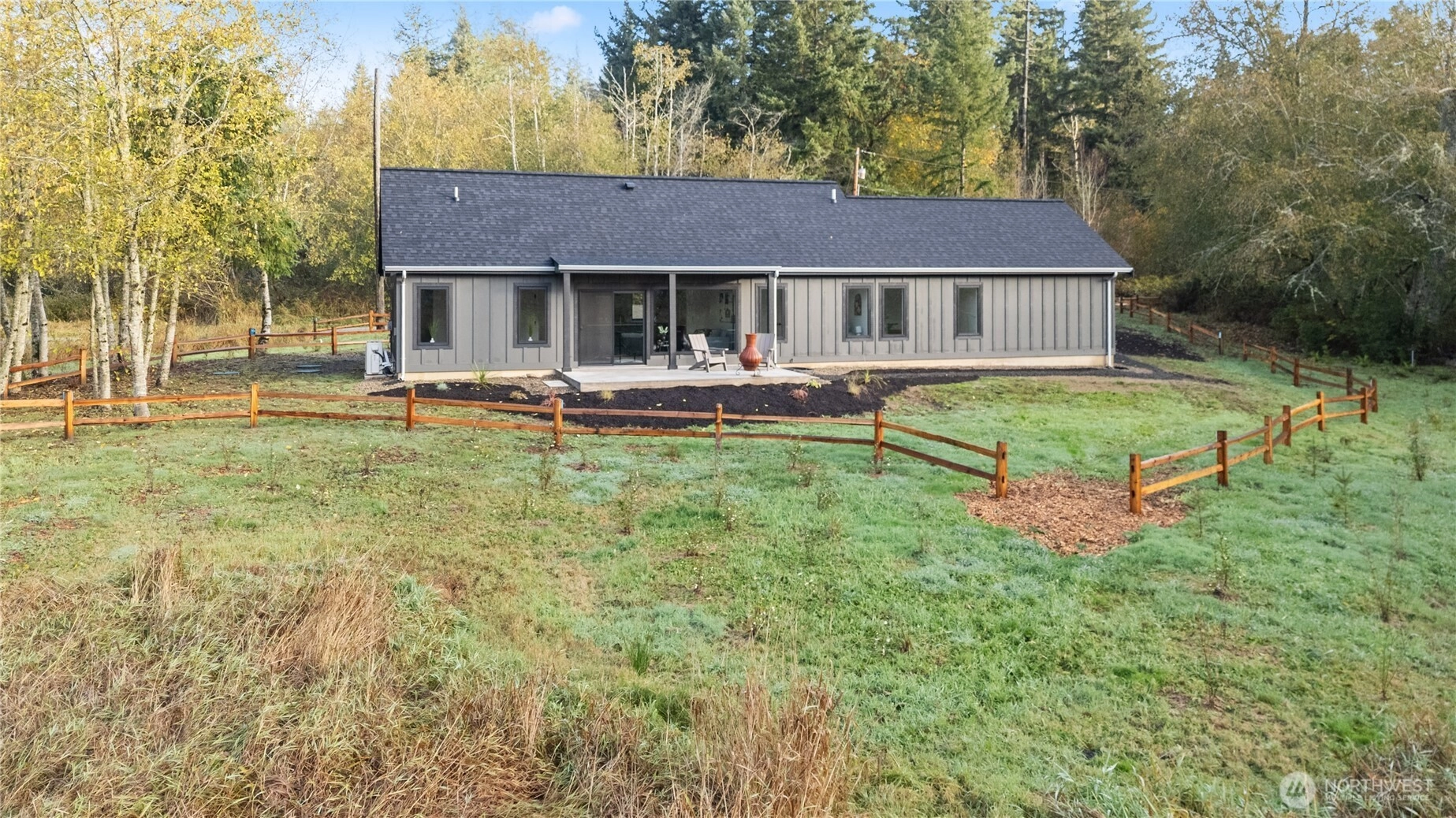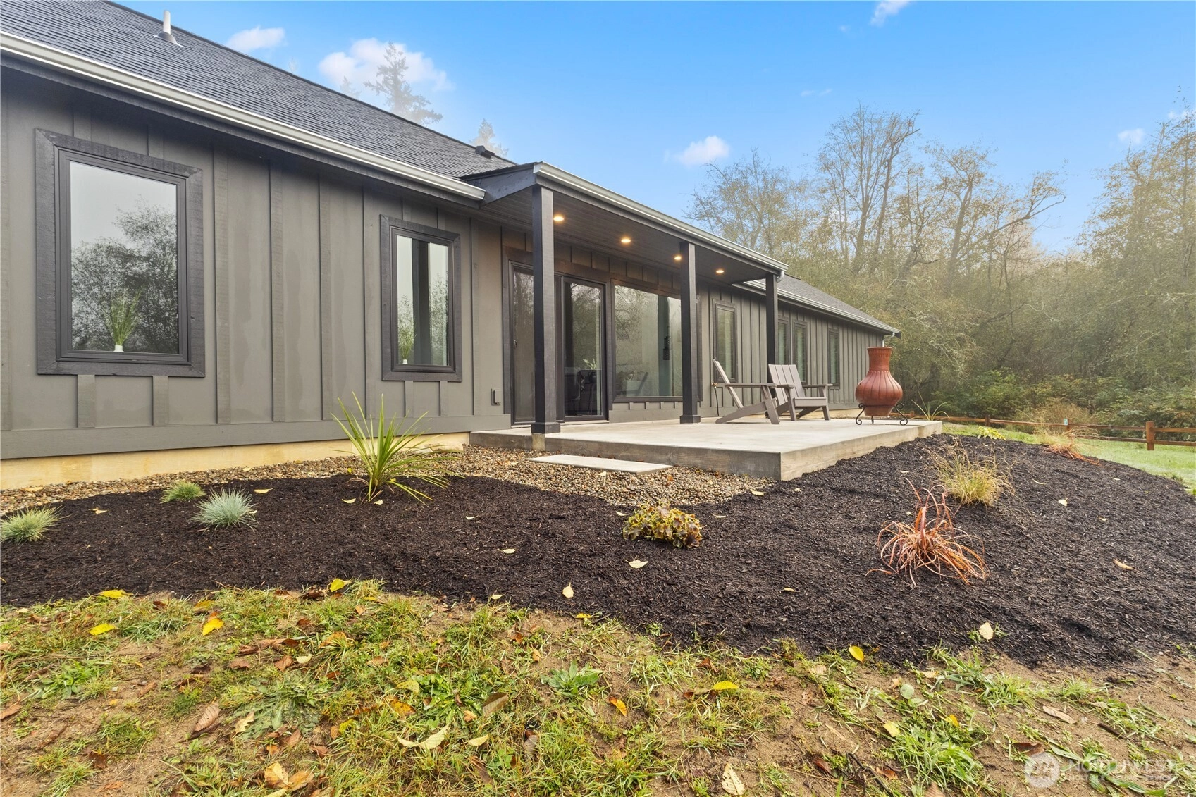 This brand-new, custom home blends luxury and serenity on 2.52 peaceful acres with no HOA and just minutes from Kingston ferries and essentials. Inside, enjoy heated concrete floors, 9-foot ceilings, and a vaulted great room with gorgeous tongue-and-groove detail. The immaculate kitchen features custom cabinetry and premium finishes, including a pot filler above the stove for the aspiring chef. A thoughtful layout separates the primary suite from the additional bedrooms, creating an open, functional flow that lives larger than its size. Enjoy slow mornings framed by custom windows and peaceful sunsets on the back patio overlooking your own private nature preserve. Move-in ready and truly one-of-a-kind.