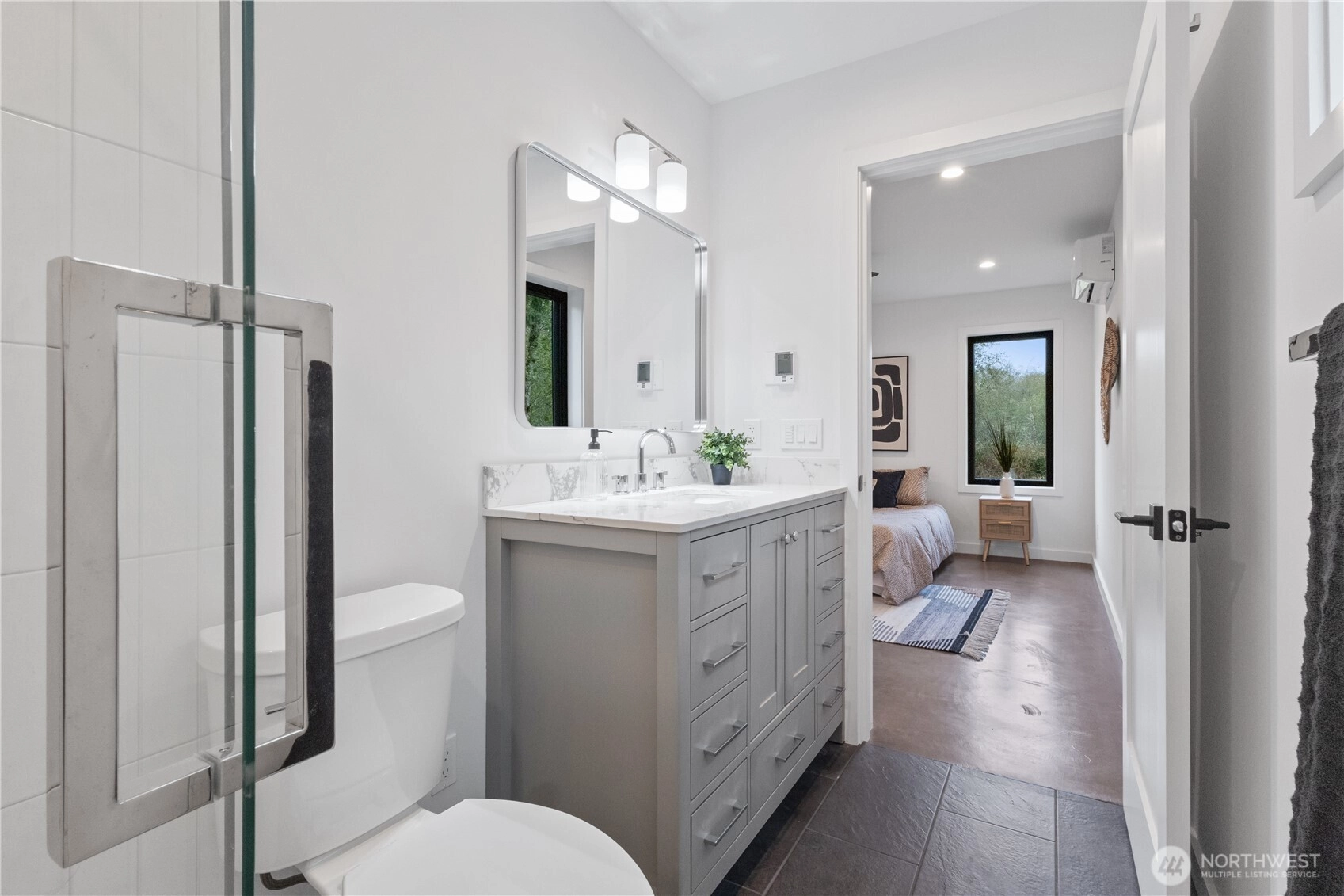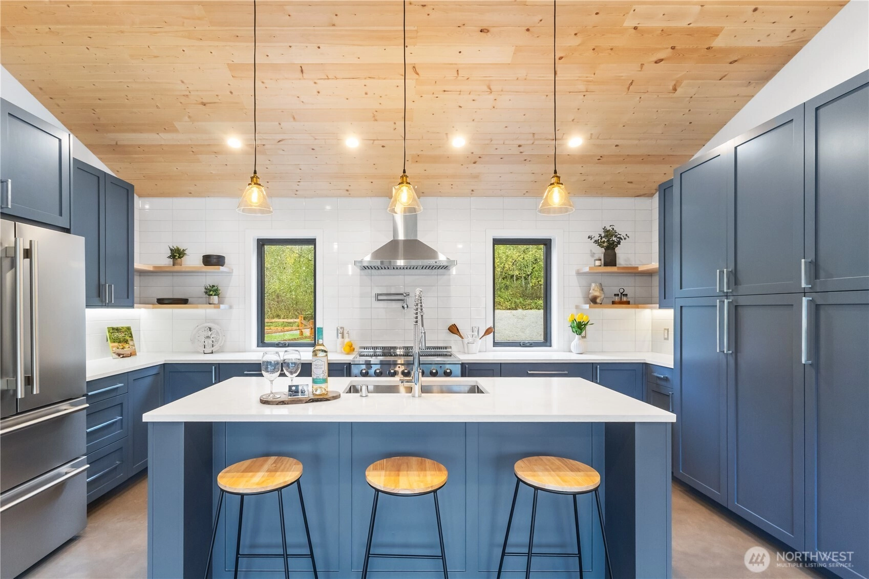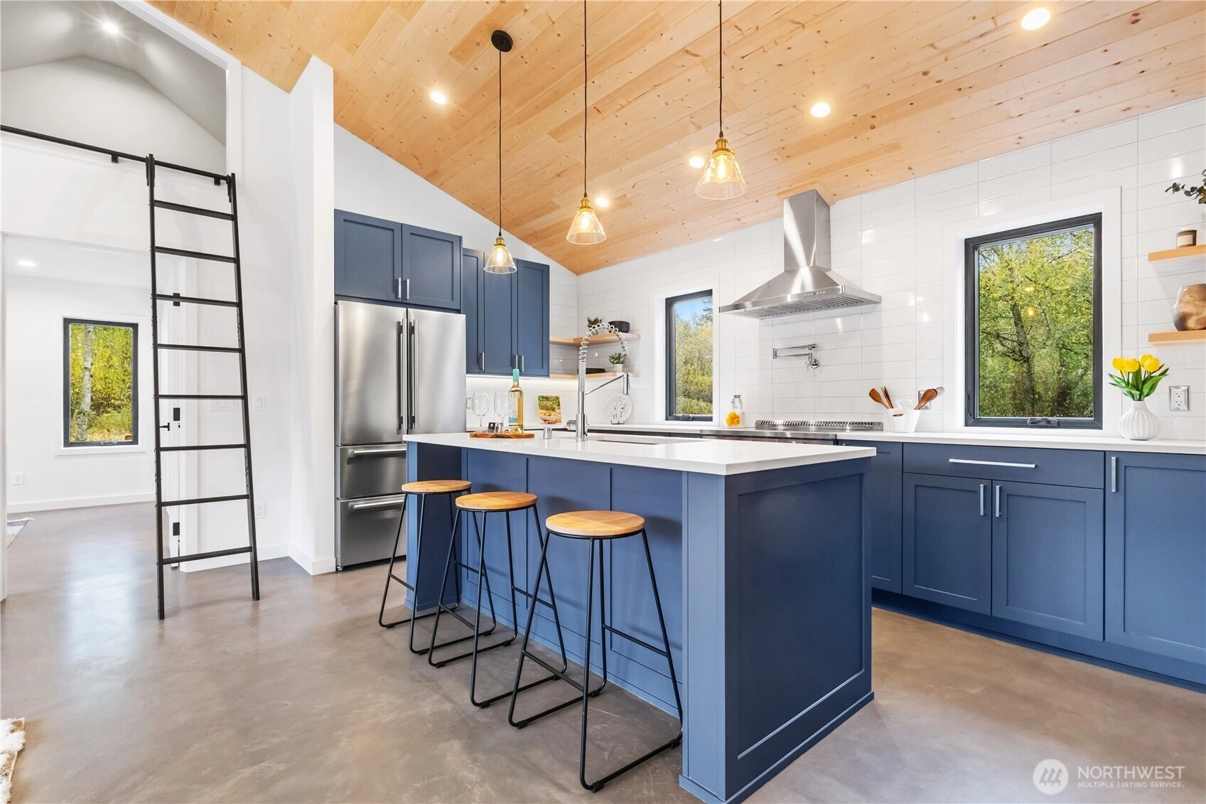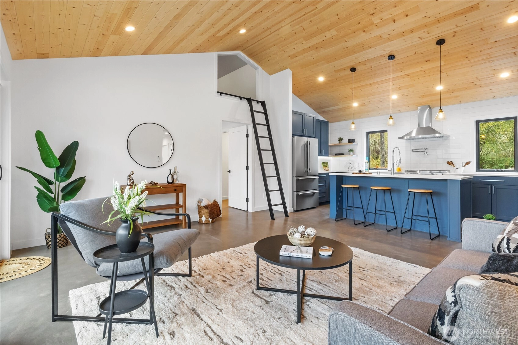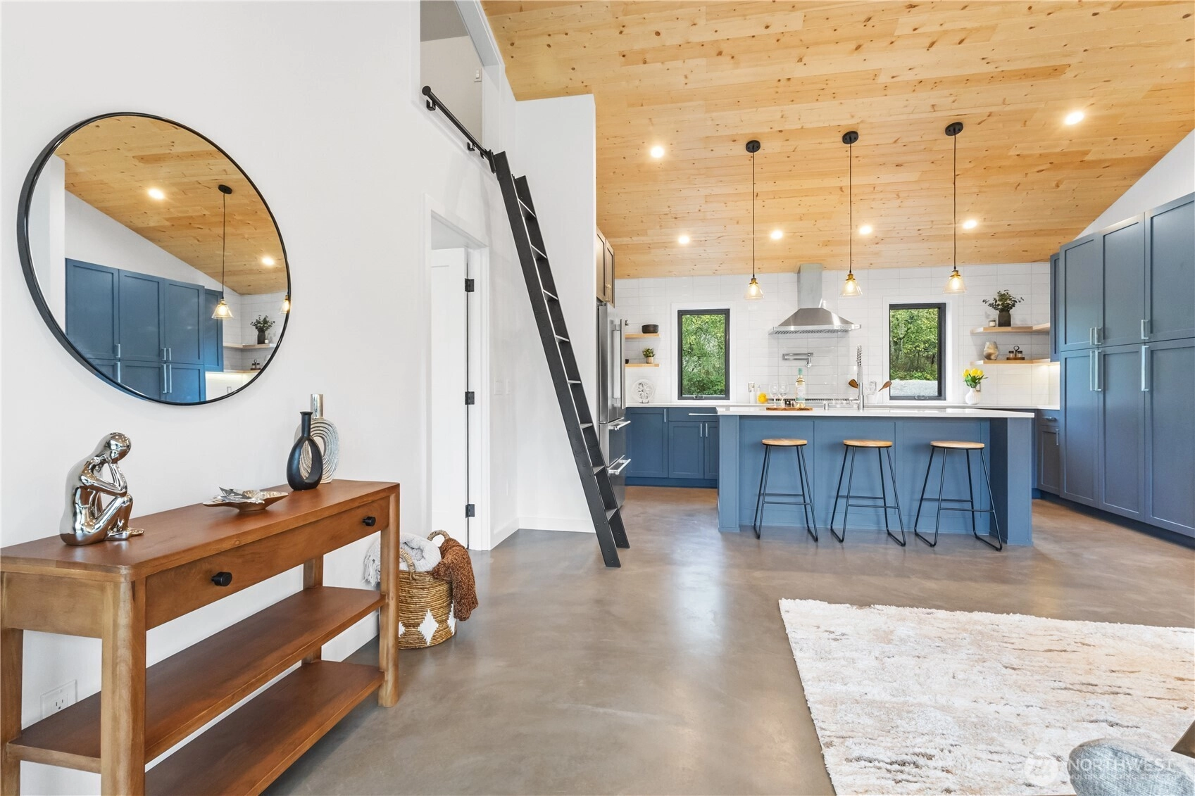This brand-new, custom home blends luxury and serenity on 2.52 peaceful acres with no HOA and just minutes from Kingston ferries and essentials. Inside, enjoy heated concrete floors, 9-foot ceilings, and a vaulted great room with gorgeous tongue-and-groove detail. The immaculate kitchen features custom cabinetry and premium finishes, including a pot filler above the stove for the aspiring chef. A thoughtful layout separates the primary suite from the additional bedrooms, creating an open, functional flow that lives larger than its size. Enjoy slow mornings framed by custom windows and peaceful sunsets on the back patio overlooking your own private nature preserve. Move-in ready and truly one-of-a-kind.