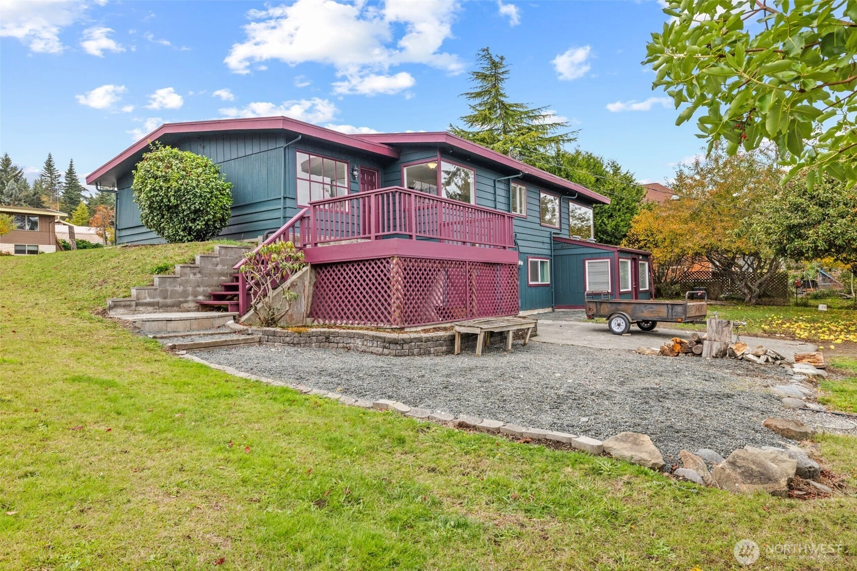 Fantastic opportunity: two living units, on a large lot, with the potential to subdivide. Interior: upstairs has 2 BR, 1 BA, woodstove, fully equipped kitchen, living room, utility room with washer & dryer, 1 car garage, newer & peekaboo water view! Downstairs, 1 BR, 1 BA, kitchen area living room, bathroom, electric fireplace, washer & dryer hookups, 1 car garage, new flooring & more! Both units on separate meters. Outdoors: extra large lot with the potential to subdivide, storage shed, raised garden beds with great southern exposure, fruit trees (cherry, apple, & plum) & plenty of room for whatever your needs may be. The location convenient & walking distance to the golf course, short drive to downtown, restaurants & other attractions