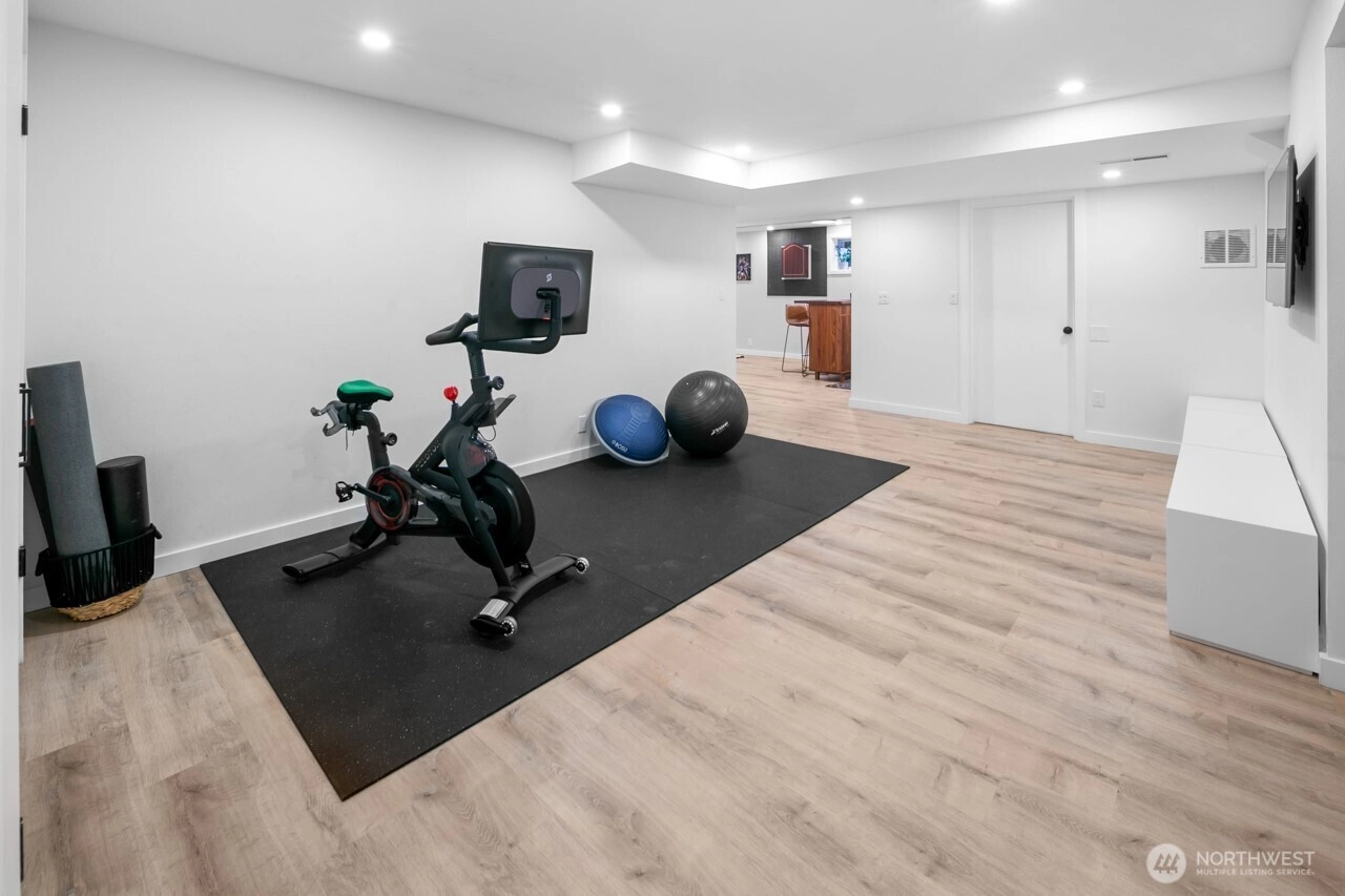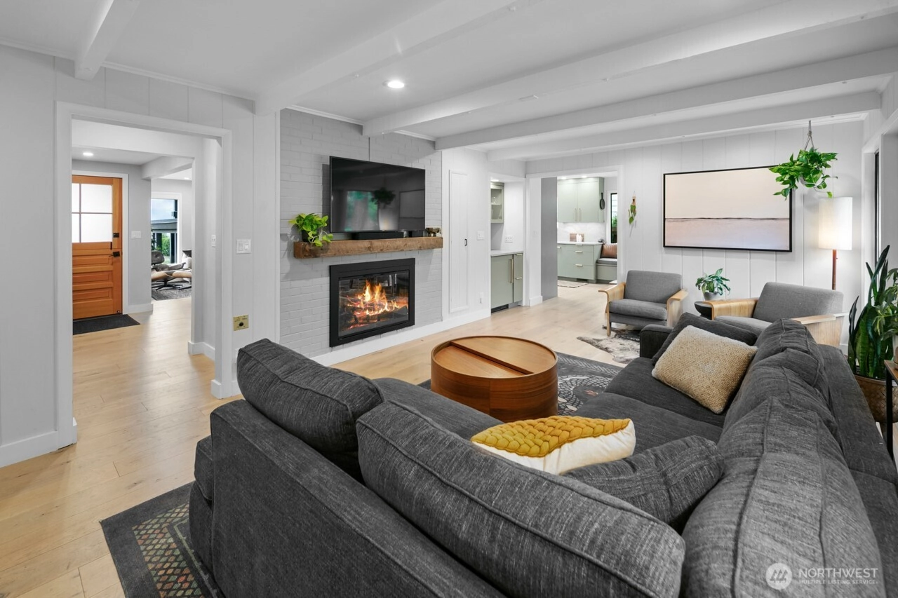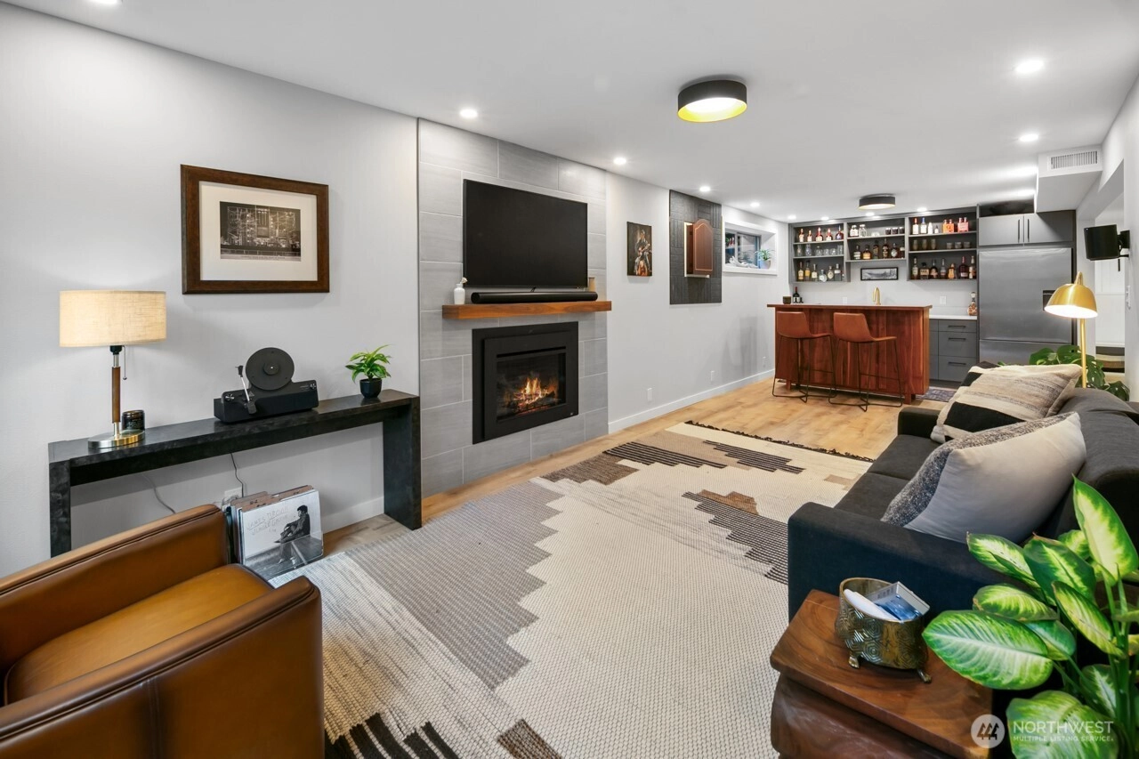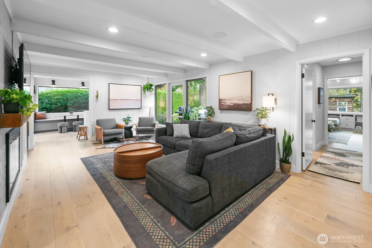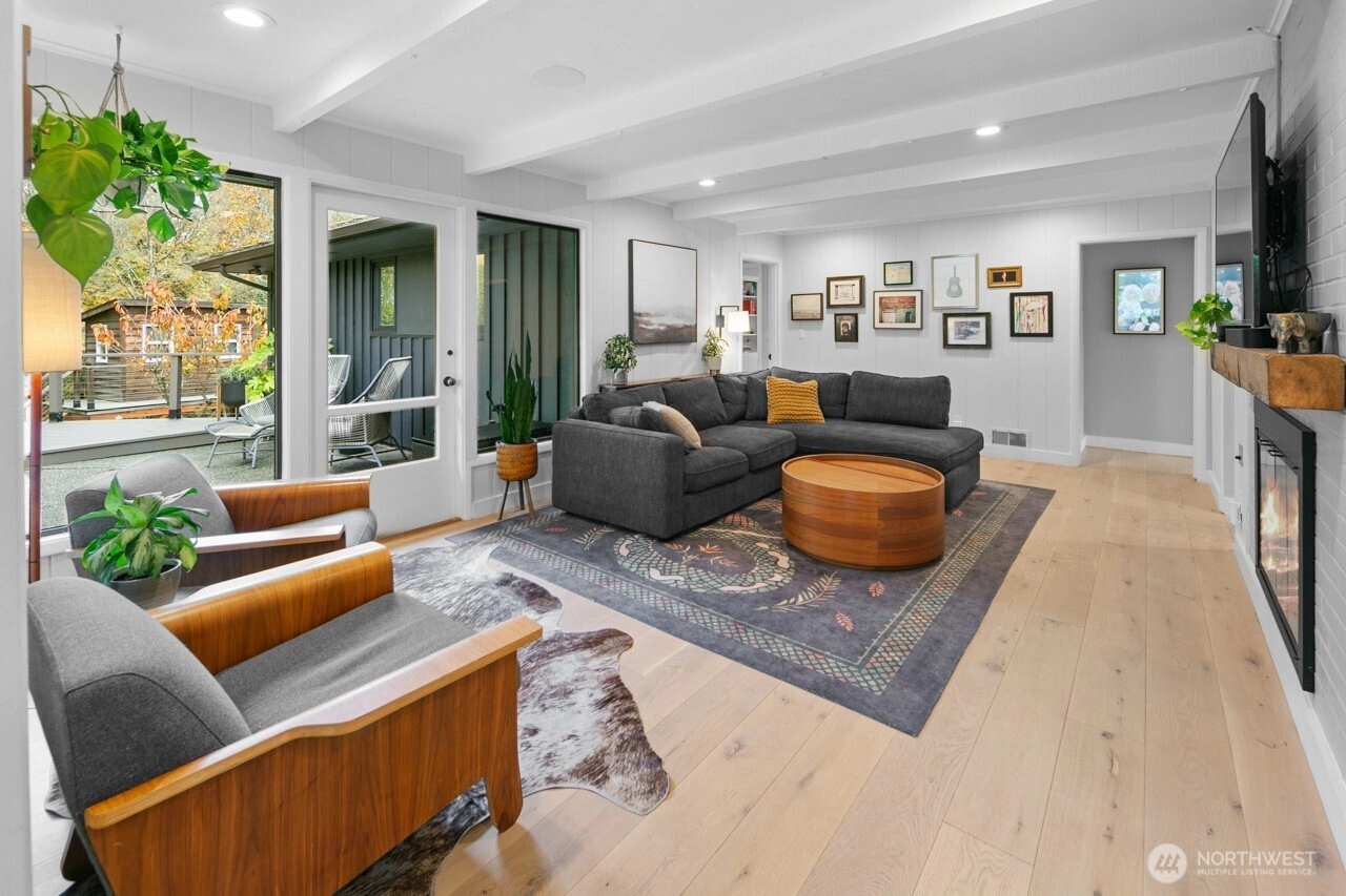 Palm Springs meets Blue Ridge in this stunning MCM remodel! Discover a spacious and inviting home featuring dream living + entertaining spaces, extraordinary design, peek-a-boo views. Create meals in the magazine-quality kitchen with Lacanche cooking, Sub Zero, Quartzite counters, comfy breakfast nook. Four beds grace the main level, including a spa-inspired primary suite. Downstairs find a home gym, rec room, wet bar, private guest suite. Enjoy the large windows, wide-plank oak hardwoods, 3 fireplaces, built-in audio, huge laundry room, storage. Outside experience private patios, fenced yard, detached play house overlooking greenbelt. Blue Ridge features private neighborhood pool, parks, beach, tennis, clubhouse, more. This is the one!