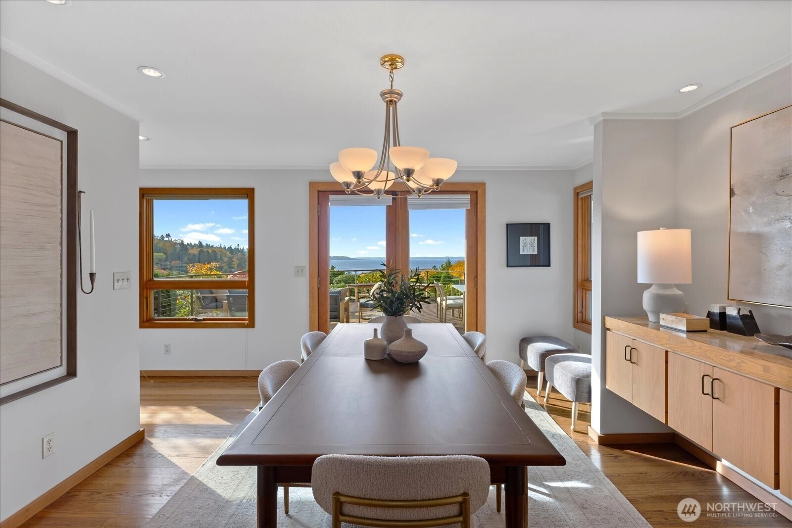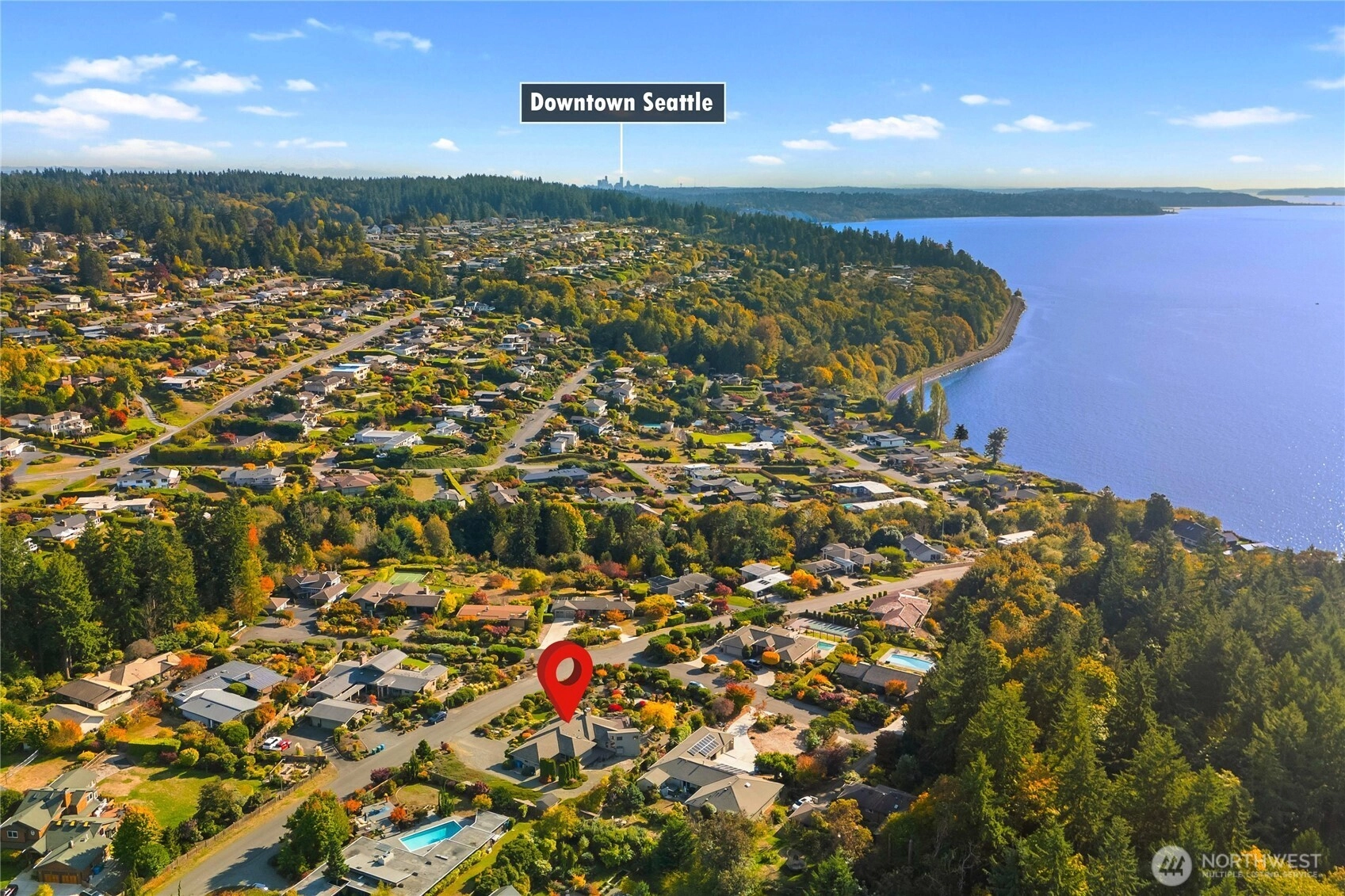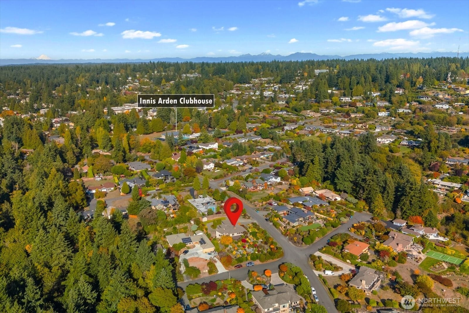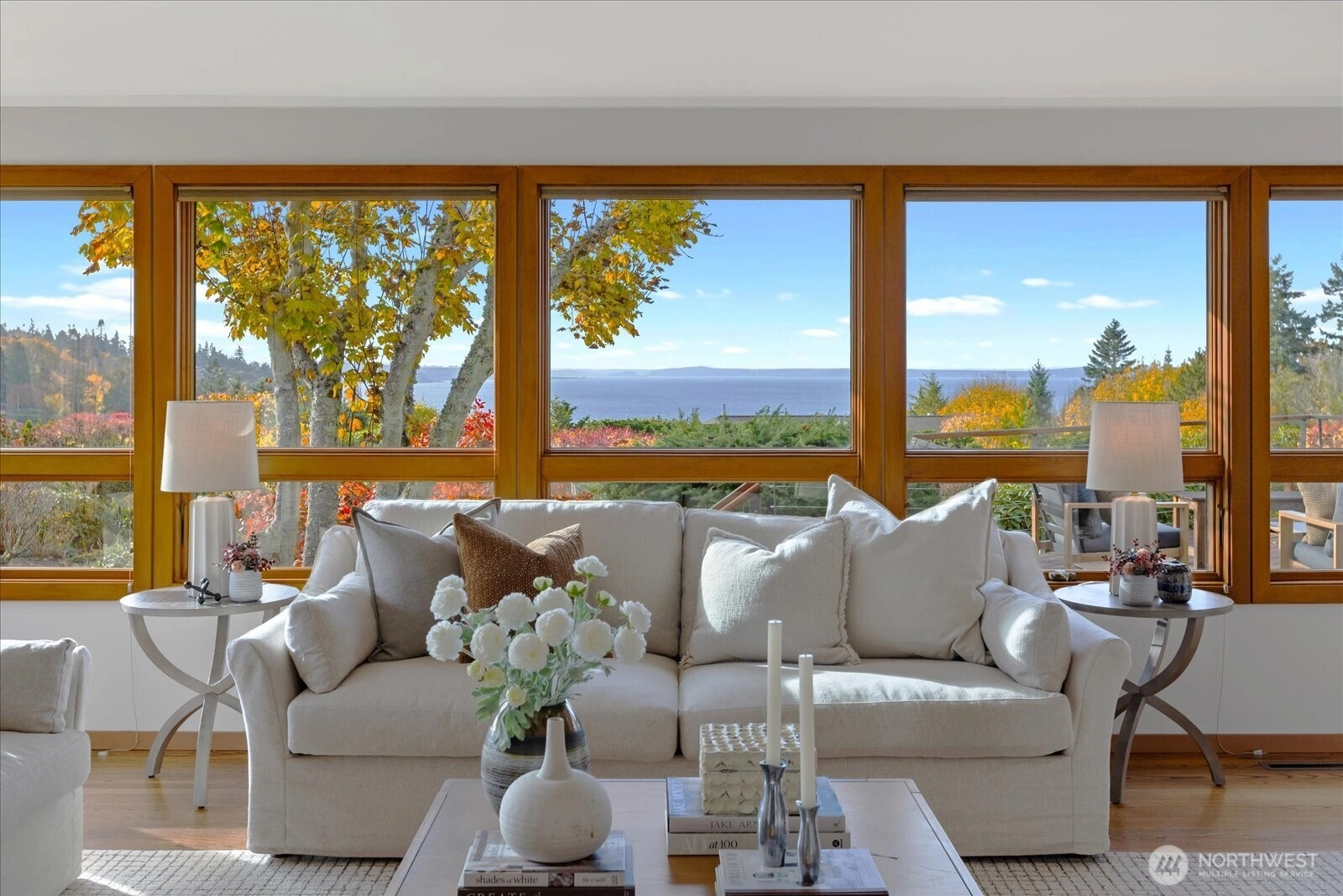 Nestled in the tranquil neighborhood of Innis Arden, this cherished home offers a chance to live the quintessential Pacific NW lifestyle. Walk to the pool, courts & trails or simply curl up in front of the fire & watch storms roll in over the water. Move in ready, this beauty features desirable main-floor living w/ views of the Sound & mtns. The chef’s kitchen & cozy primary suite showcase timeless updates that blend elegance w/ modern comfort. Designed for entertaining, the open layout flows effortlessly from the spacious kitchen to expansive decks on all sides. Floor-to-ceiling windows fill the space w/ light & ample guest parking ensures convenience for gatherings. With room to personalize over time, this home is your ideal next chapter.