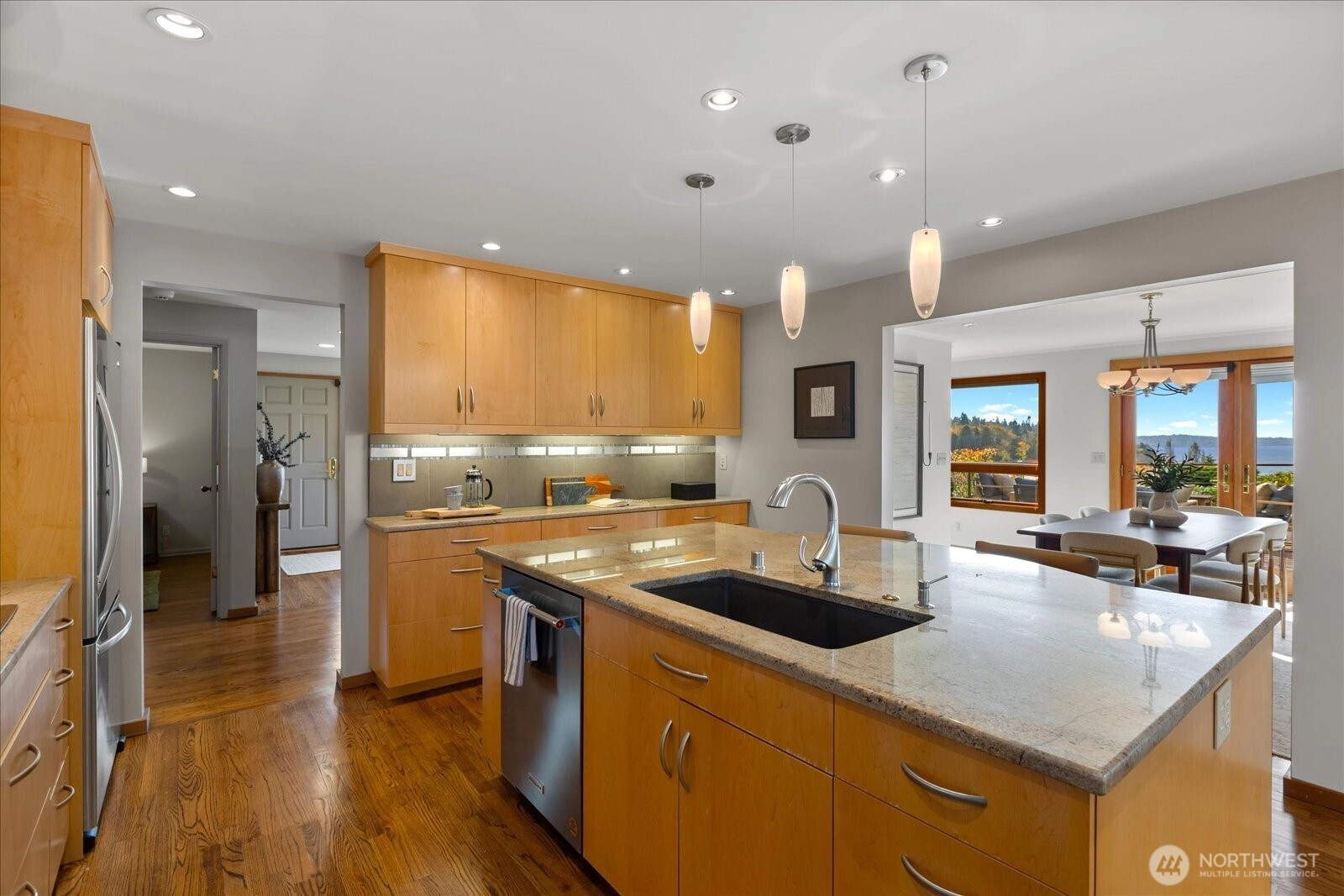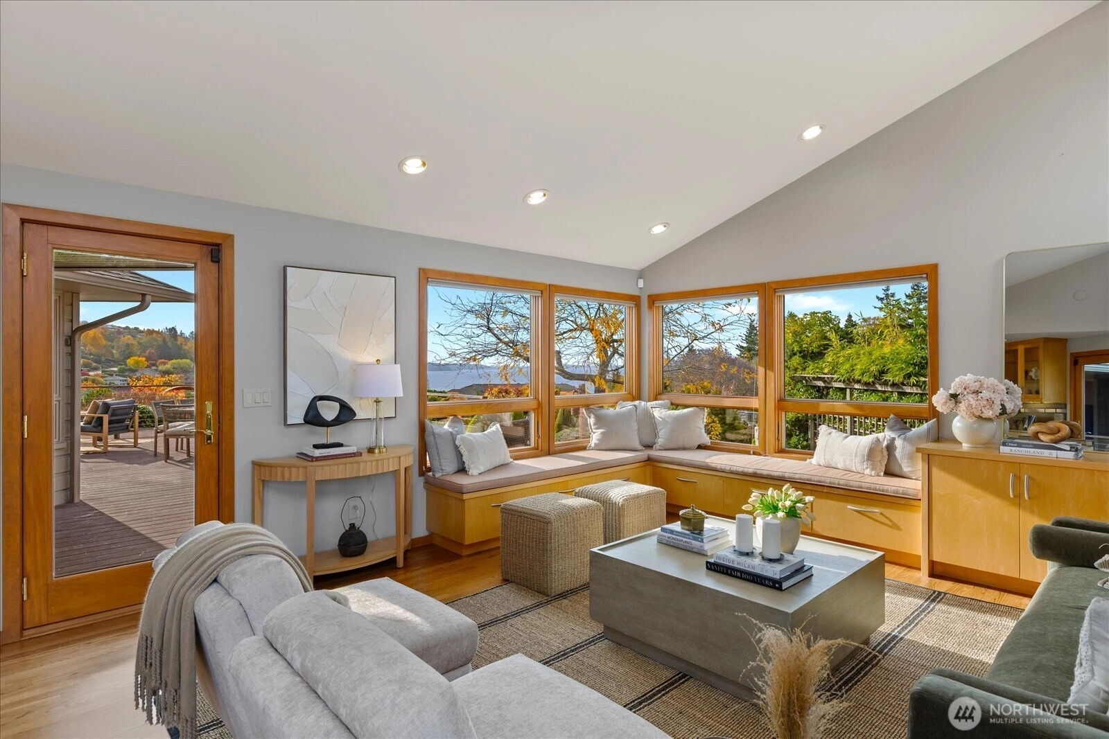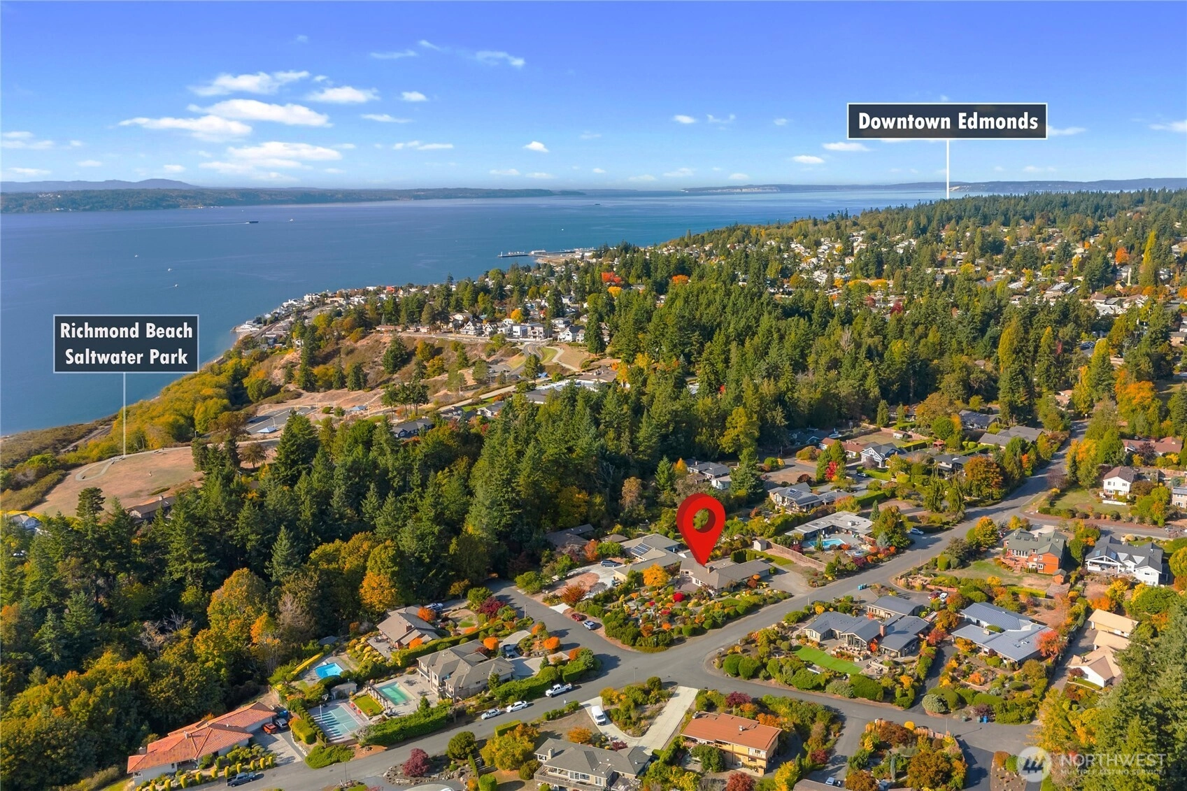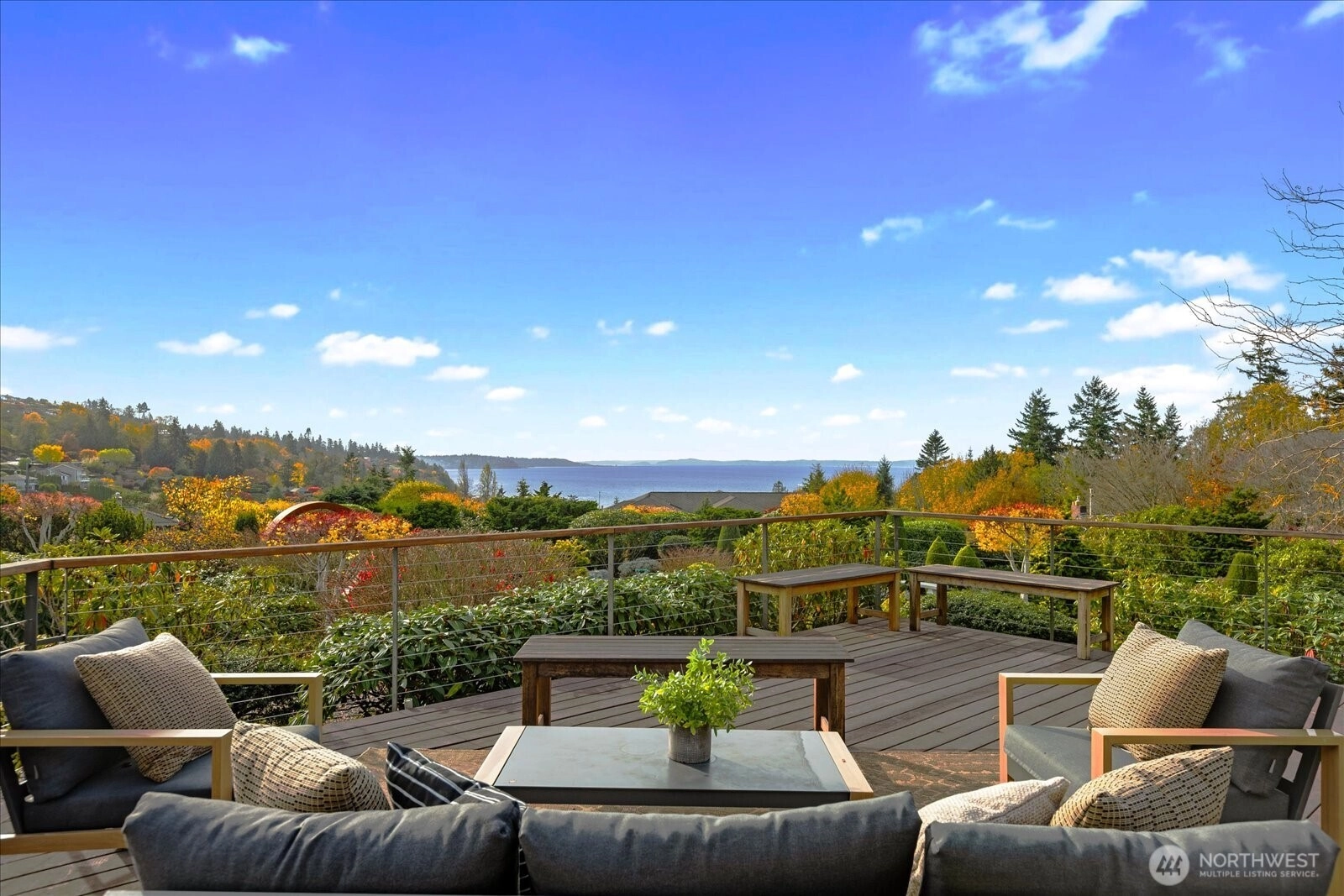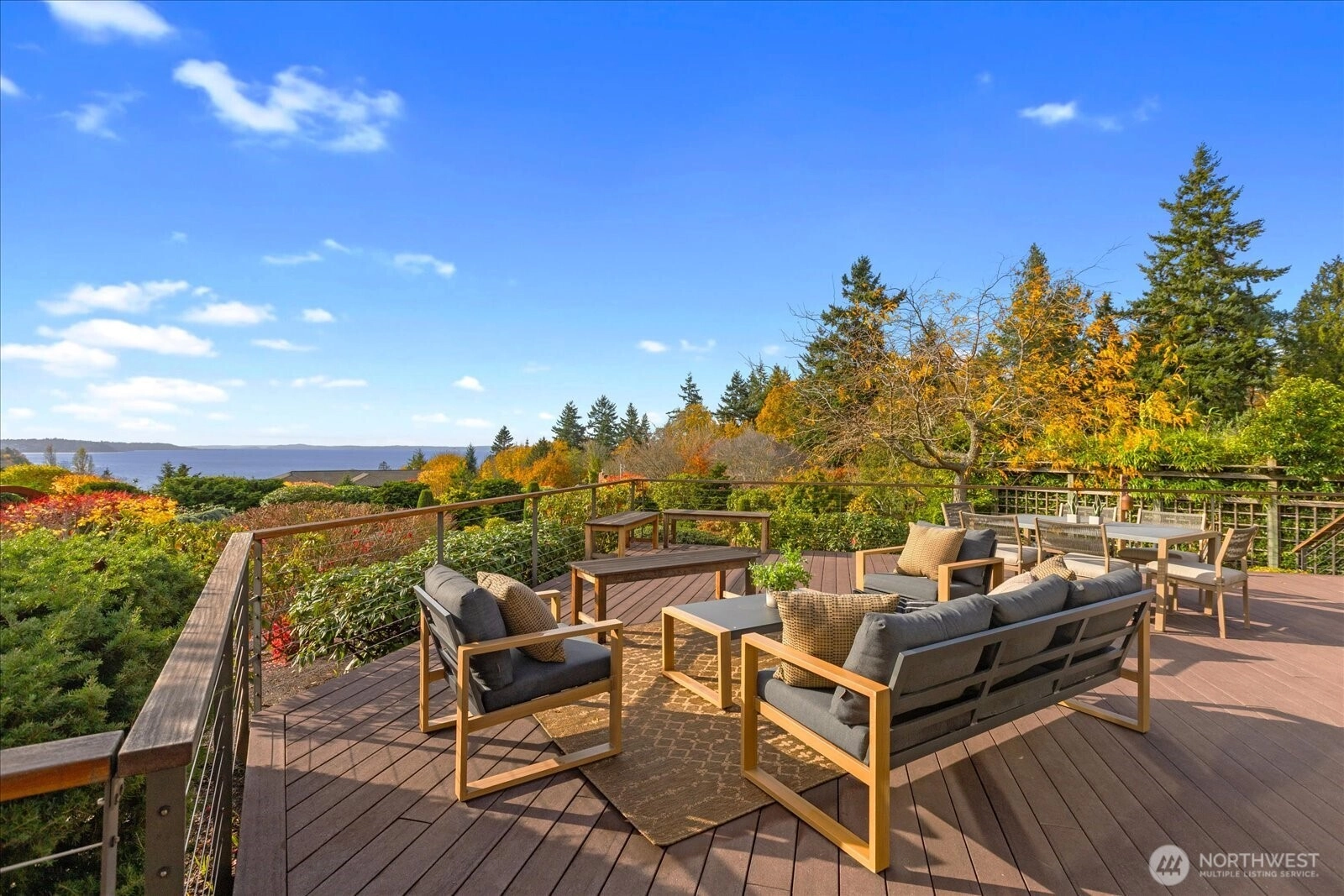 Nestled in the tranquil neighborhood of Innis Arden, this cherished home offers a chance to live the quintessential Pacific NW lifestyle. Walk to the pool, courts & trails or simply curl up in front of the fire & watch storms roll in over the water. Move in ready, this beauty features desirable main-floor living w/ views of the Sound & mtns. The chef’s kitchen & cozy primary suite showcase timeless updates that blend elegance w/ modern comfort. Designed for entertaining, the open layout flows effortlessly from the spacious kitchen to expansive decks on all sides. Floor-to-ceiling windows fill the space w/ light & ample guest parking ensures convenience for gatherings. With room to personalize over time, this home is your ideal next chapter.