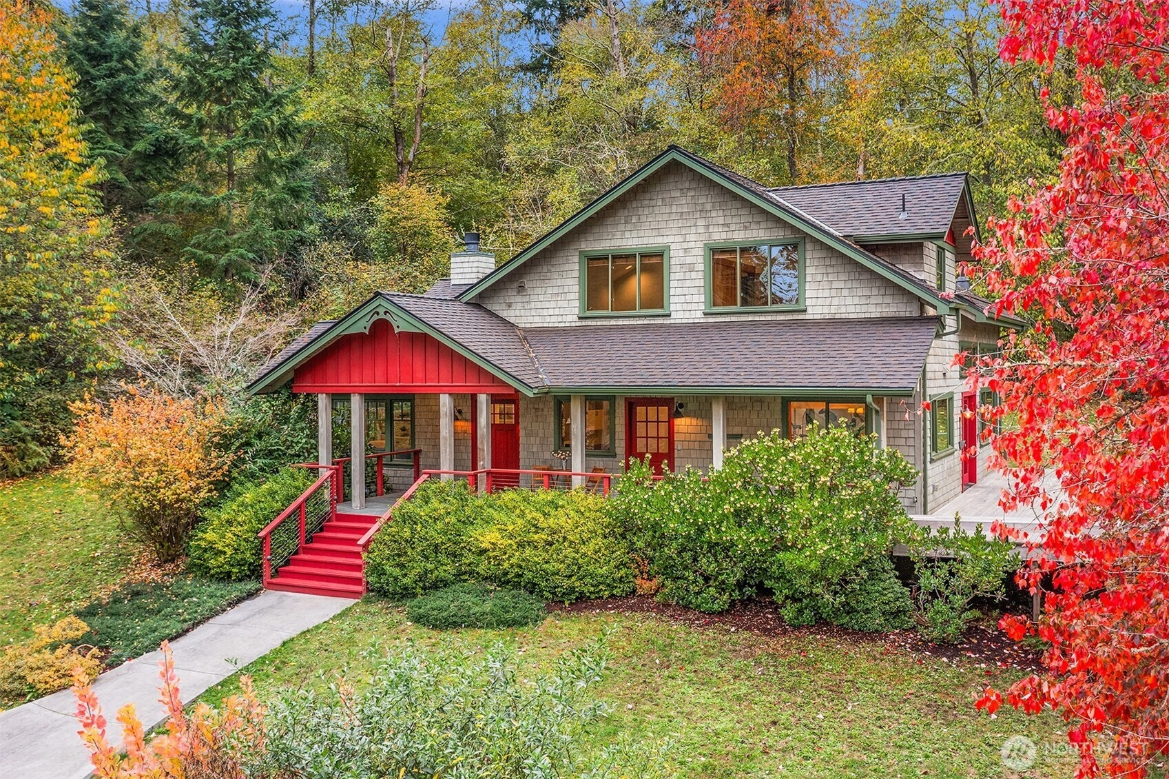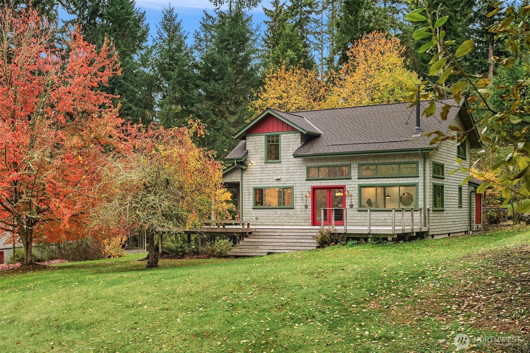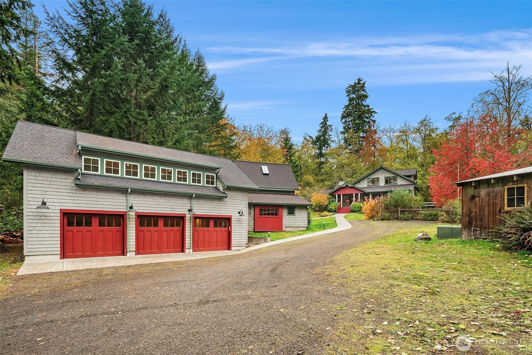Set amid 14+ acres of pristine Northwest forest, this private enclave offers a rare blend of natural beauty and contemporary design. The gracious covered entry invites you into light-filled interiors where elegance meets modern comfort. French doors open to an expansive ironwood deck overlooking a private paradise framed by fruit trees & mature landscaping. The main-level primary extends outdoors to a private patio, hot tub & shower. High-end finishes ensure ease and sophistication, while modern amenities promise efficiency & comfort. The precious woodland cottage & 3 car garage + studio complete this extraordinary offering. Centrally located between downtown, schools, and the beach, delight in quiet abundance and comfort on Vashon Island!
