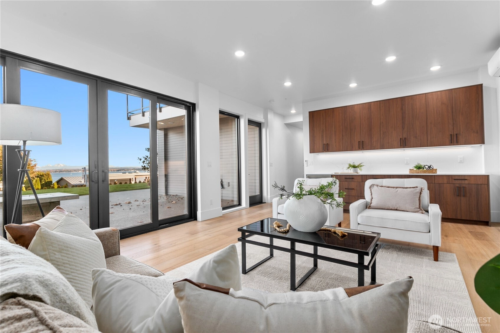 Experience modern coastal luxury in this newly completed 3BR, 5BA home in Point Whitehorn. Perfectly positioned for sweeping views of Birch Bay & the Canadian Mountains, it offers an elevated lifestyle just minutes from a state park and deeded beach access. Designed for refined living, it features a chef's kitchen with commercial grade appliances & a dedicated prep area. White & French oak hardwoods, walnut cabinetry, full height tile & sleek contemporary finishes create timeless appeal. Each BR has its own bath, plus 2 flex spaces-one with a wet bar & sauna. Outdoor living includes a ground level patio with custom concrete fire table & a spacious top floor deck. A rare opportunity to own new luxury in a premier coastal location.