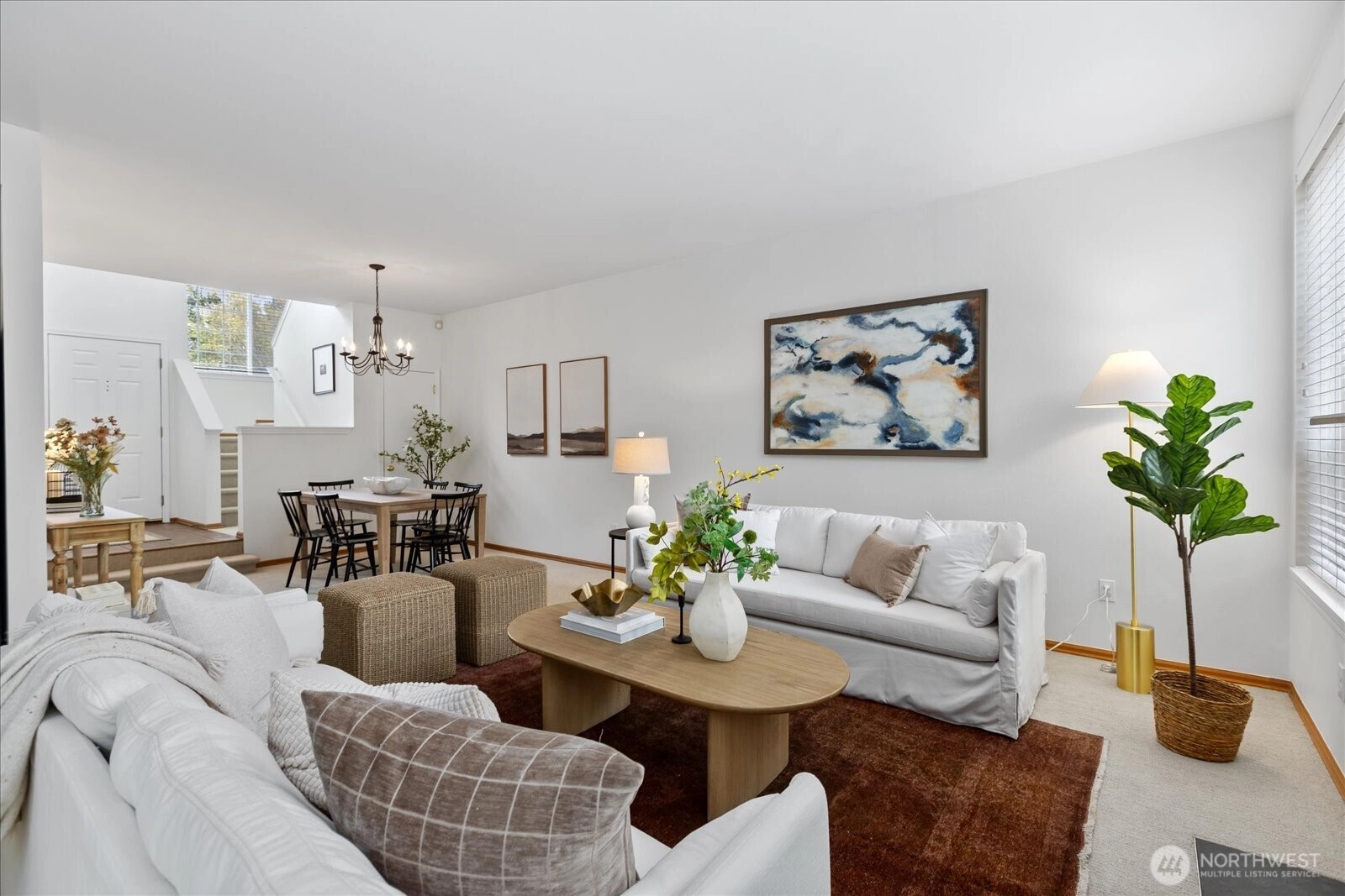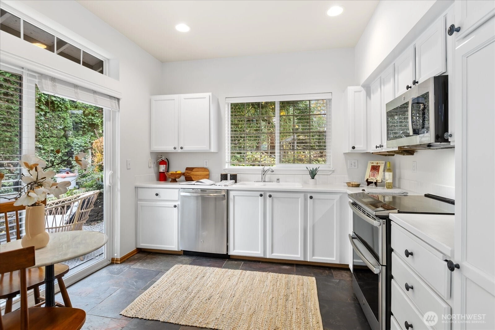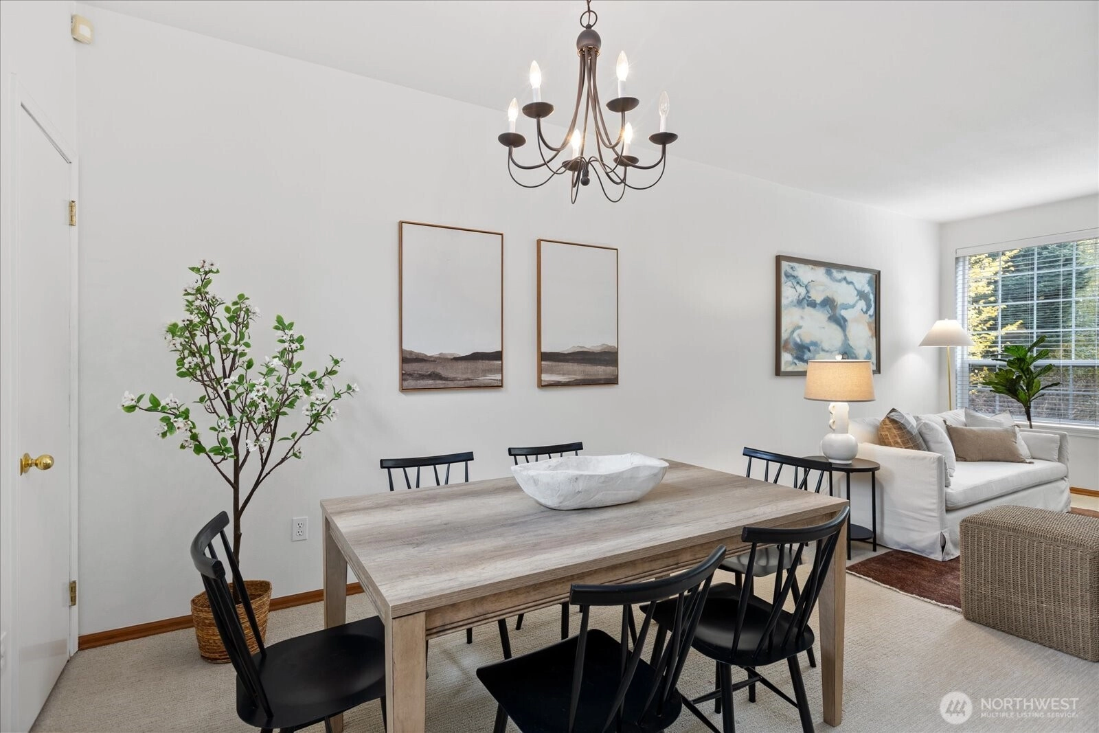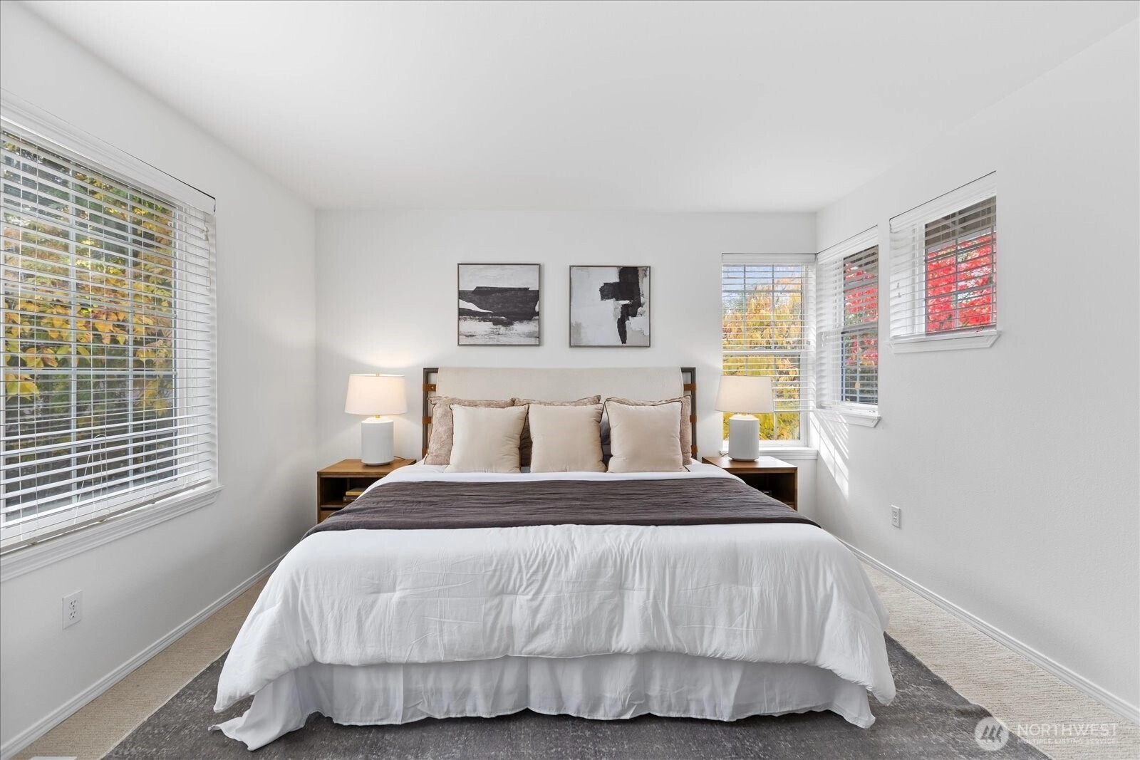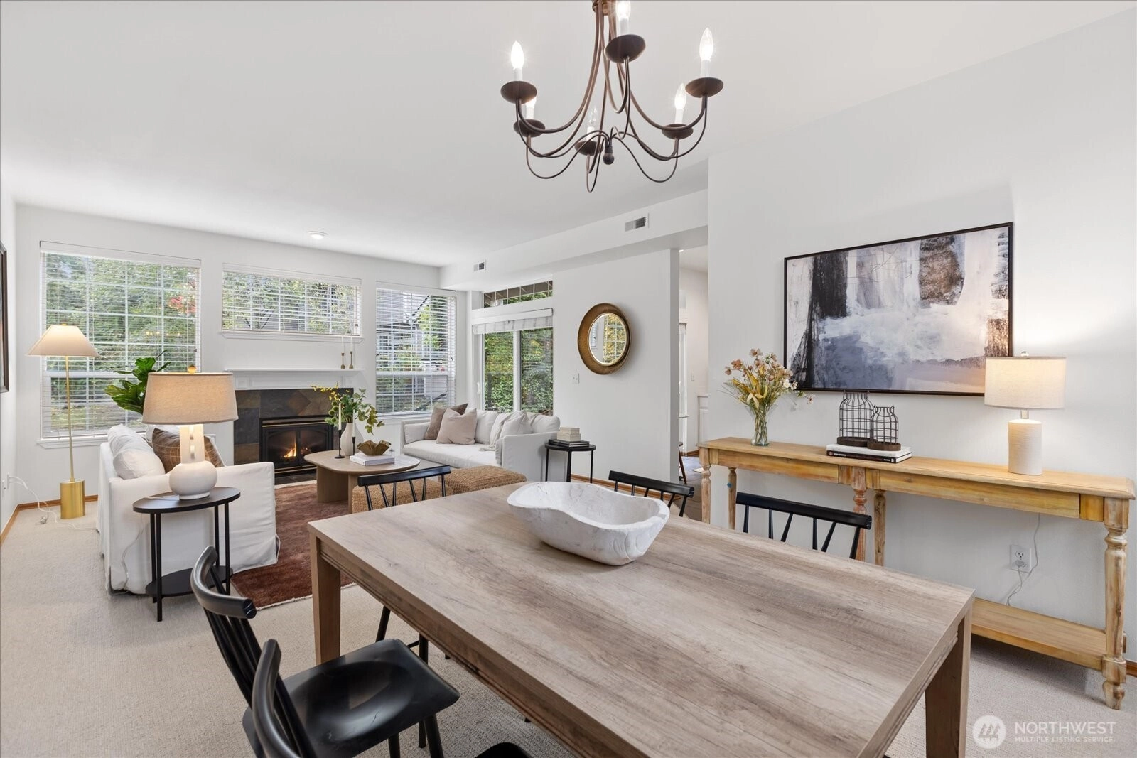 Beautiful, spacious 3-bedroom townhome in convenient North Edmonds location! This private end unit lives like a single-family home and features a main floor bedroom/full bath. Bright 2 story entry with lots of windows. Living room and formal dining with cozy gas fireplace is the perfect space to relax or entertain. Refreshed kitchen with updated appliance and eating nook w/ slider, looks out to the tranquil duck pond. Laundry and garage access complete the main. Upper level with 2 bedrooms BOTH with en-suite bathrooms. Attached oversized 1 car garage, driveway space and a reserved parking space. Mukilteo schools. All new paint and carpet. Easy access to Paine Field, Alderwood, freeways and shopping!