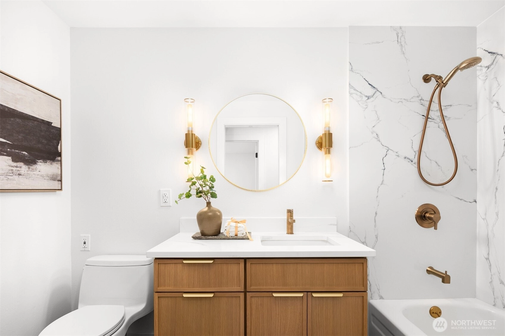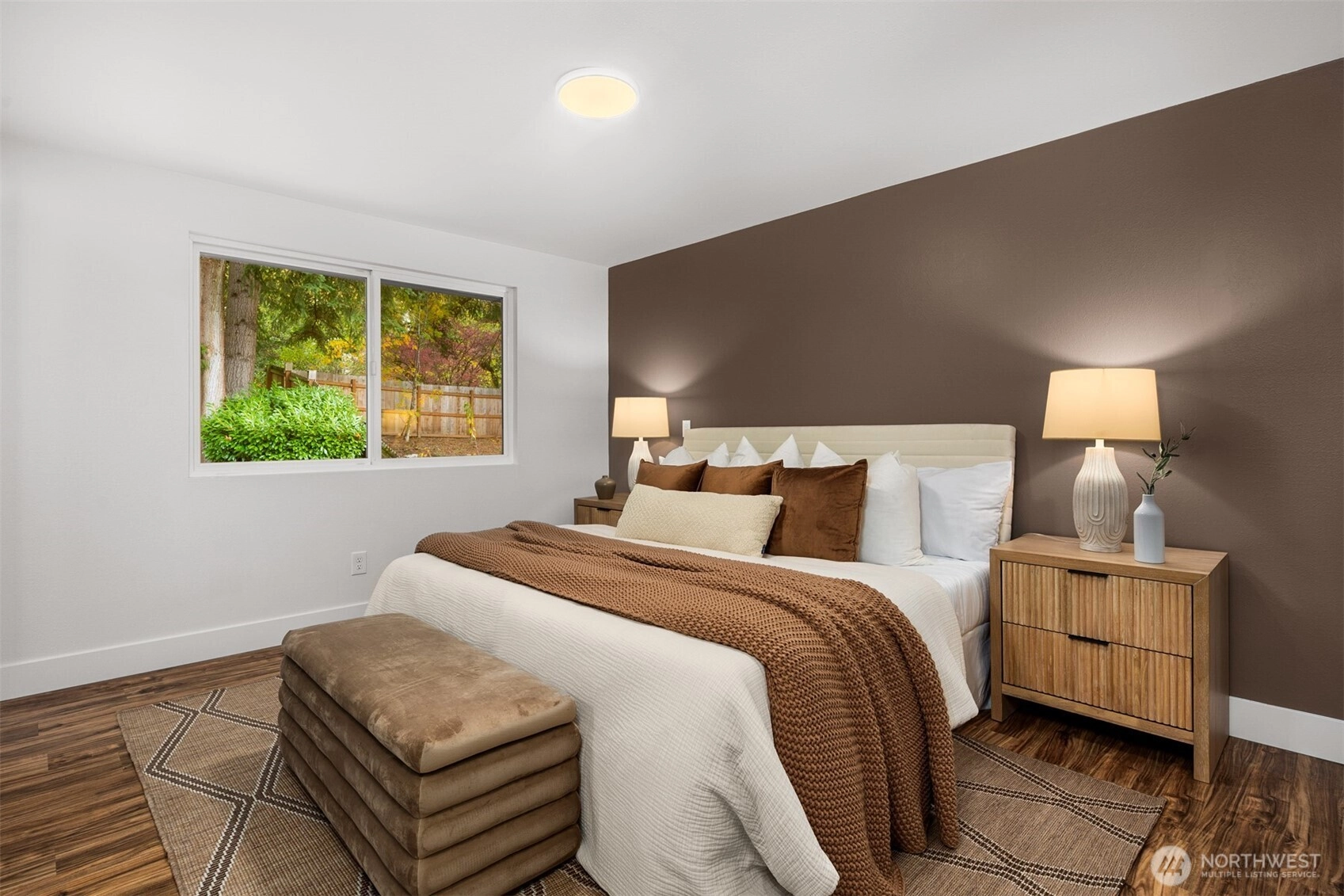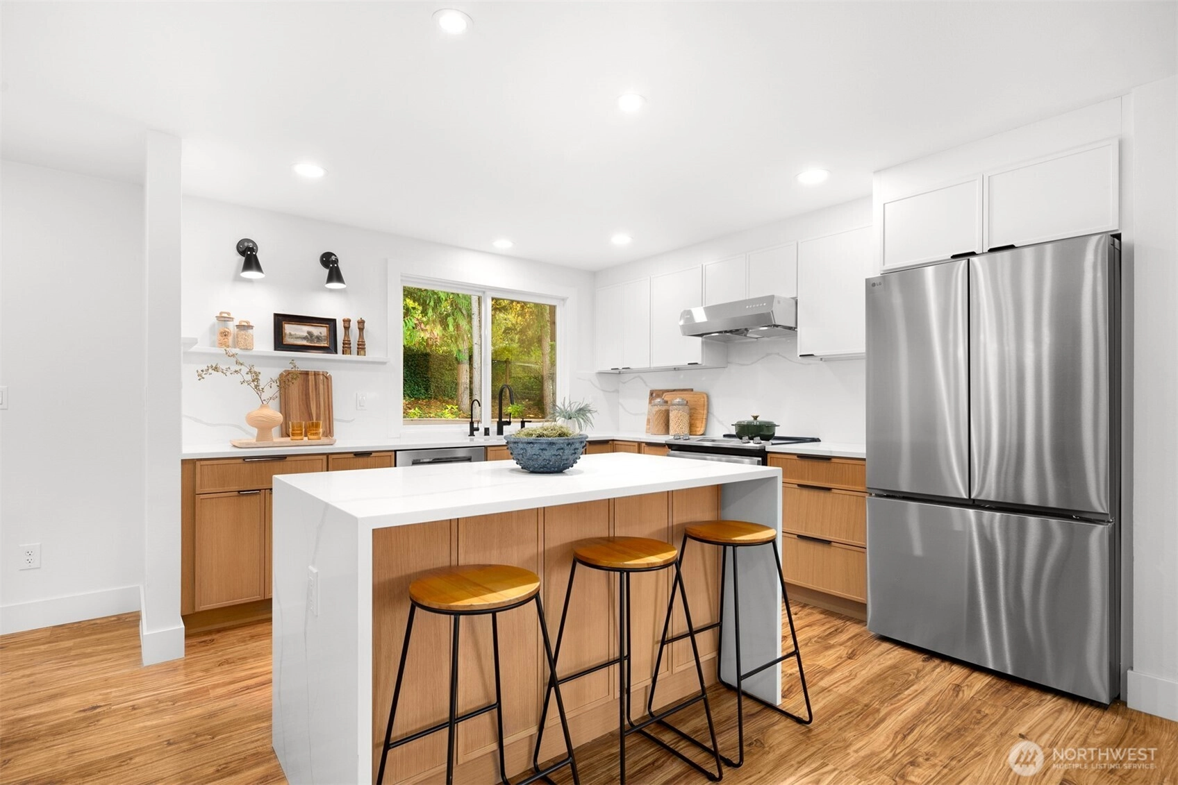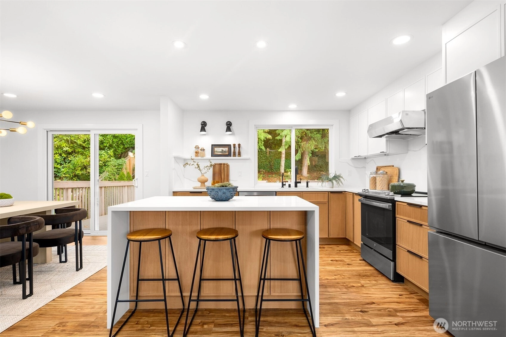 Beautifully renovated home on a quiet Education Hill cul-de-sac blending style, comfort, and functionality. 5 bedrooms in total 4 up, 1 down. The open upper level features a gas fireplace, dining area, and a stunning modern kitchen with sleek finishes and great natural light. Upstairs offers four bedrooms; the lower level adds a spacious family room with wood fireplace and a versatile 5th bedroom or bonus room. Updates include Milgard windows, fresh paint, A/C, EV outlet (30A), new driveway with RV parking, and a 600+ sq. ft. deck plumbed for gas BBQ. Fully fenced yard & w/ a generator hookup. Minutes to downtown Redmond, parks, light rail, and HWY 520 in top-rated Lake Washington schools.