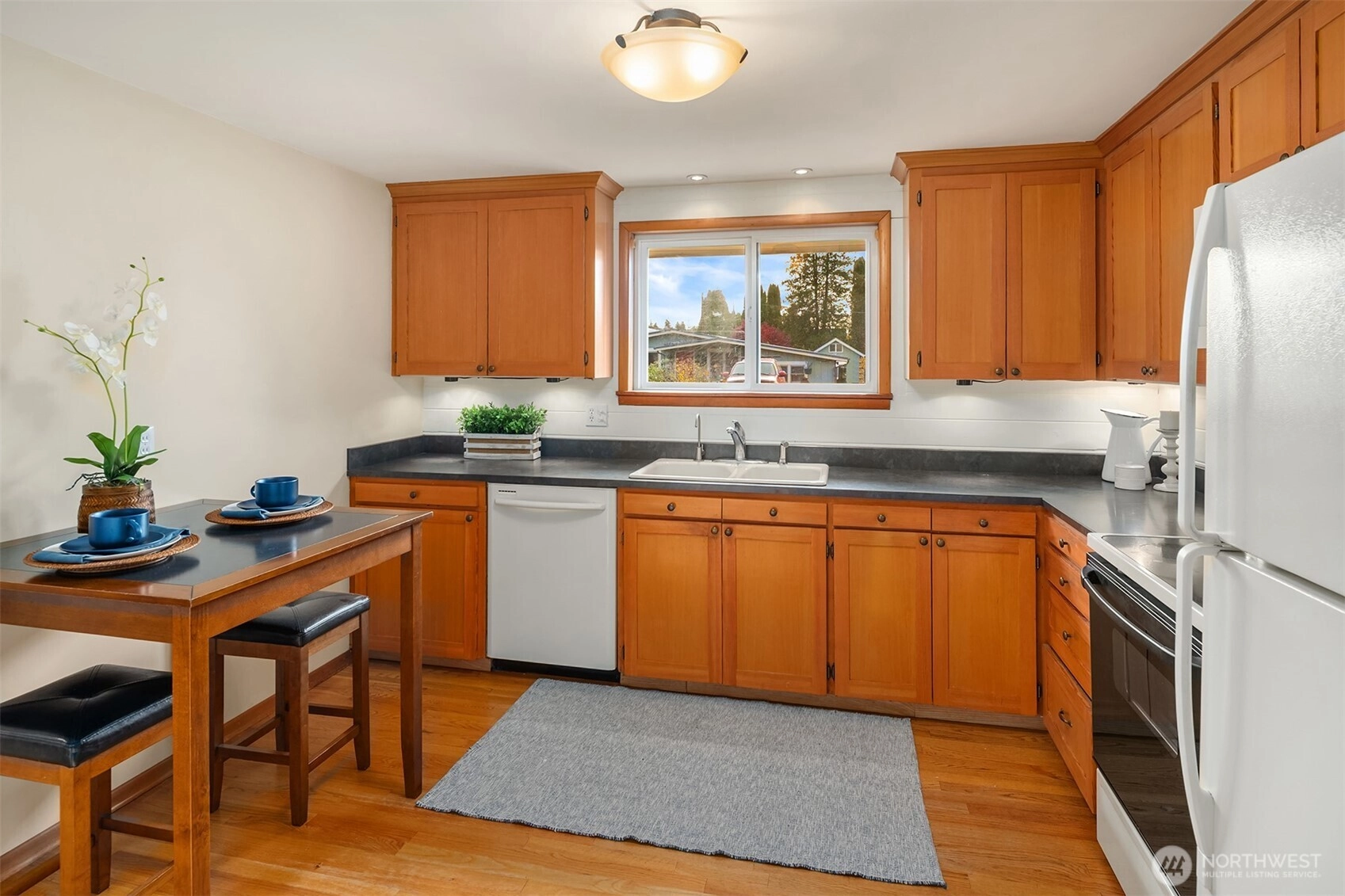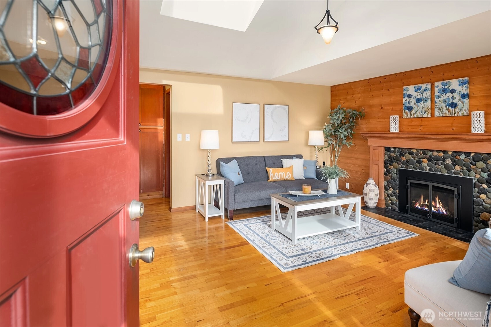 Meet your next home! Super cute and cozy Rambler, sited on a private corner lot, with prime downtown location offering an easy access to Carnation restaurants, businesses, parks & groceries. (Sno-Valley Senior Center around the corner!) Large living room featuring hardwood floors, a beautiful river-rock gas fireplace with custom mantle, cedar accent wall and large skylight. Country eat-in kitchen with craftsman style cabinets. Stylish craftsman wood doors throughout. Gorgeous level yard with patio and SO MUCH parking! Attached 1 car garage (included in square footage as storage and laundry space), plus detached 2 car garage/shop with free-standing stove. RV parking, too. It's a gem! Pre-Inspected and move-in ready. Don't miss it!