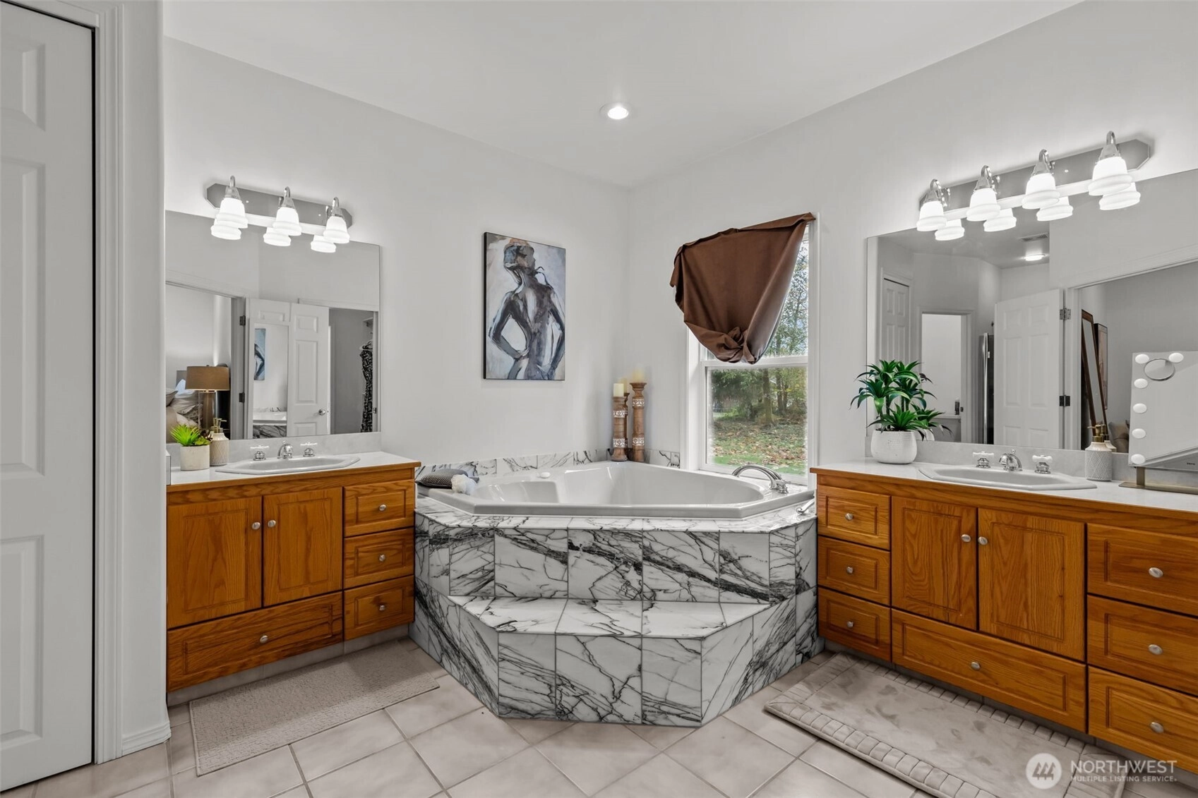 Welcome to 4.5 wooded, country acres to find your rambler home and dream garages for every car or hobby you wish! This spacious, custom-built rambler awaits your touch to live out quiet, comfortable days alongside hosting and gathering to your heart's content. Enjoy a bright solarium with tall windows and skylights in the center of the home, an open concept kitchen with countertops and storage for days flowing to the living room warmed by the fireplace. The primary bedroom leads with french doors to the 5-piece bathroom with giant jetted tub. This 3bd home is suited with a 4bd septic, generator hookups, and holds an 8-car garage attached to home PLUS 1000sqft detached shop with 2 bay doors for boat, RV or perhaps DADU!