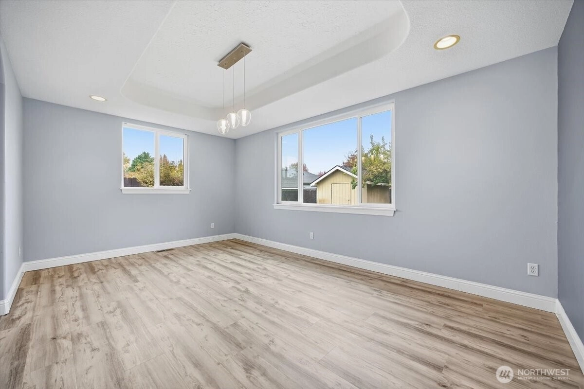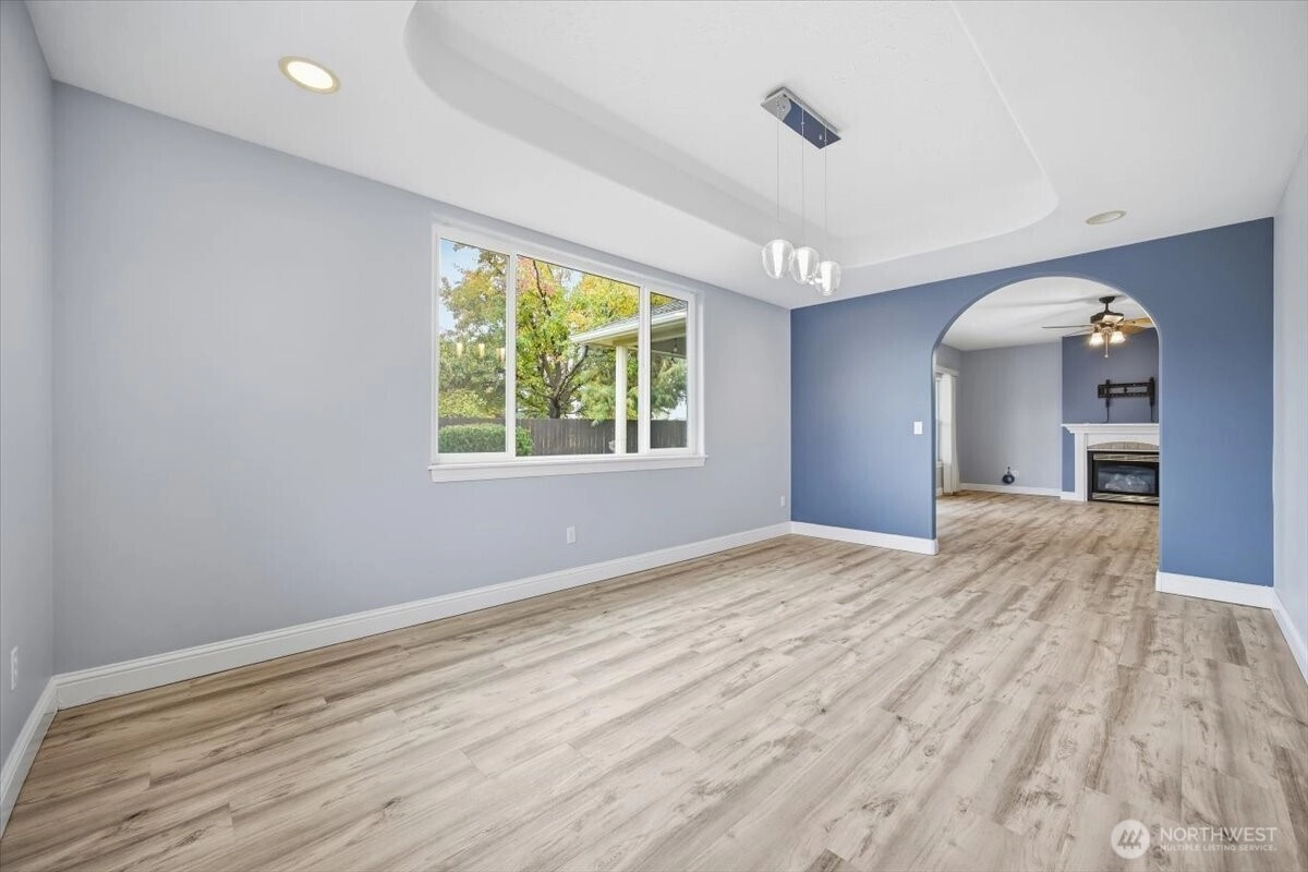 This beautiful 2,376 sq ft home features 3 bedrooms, 2.25 bathrooms, and brand-new LVP flooring throughout. The spacious living and dining areas feature elegant coffered ceilings and an abundance of natural light, creating a warm and inviting atmosphere. Step outside to a large covered patio with stamped concrete, perfect for relaxing or entertaining. The three-car garage offers ample storage and parking. With its thoughtful design, quality finishes, and timeless style, this home delivers comfort and functionality.