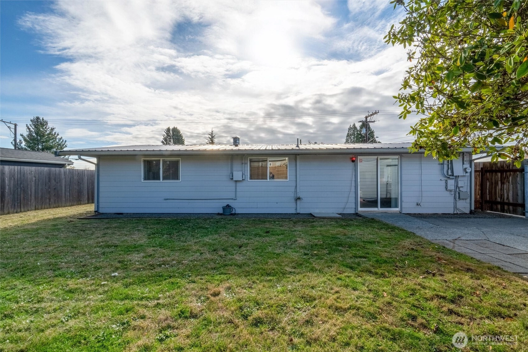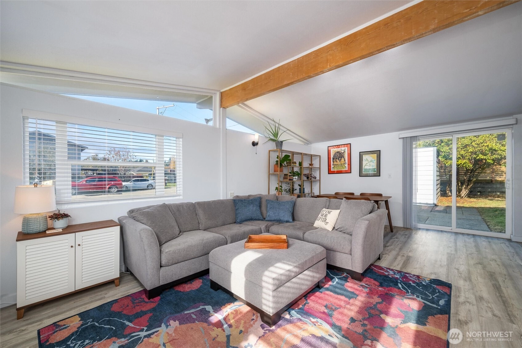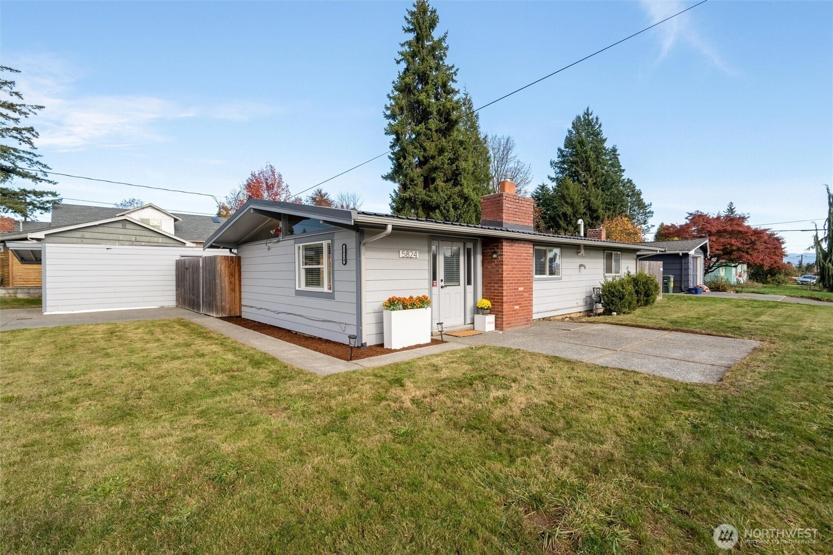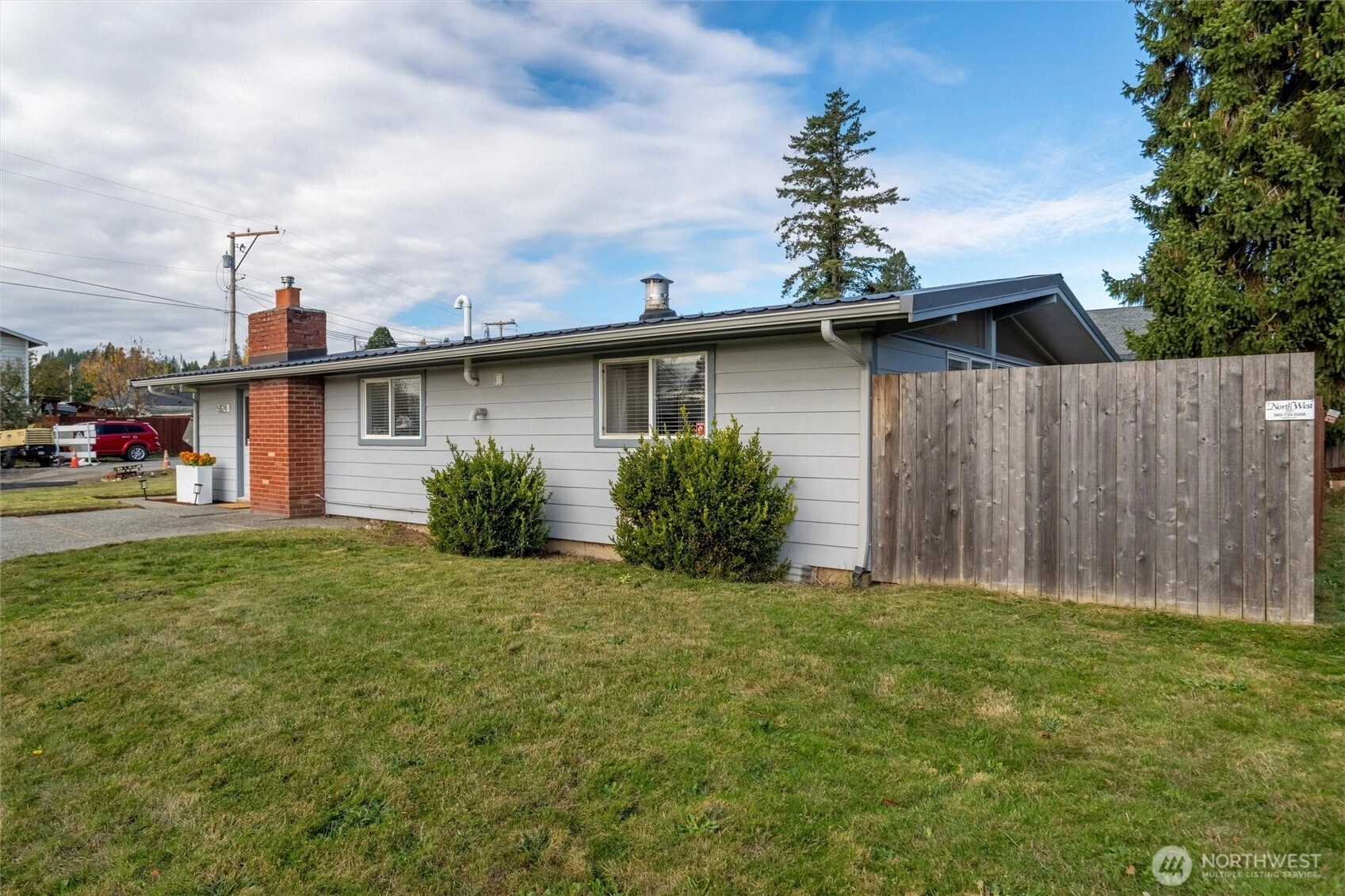 Don’t miss this sunny mid-century modern gem in the heart of Seamount Neighborhood! 3 bedrooms w/ vaulted ceilings & ample sun exposure. Updated full bath & large updated kitchen w/ tile backsplash, quartz countertops & stainless steel appliances. Open-concept greatroom w/ vaulted ceiling, exposed beam, clerestory windows & brick fireplace w/ modern gas insert. Large corner lot features oversized driveway, fully fenced private backyard, extensive hardscaping & mature landscaping w/ rhododendron tree & decades-old majestic evergreen. Shed w/ power has room for workshop, hobbies & storage. Metal roof, new sewer line, tankless H20 heater & LVP floors throughout. Two blocks to FHS & quick access to I-5 & downtown Ferndale. Book a tour today!