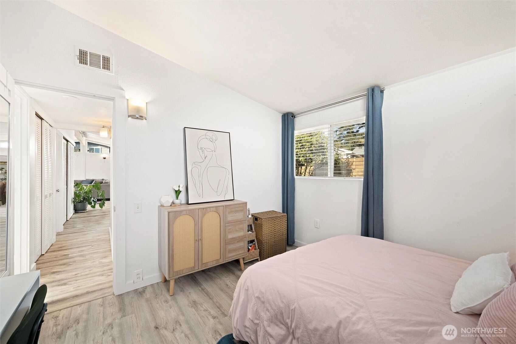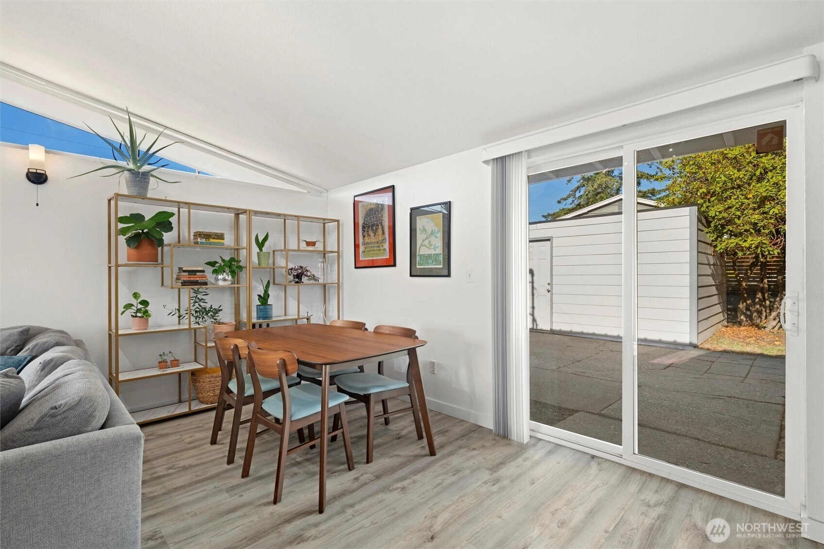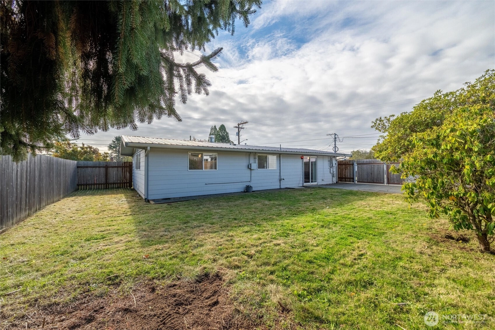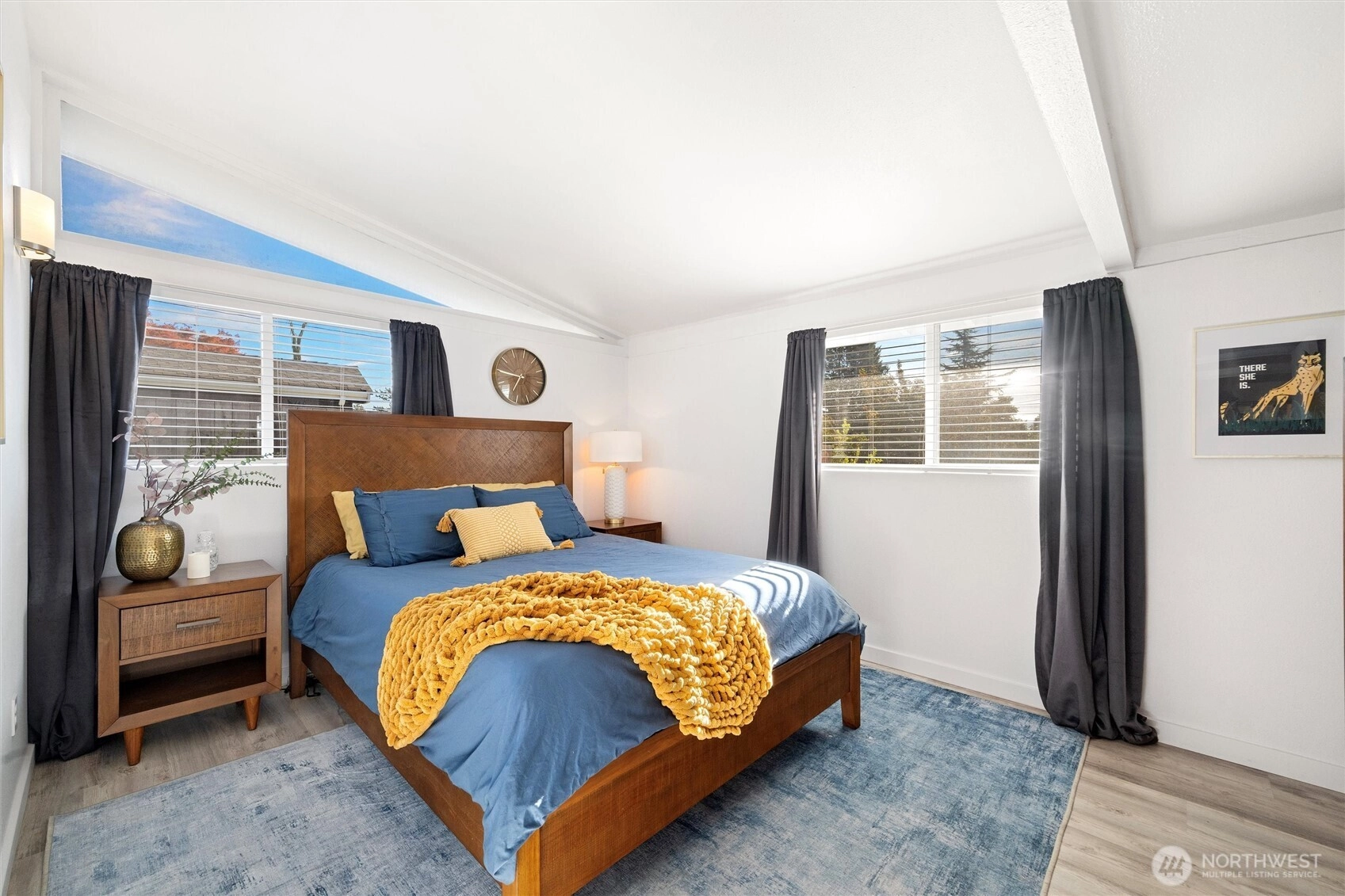Don’t miss this sunny mid-century modern gem in the heart of Seamount Neighborhood! 3 bedrooms w/ vaulted ceilings & ample sun exposure. Updated full bath & large updated kitchen w/ tile backsplash, quartz countertops & stainless steel appliances. Open-concept greatroom w/ vaulted ceiling, exposed beam, clerestory windows & brick fireplace w/ modern gas insert. Large corner lot features oversized driveway, fully fenced private backyard, extensive hardscaping & mature landscaping w/ rhododendron tree & decades-old majestic evergreen. Shed w/ power has room for workshop, hobbies & storage. Metal roof, new sewer line, tankless H20 heater & LVP floors throughout. Two blocks to FHS & quick access to I-5 & downtown Ferndale. Book a tour today!