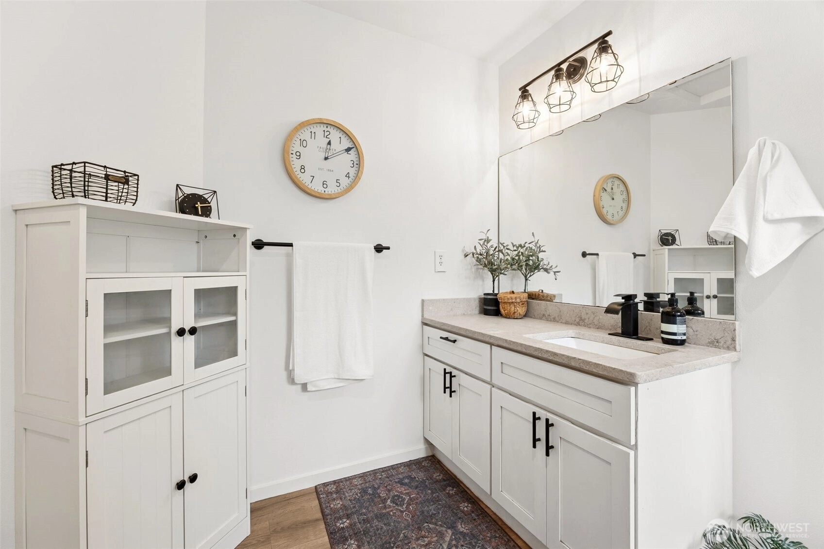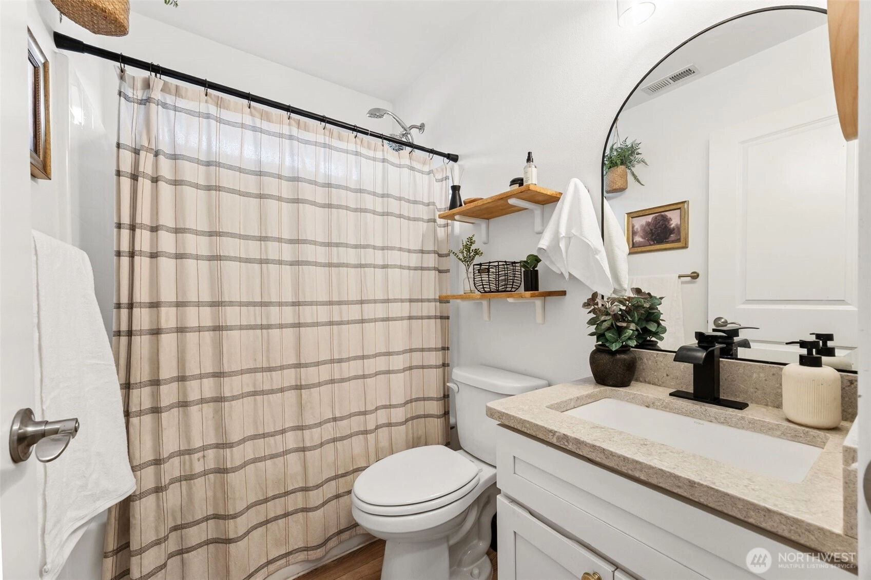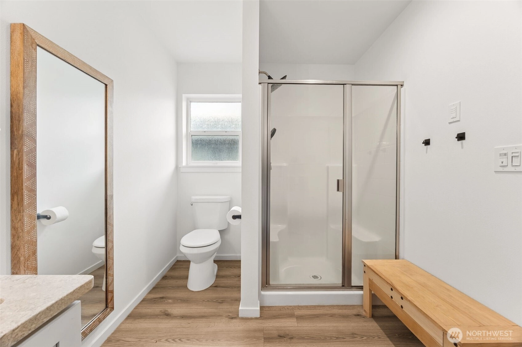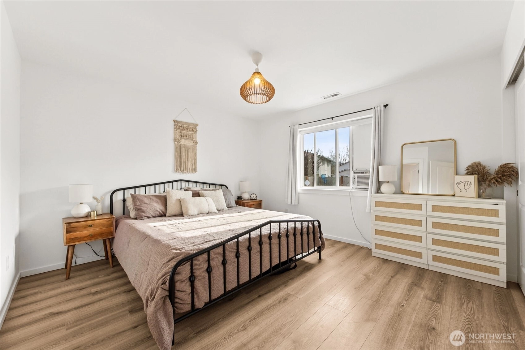 Welcome to this beautifully maintained 3 bedroom, 2 bathroom rambler, located within walking distance of downtown Buckley. This home blends cozy cottage charm with modern finishes. Enjoy an open-concept living space with vaulted ceilings, fresh paint, and updated fixtures and lighting throughout. A stone-detailed fireplace adds warmth and character for the colder months. Outside, the fully fenced backyard offers space for a garden, trampoline, or pool play area. Relax on the covered patio and extended deck adorned with twinkle lights. This inviting home offers small-town charm, modern style, and easy access to everything you need.